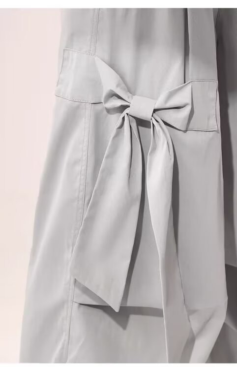 【高腰长裤!精致又吸睛,甜酷拉满!】设计感蝴蝶结灰色工装休闲裤女 2025秋季新款 松紧高腰 宽松阔腿裤女-QB