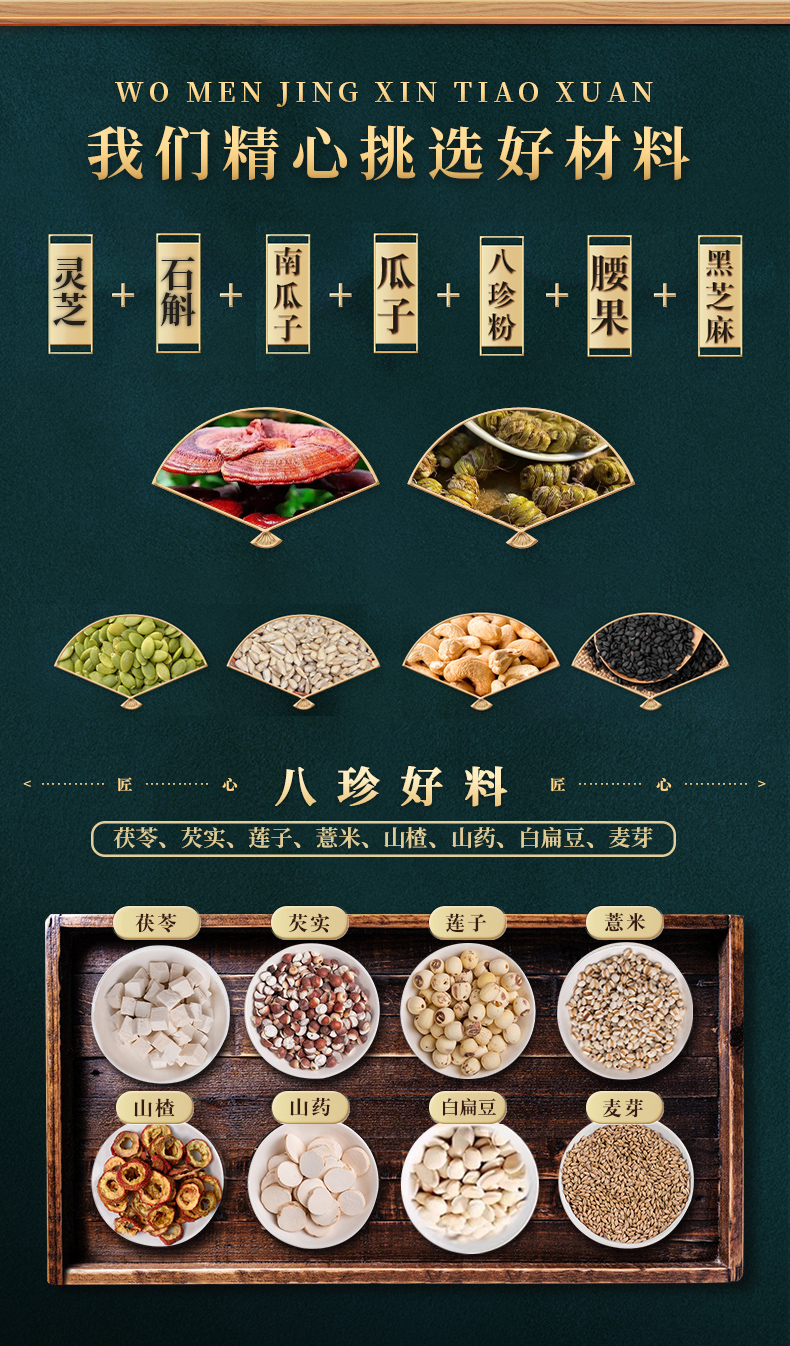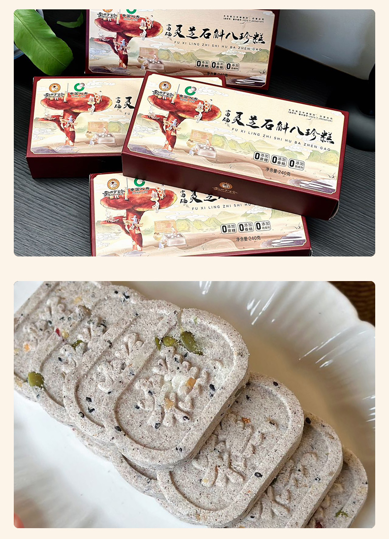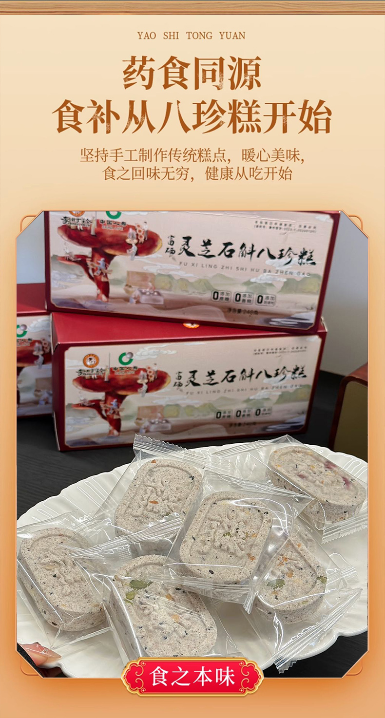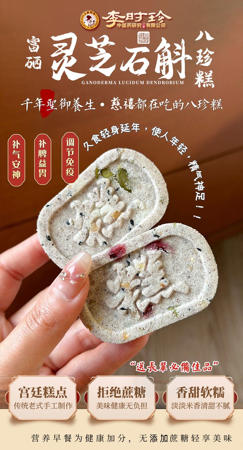 【买2送1,买3送2】李时珍・富硒灵芝石斛八珍糕 8大药食同源食材+3大黄金养生组合+6种美味坚果 无添加 小孩也爱吃 240g/盒