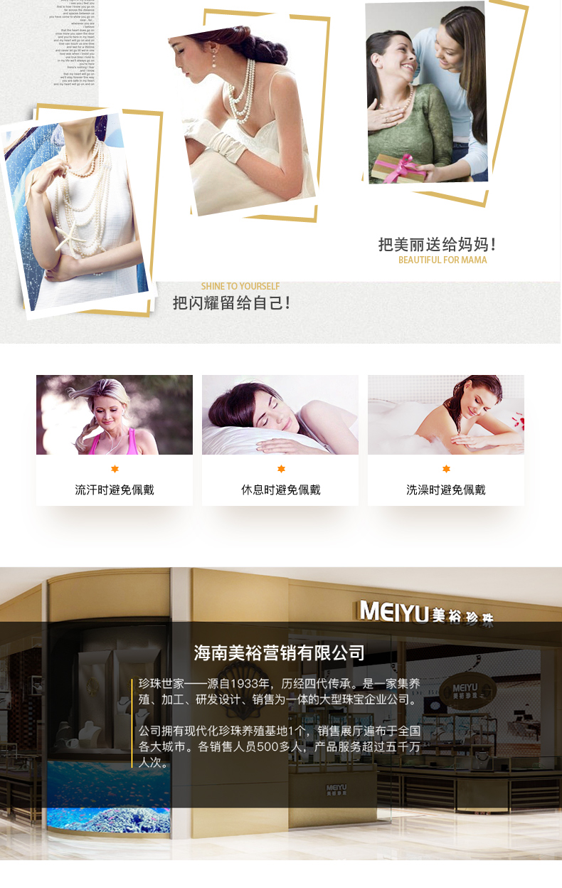 - 珍珠世家,代代相传。美裕珍珠,1933年起源于印尼,成长于海南岛。依托海南资源优势和自身专业优势,以经营南珠、南洋珠为主,专注于珍珠文化的挖掘和传播,把珍珠代表的爱意,永不间断地传承下去。