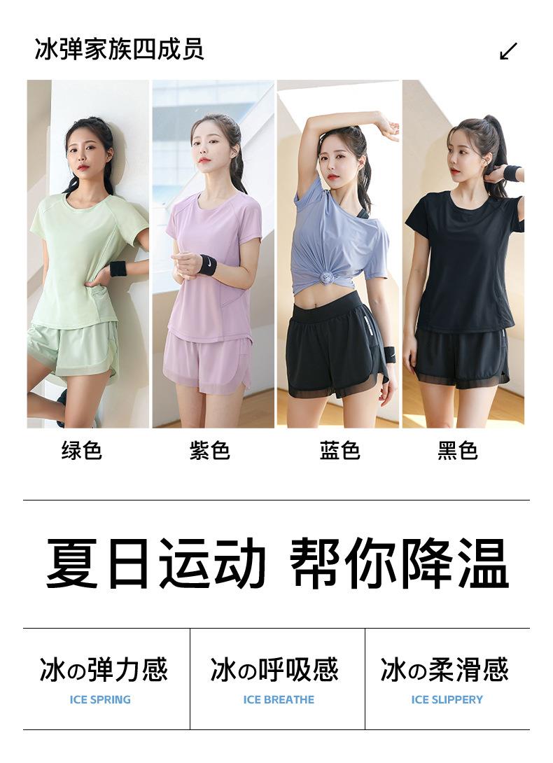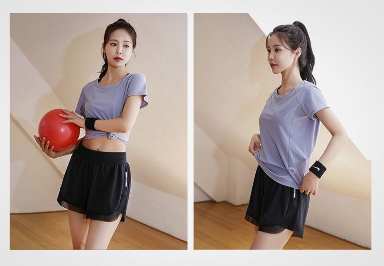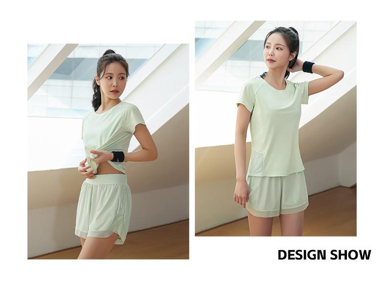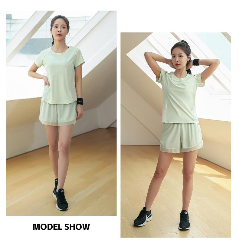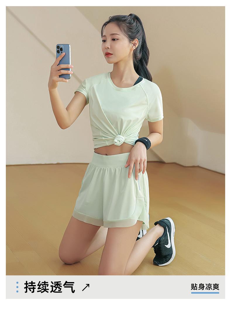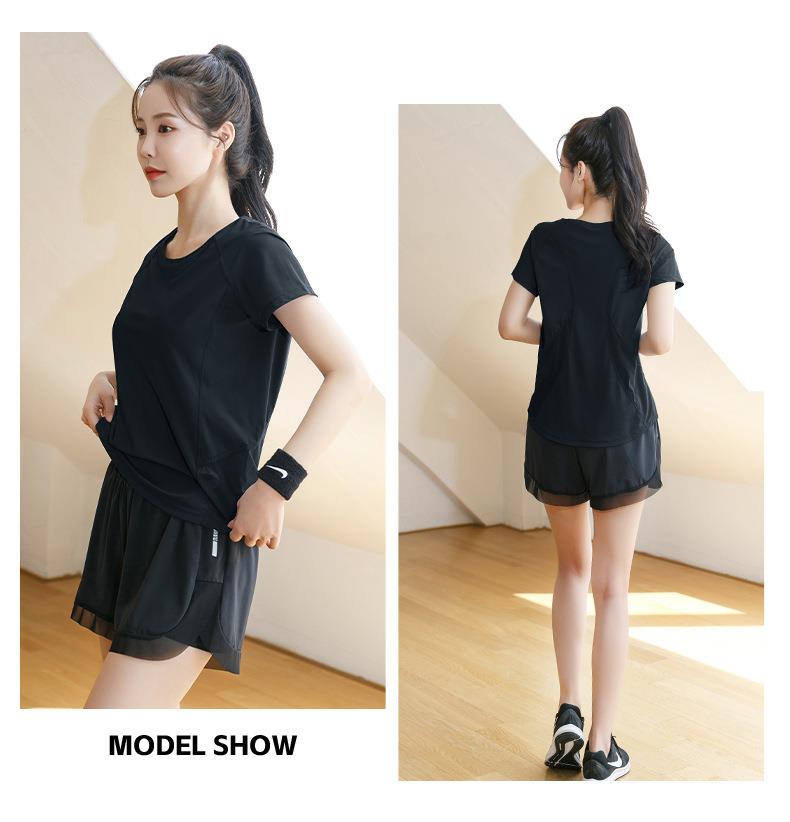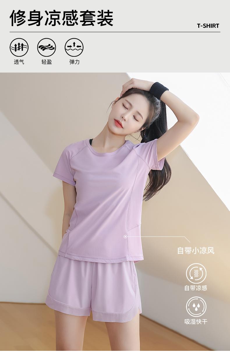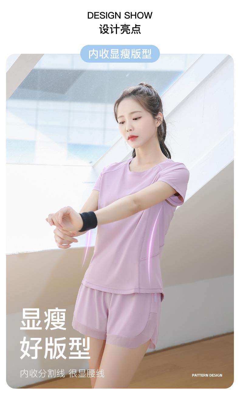 2023健身套装女宽松透气瑜伽跑步健身运动跳操短袖短裤女舒适套装