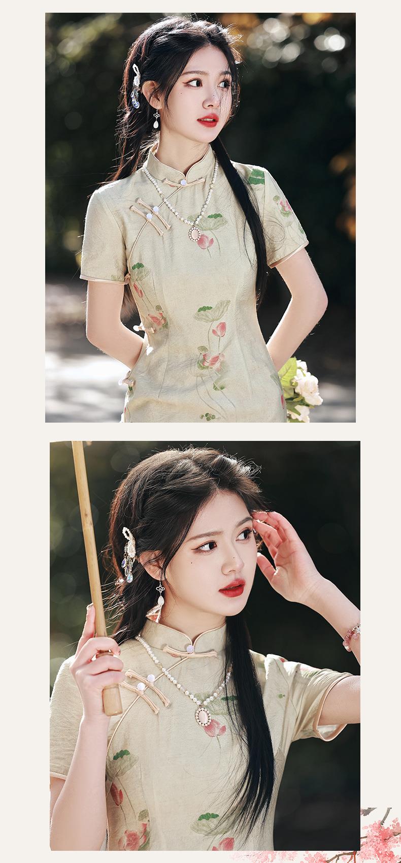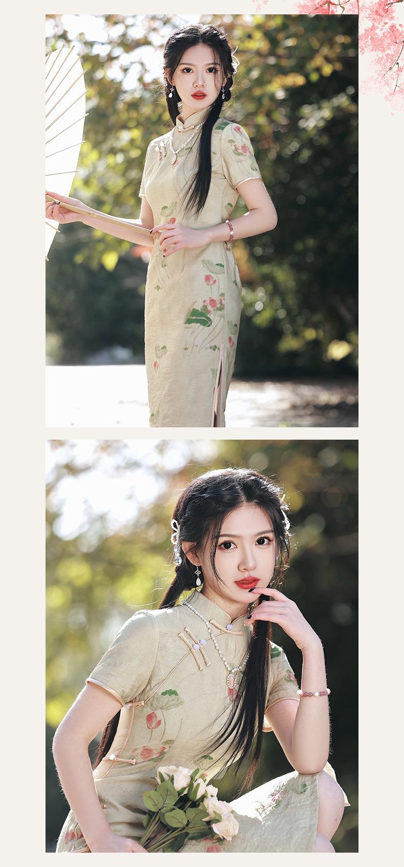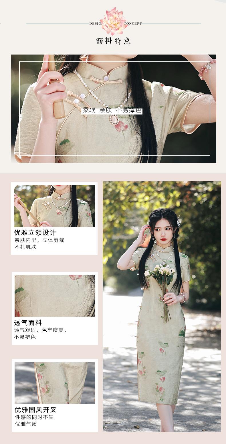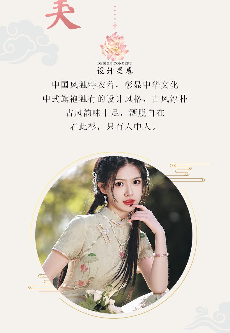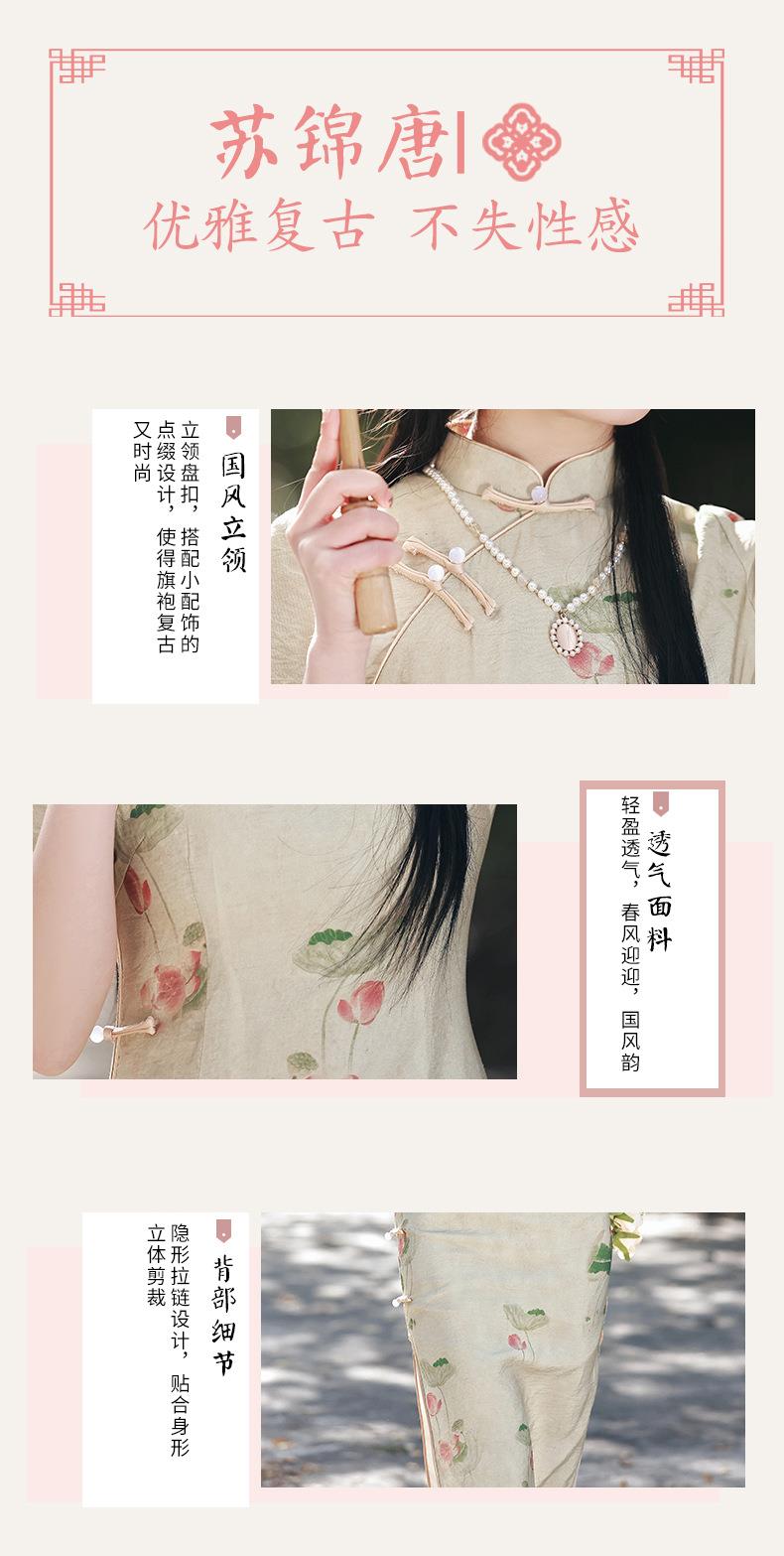 2023春夏新款仿双层苎麻中长款旗袍连衣裙 少女改良旗袍年轻款