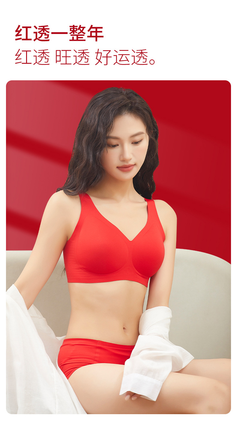 【一红到底!整年都顺】本命年红色内衣内裤套装,结婚喜庆无痕文胸薄款小胸聚拢收副乳,好运齐聚 一套满足所需,红透旺透好运透