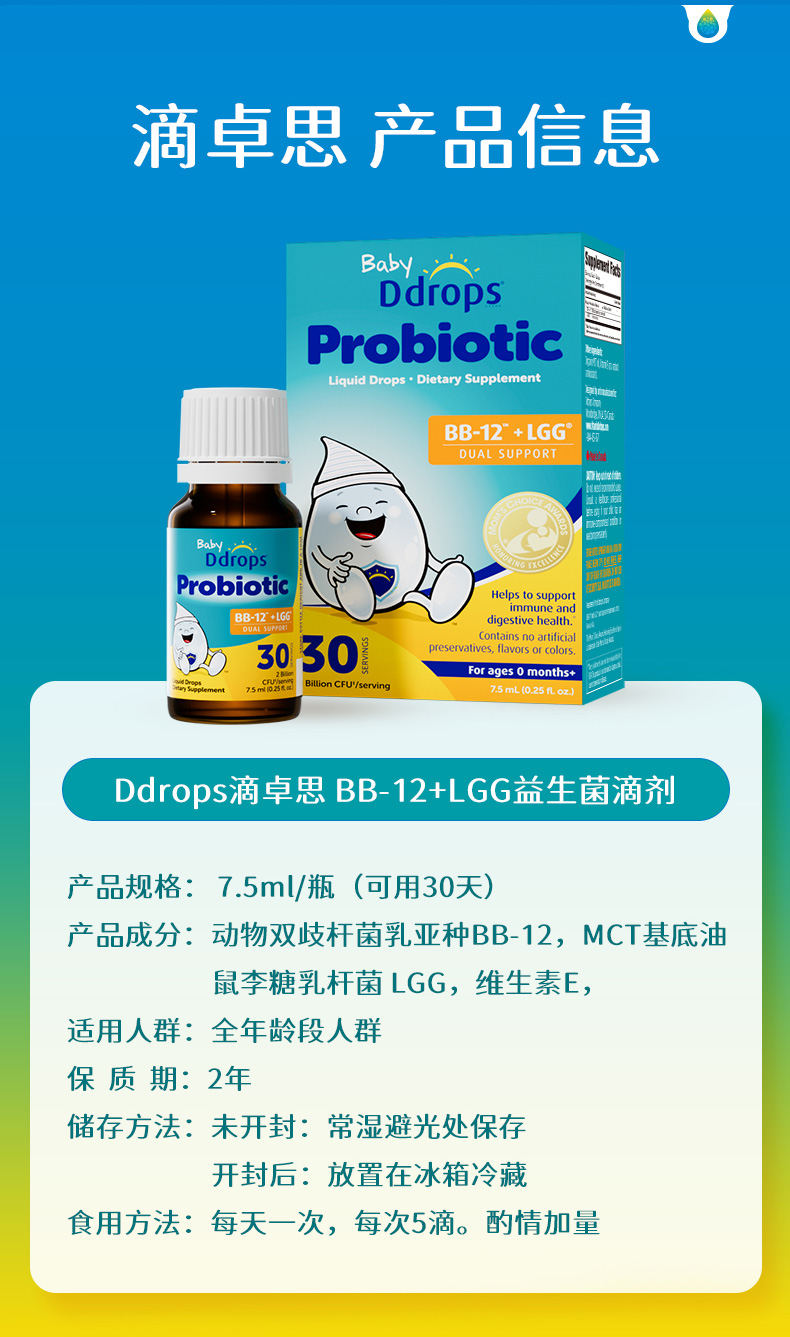 【含邮含税】Ddrops婴幼儿益生菌滴剂 BB-12+LGG 150滴 7.5ml/瓶