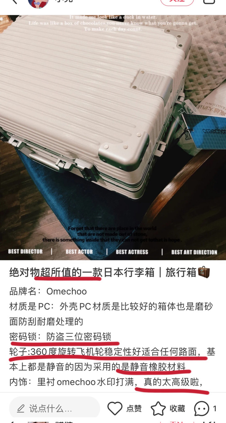 心中最有氛围感的单品:OMECHOO行李箱