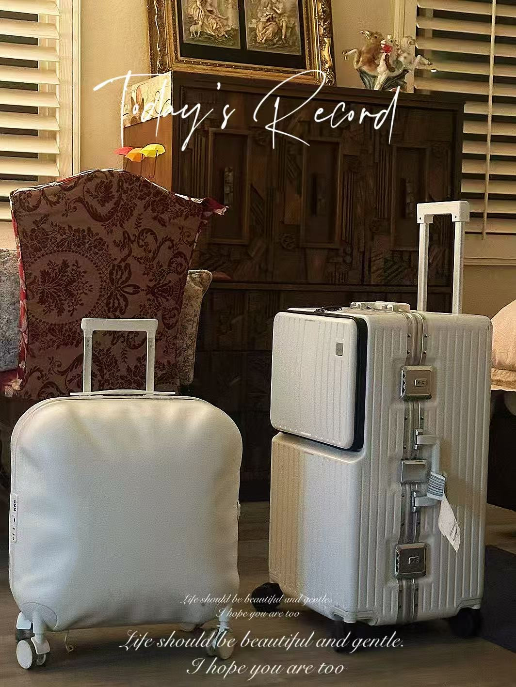 一见钟情,美爆了的奶白铝框行李箱!!