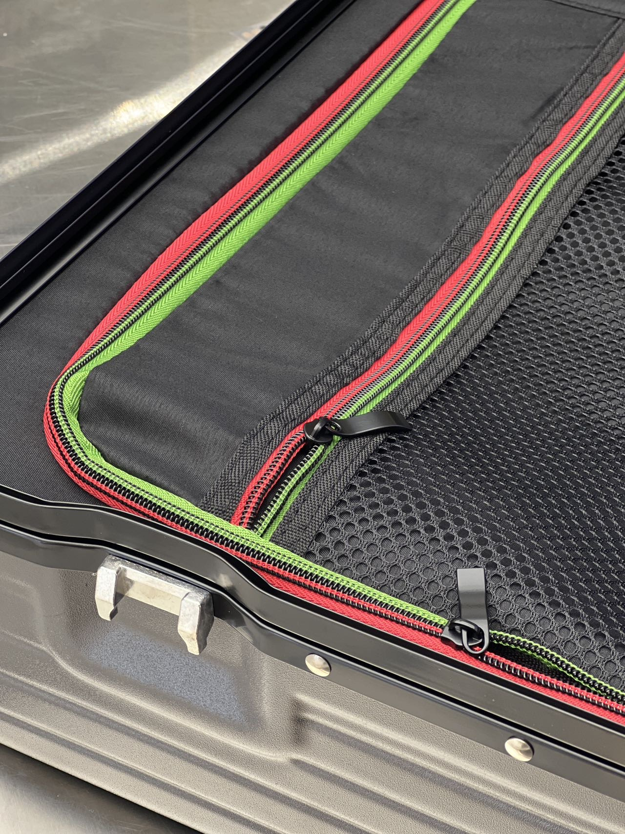 首先,当开启行李箱时、要保证 两个拉链头是下