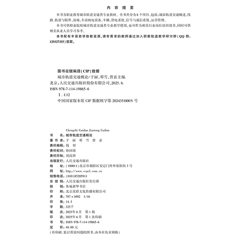 【新书预售】城市轨道交通概论 于丽 邓雪 曾嘉 9787114198656 人民交通出版社