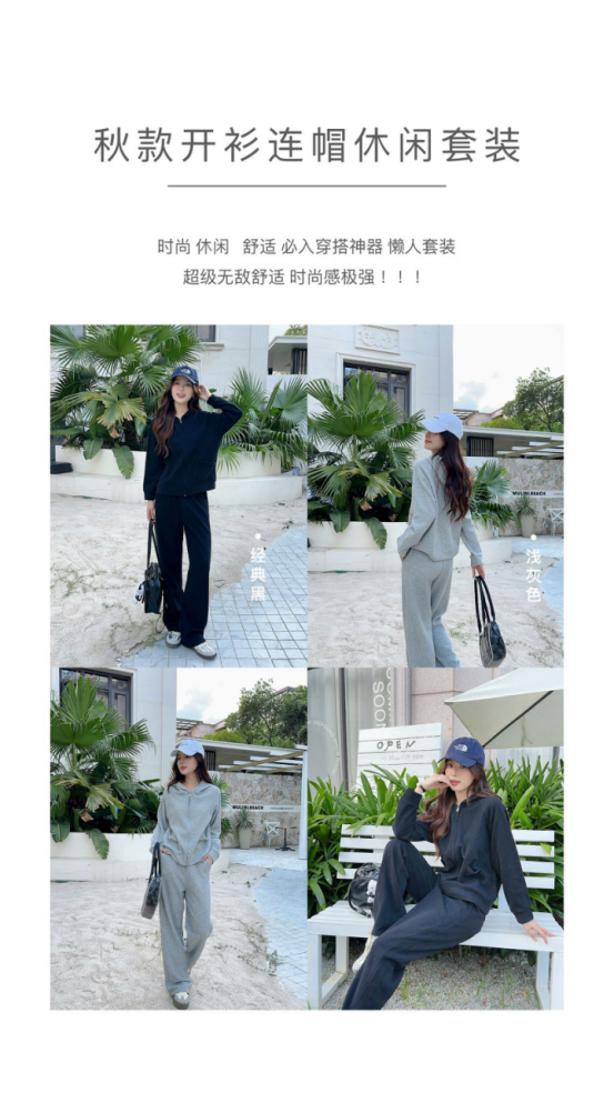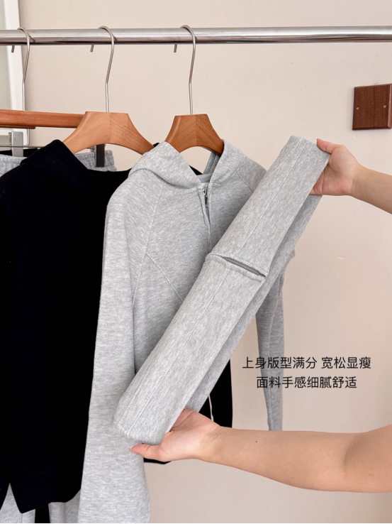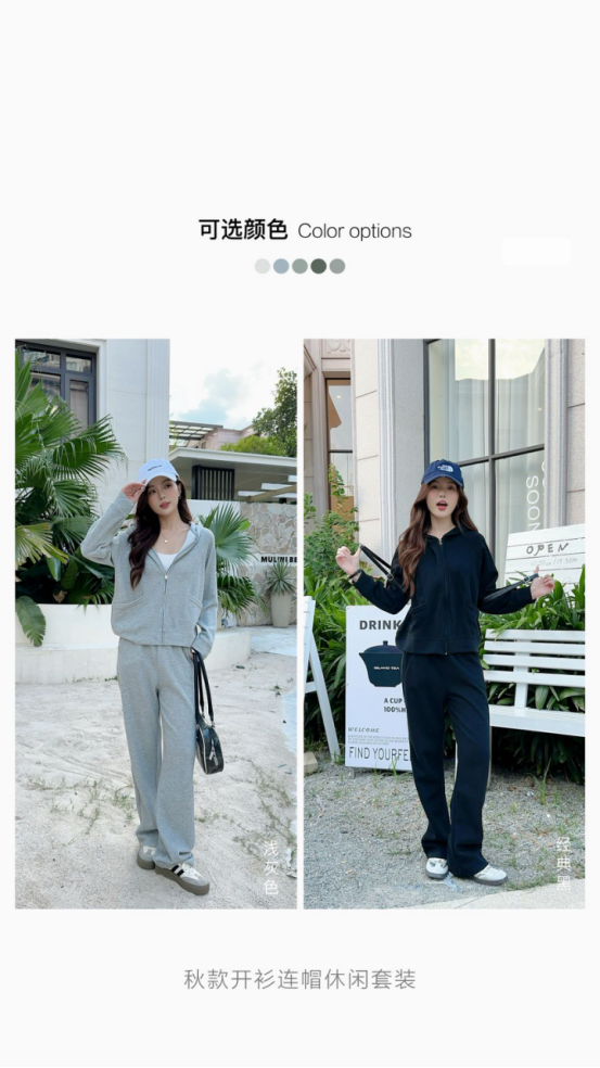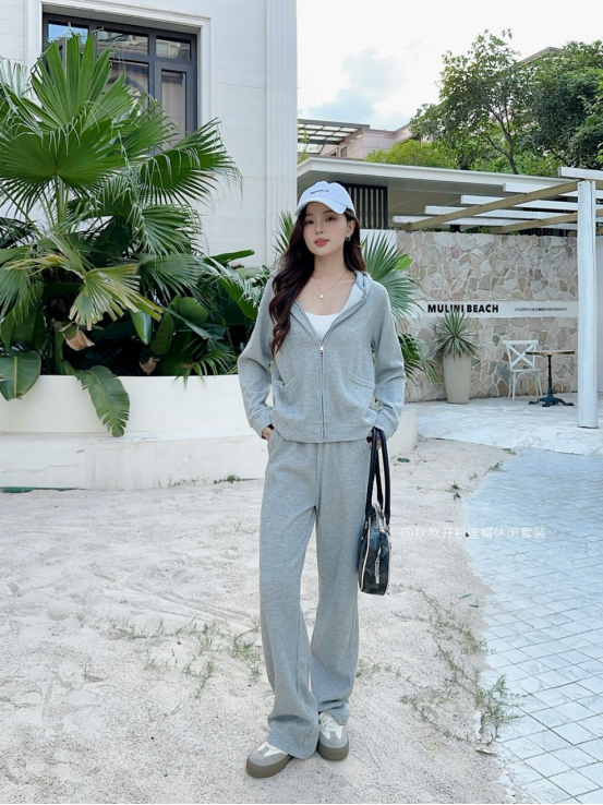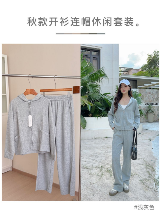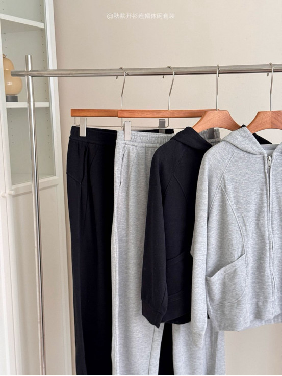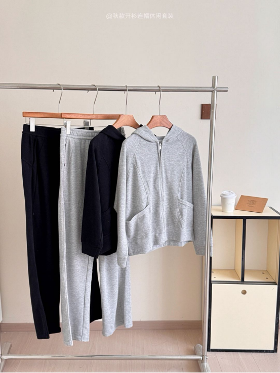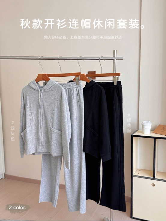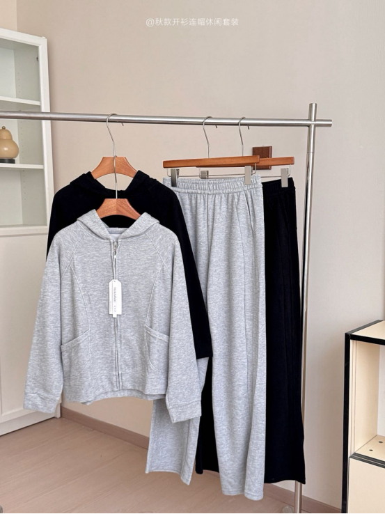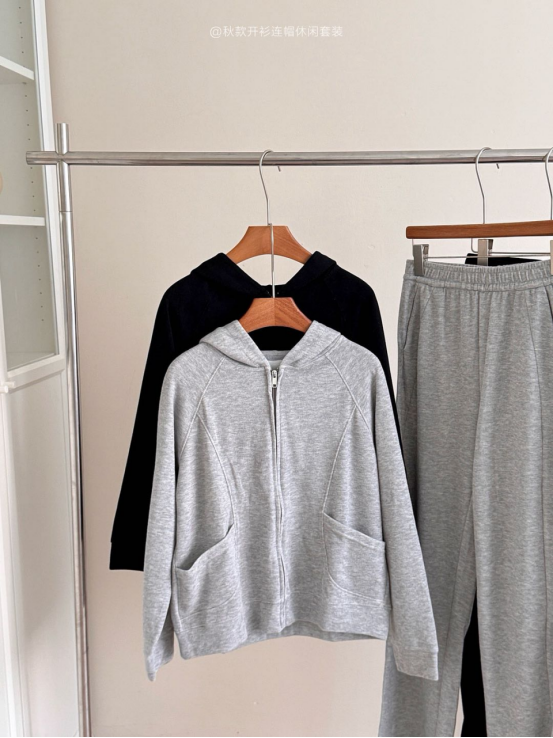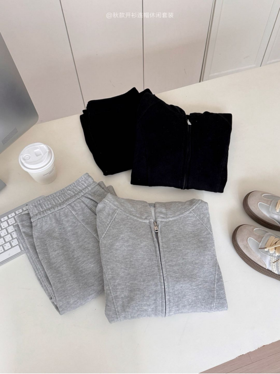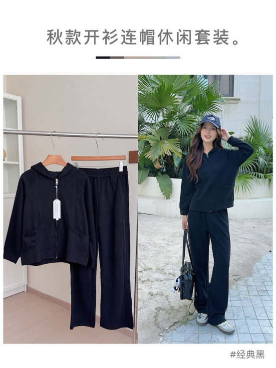 卫衣套装天花板来啦!穿上直接变慵懒时髦精~💕 连帽开衫设计也太实用了吧! 拉链超级顺滑,一拉到底不卡顿,单手操作超方便~🤩 袖口是弹力收口的,防风又保暖,再也不怕冷风钻进去啦!❄ 👖裤子松紧裤腰+弹力面料 吃饱了也不勒肚子,舒适度满分💯! 两侧斜插口袋超能装,手机钥匙随便塞~