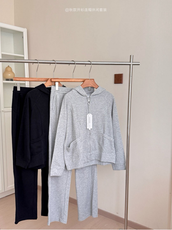 💥【花凡汐-秋款开衫连帽休闲套装666-801】💕松弛感卫衣套装真的很好穿这一套 🌞直接出门没问题 逛街上班都能穿,永远爱这种松弛感 离不开的美式套装🦪
