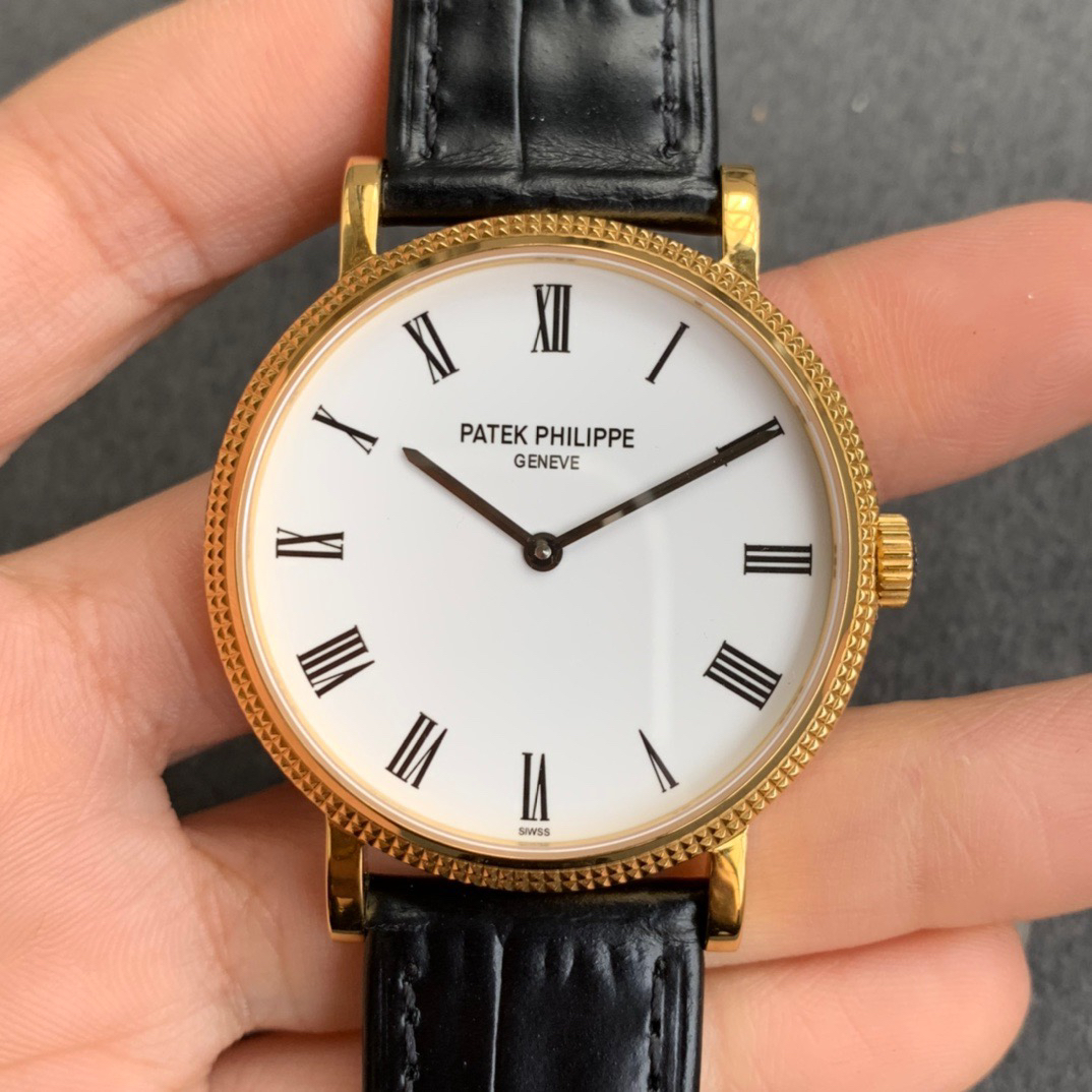 赠送原装表带一副!TW百da翡丽 Calatrava古典系列🔥5120G白色表盘、罗马数字、棒型指针、巴黎饰钉外圈,没有多余的一笔,就是这样简约!忘记小秒针忘记时光流逝,超薄外观配超薄意大利牛皮相得益彰。搭配了cal.240珍珠陀自动机械机芯使外观上和正品更加接近完美 整表厚度8.9超薄设计 整个手表真空电度了一层铂金让手表光泽更加接近正品 钢带采用了9珠散粒珠宝扣组合而成让佩戴起来更加方便舒适!