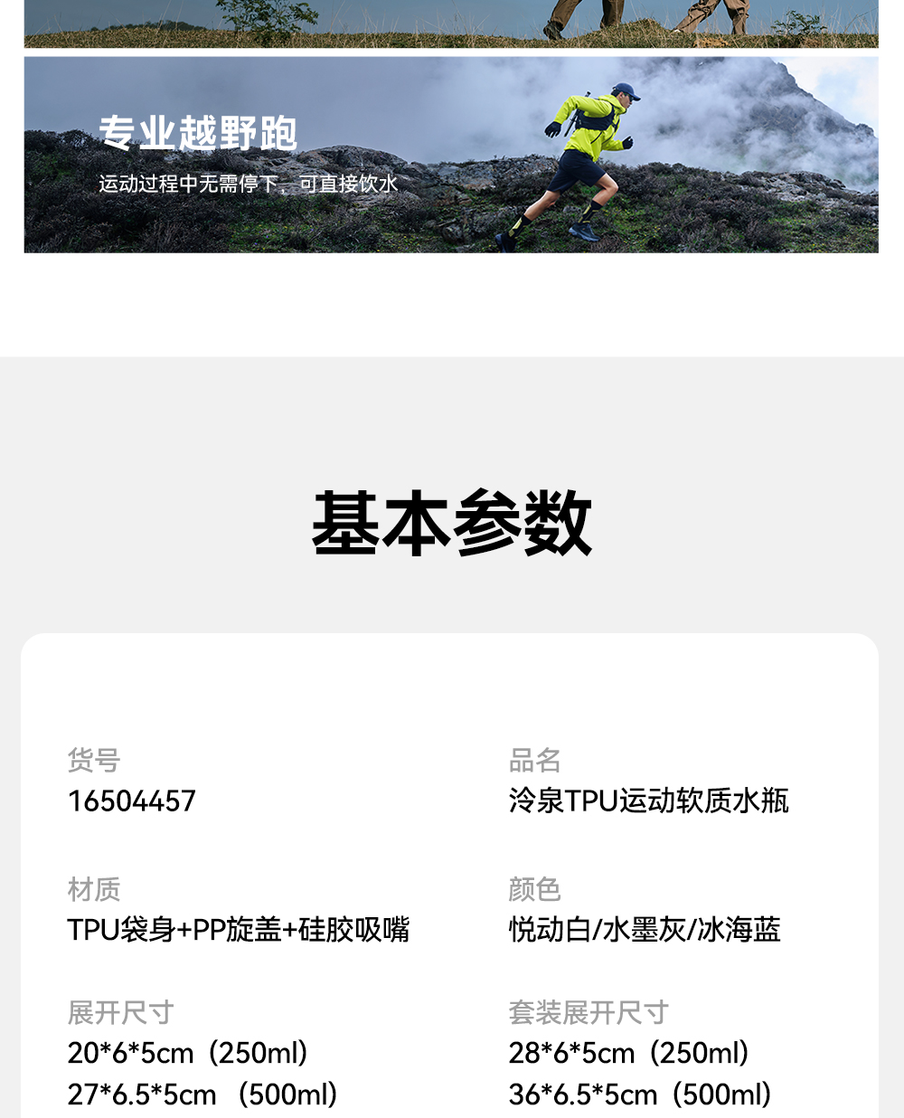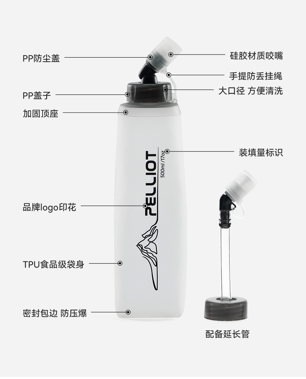 【泠泉】伯希和户外软水壶折叠登山越野跑骑行运动跑步爬山水袋