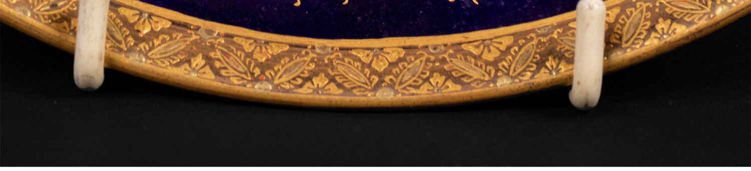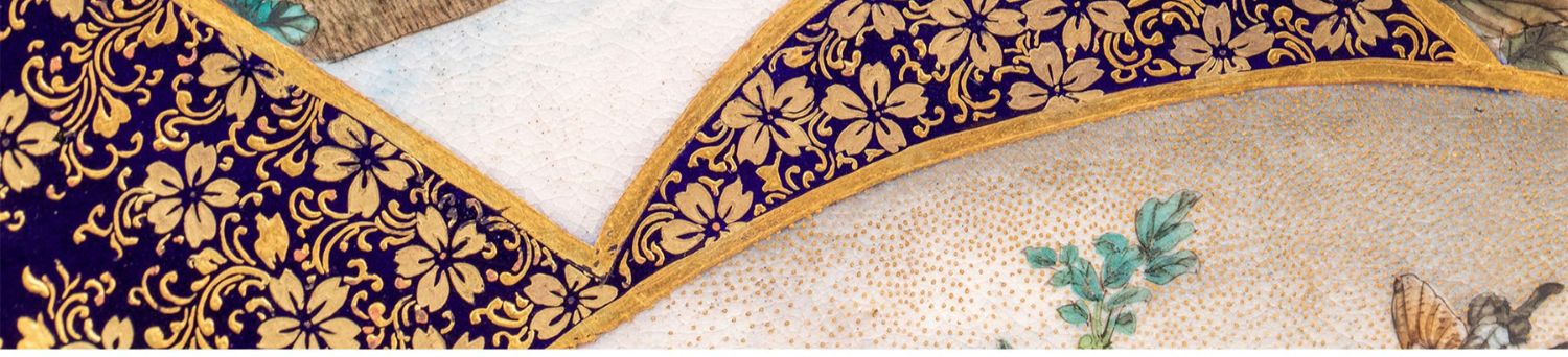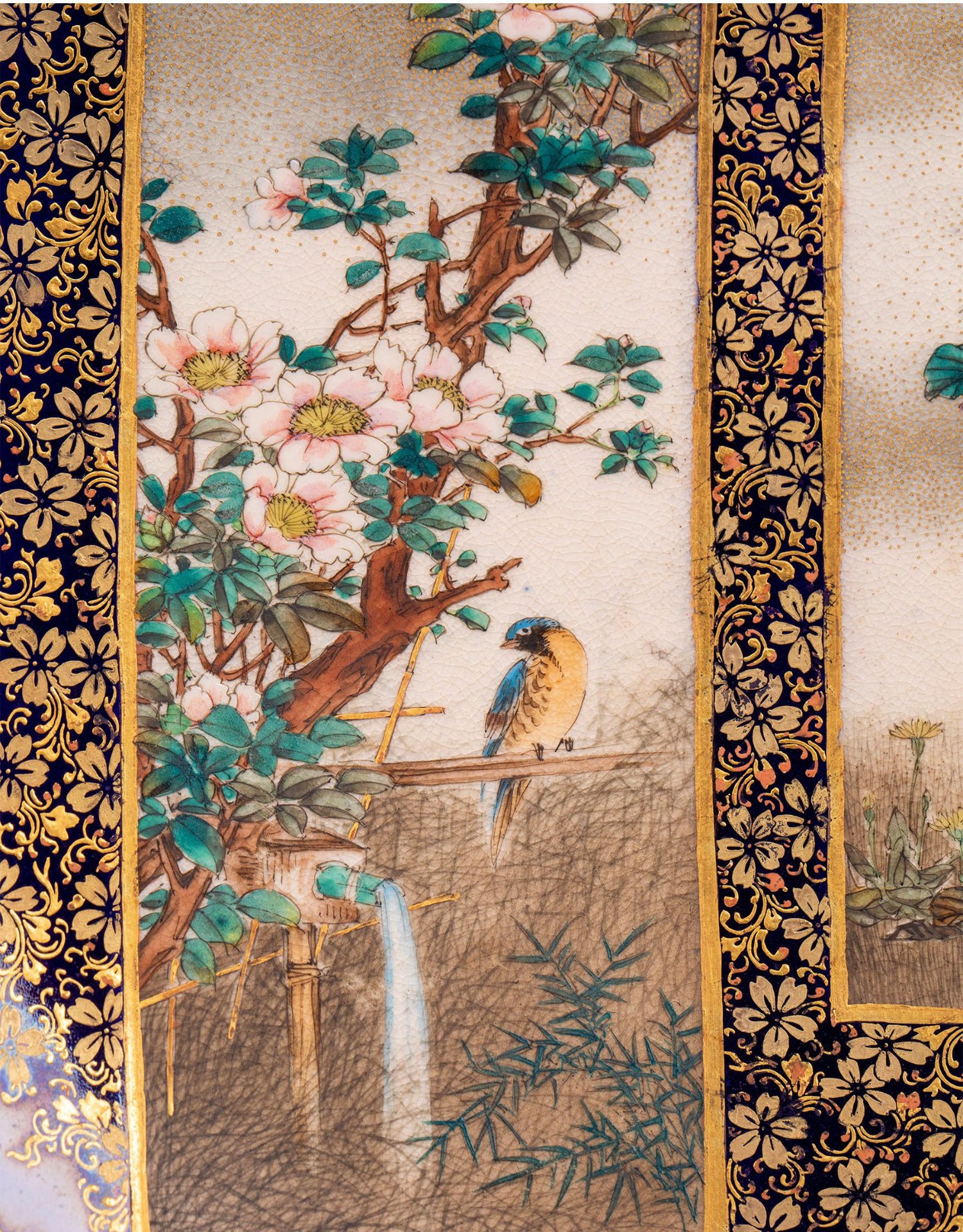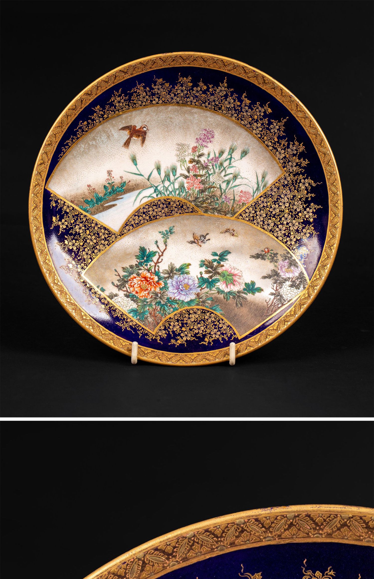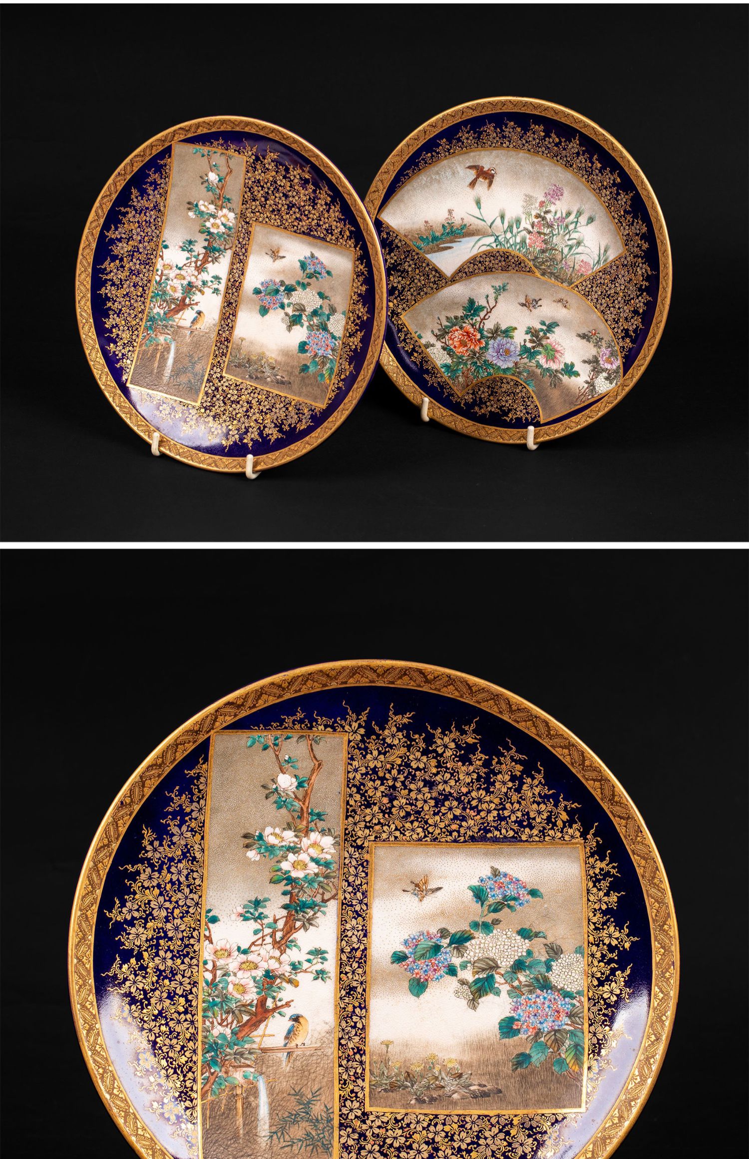 独角鹿西洋古董瓷器日本明治时代錦光山造金彩花鸟萨摩烧瓷盘一对