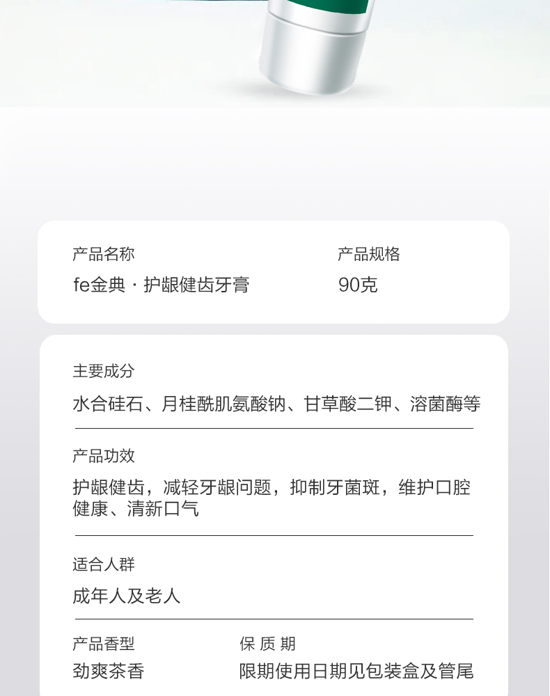 【双十二】fe金典护龈健齿牙膏生物溶菌酶 护龈健齿90g(劲爽茶香)9126