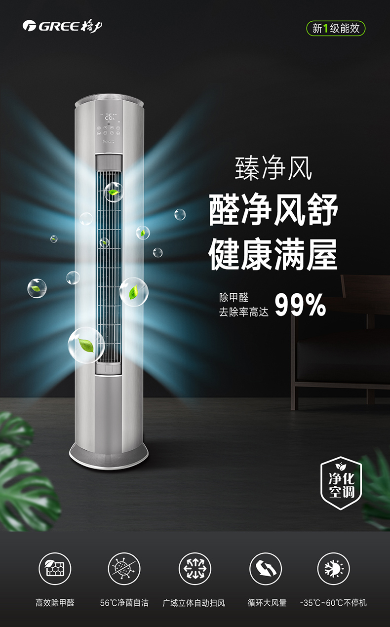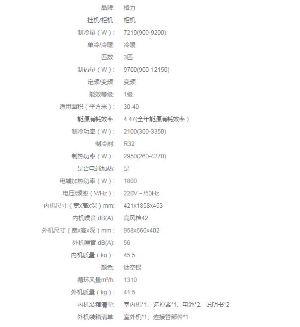 格力·臻净风变频冷暖3匹1级能效柜机空调 KFR-72LW/(72550)FNhAp-B1(WIFI)(钛空银)