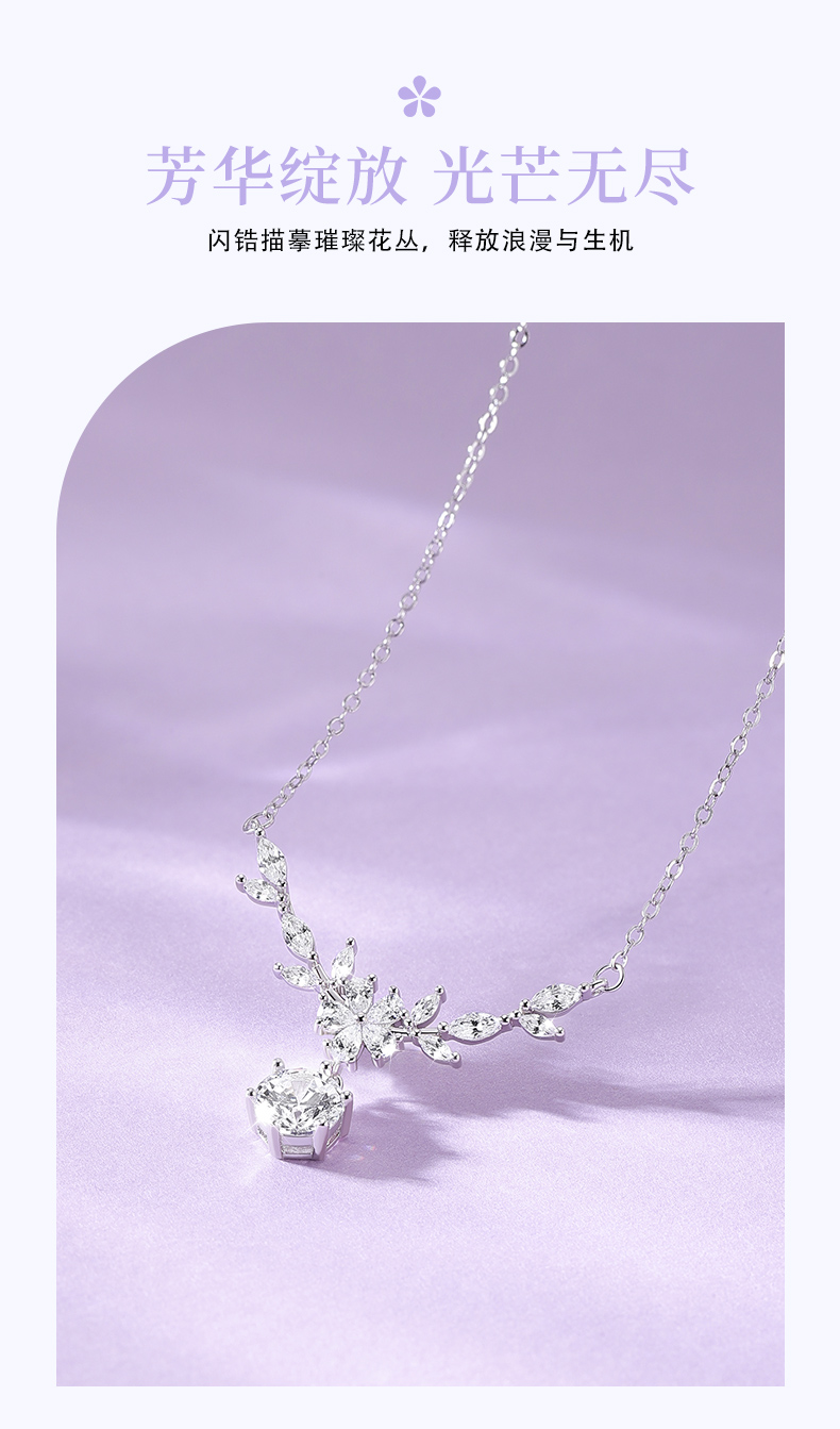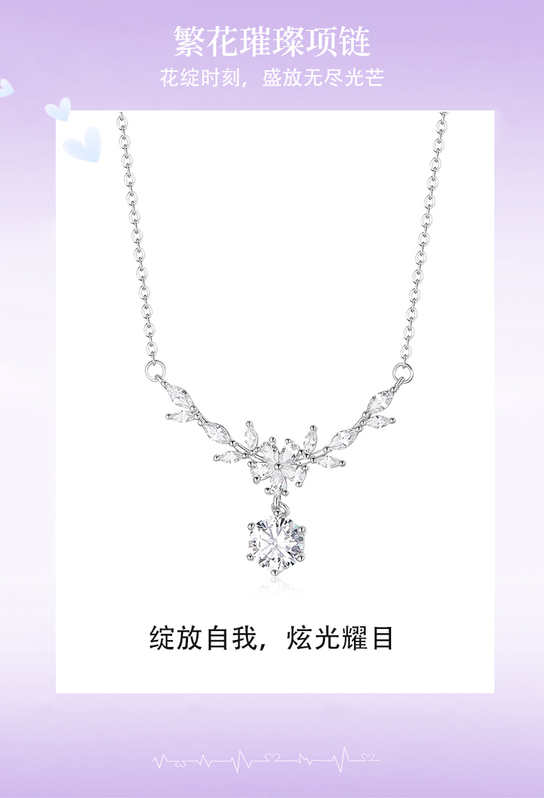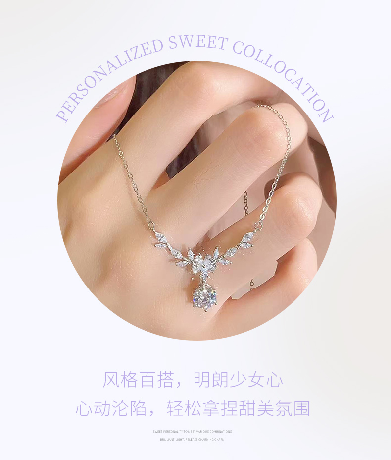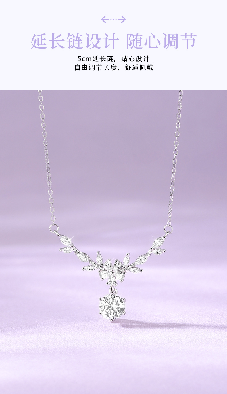 卡蒂罗KADER 紫藤花开项链 精致轻奢大气甜美爆闪水滴设计锁骨链 925银镶嵌闪锆简约百搭闪耀银河表白告白女生 毕业季