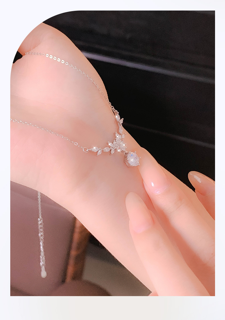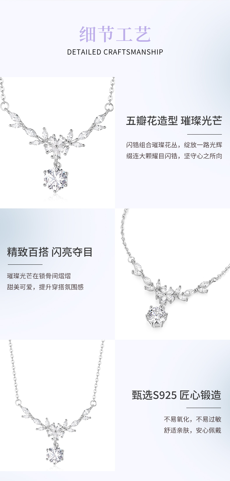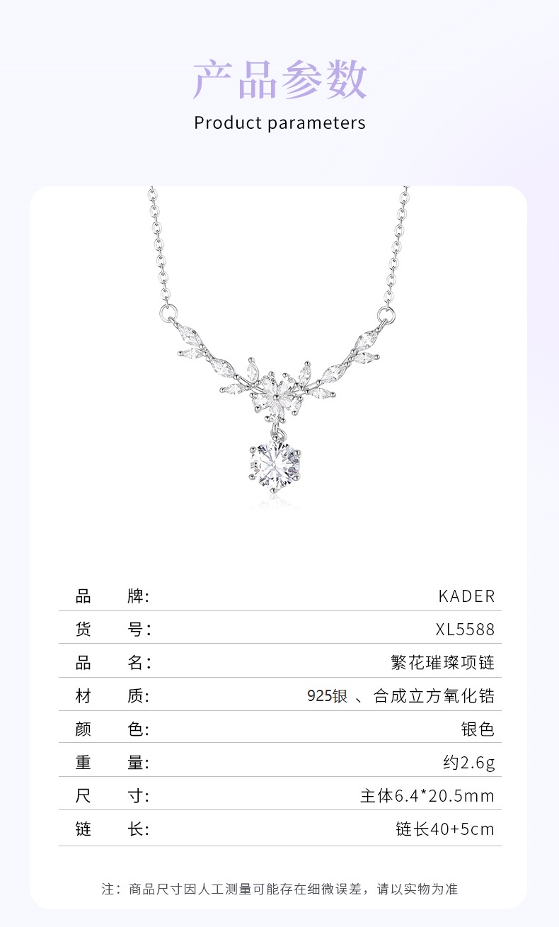 卡蒂罗KADER 紫藤花开项链 精致轻奢大气甜美爆闪水滴设计锁骨链 925银镶嵌闪锆简约百搭闪耀银河表白告白女生 毕业季