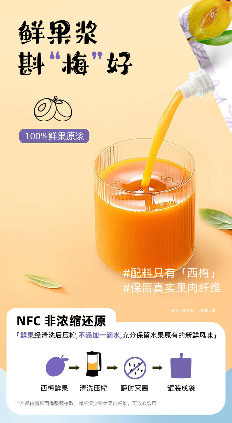 【温馨提示】产品由新鲜西梅整颗榨取,部分沉淀为果肉纤维,请放心食用。