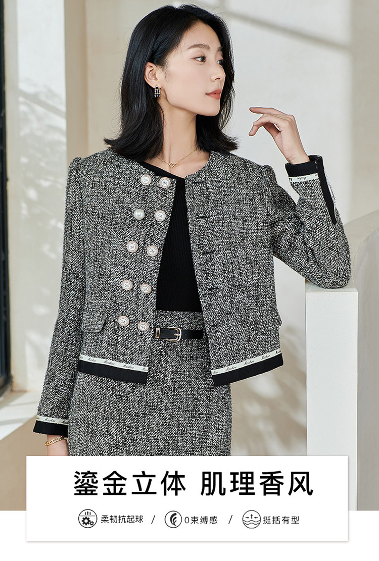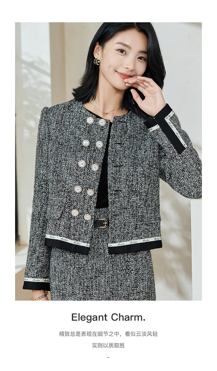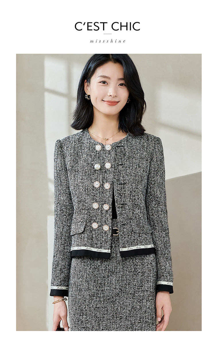 米思阳2026春季新款小香风复古双排扣短外套拼接保暖宽松上衣0063