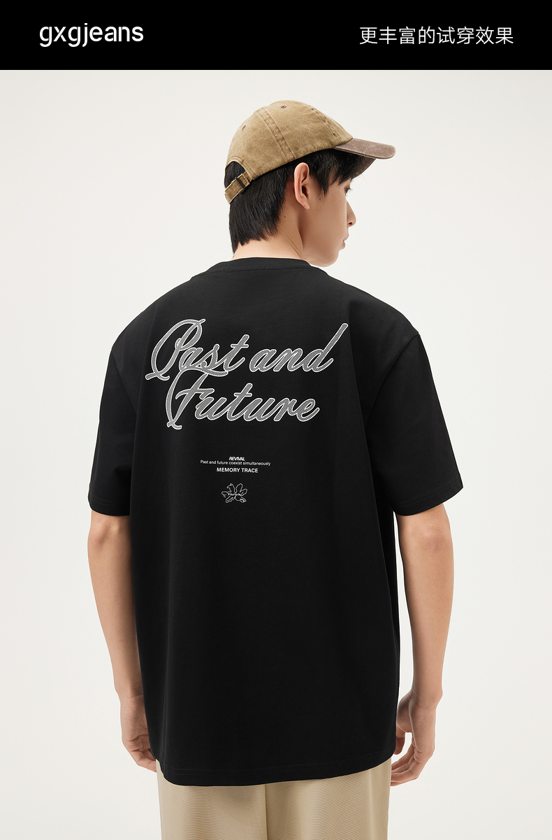 gxg.jeans男装 多色后背字母时尚美式宽松圆领短袖T恤男 25夏热卖