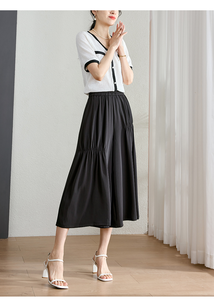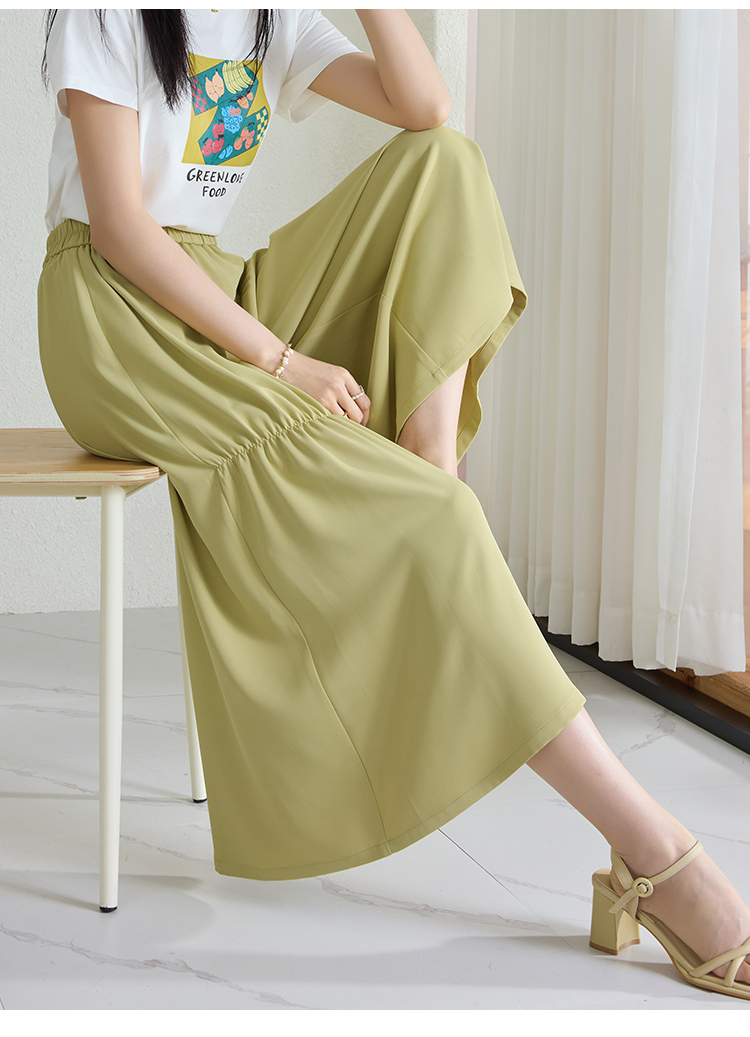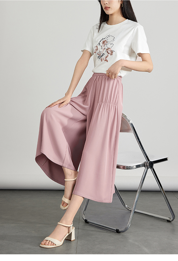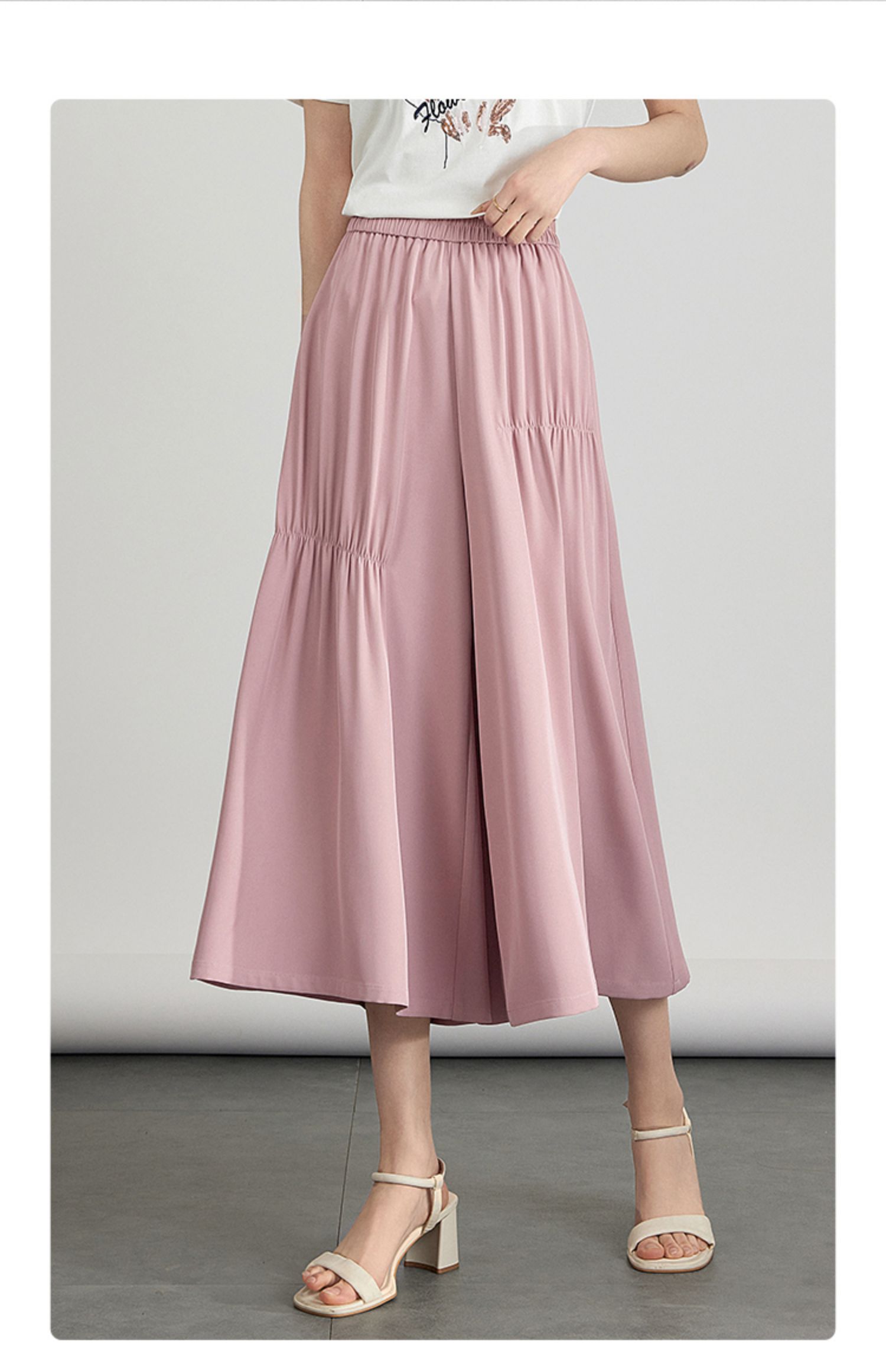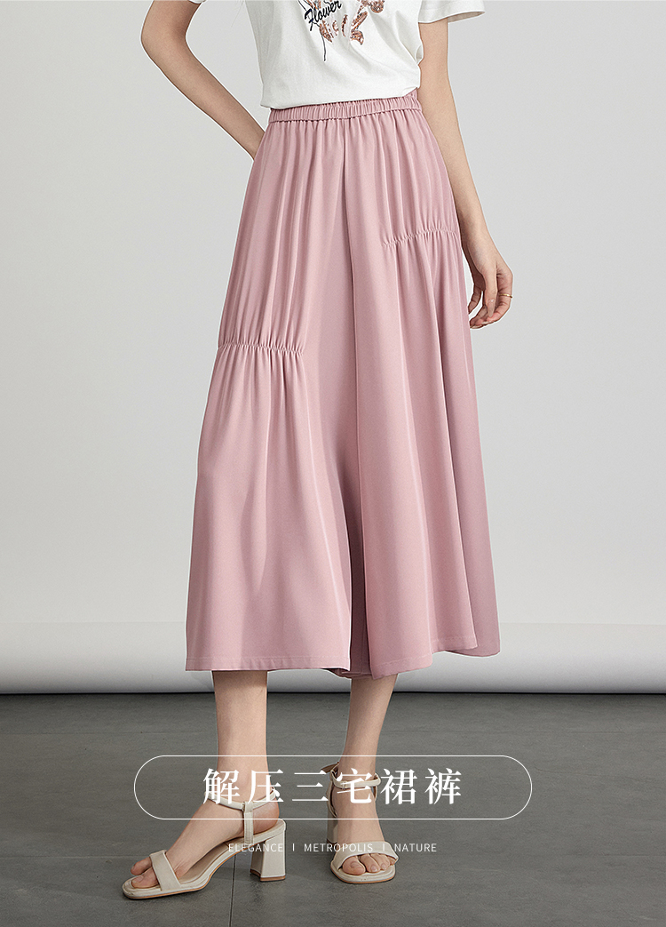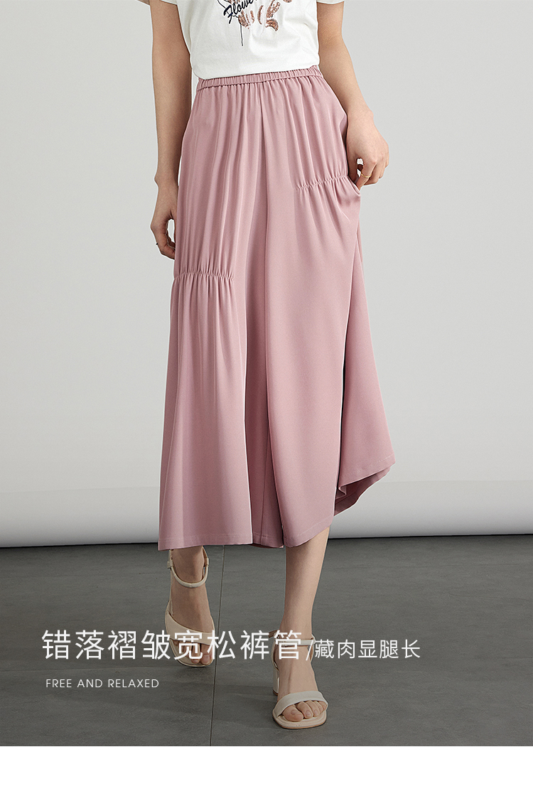 【专属特价】熙世界九分裙裤阔腿裤女2025夏季新款高腰垂感收褶宽松休闲裤裙