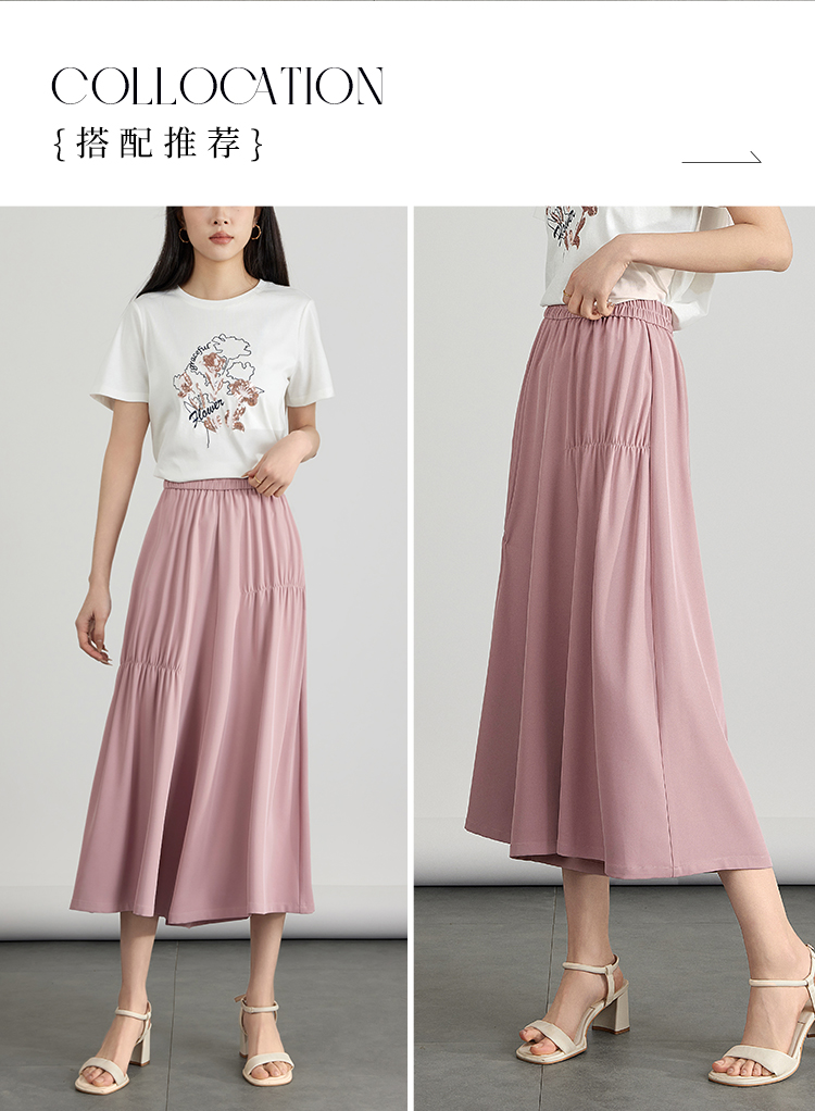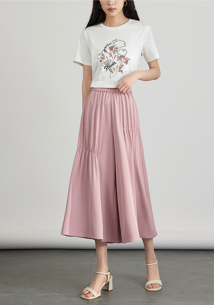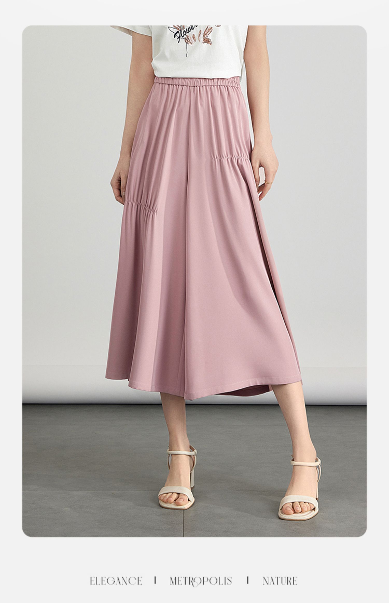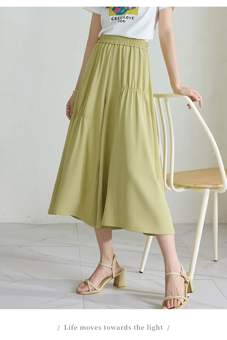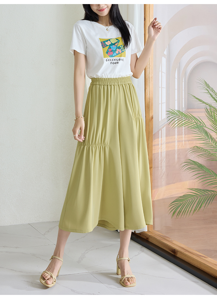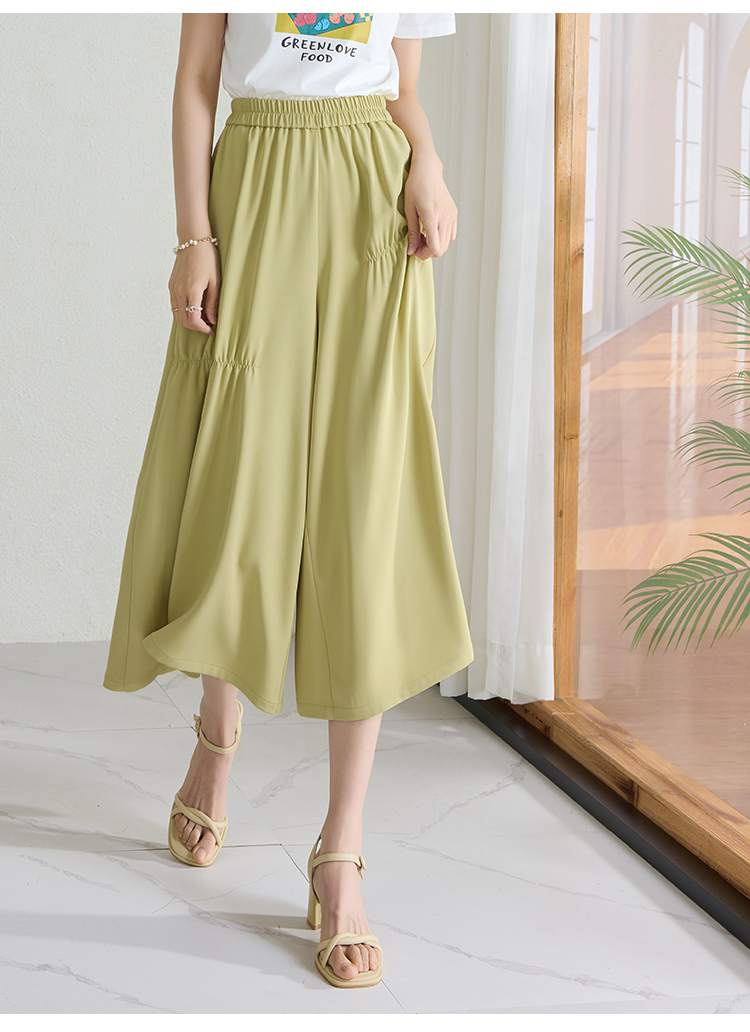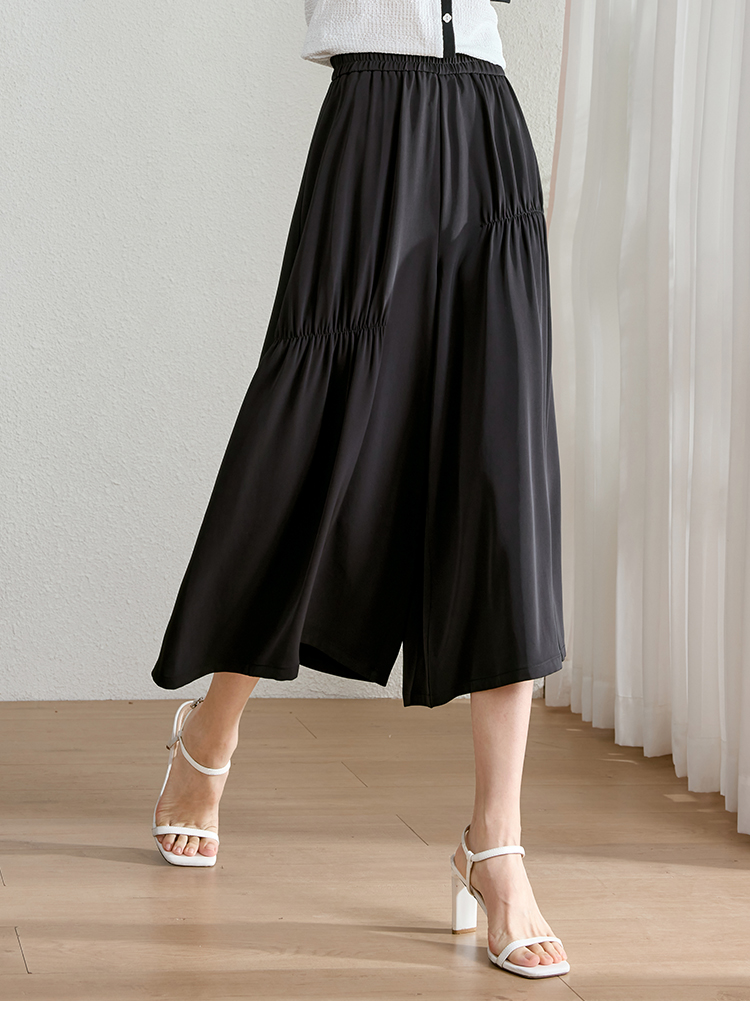 【专属特价】熙世界九分裙裤阔腿裤女2025夏季新款高腰垂感收褶宽松休闲裤裙