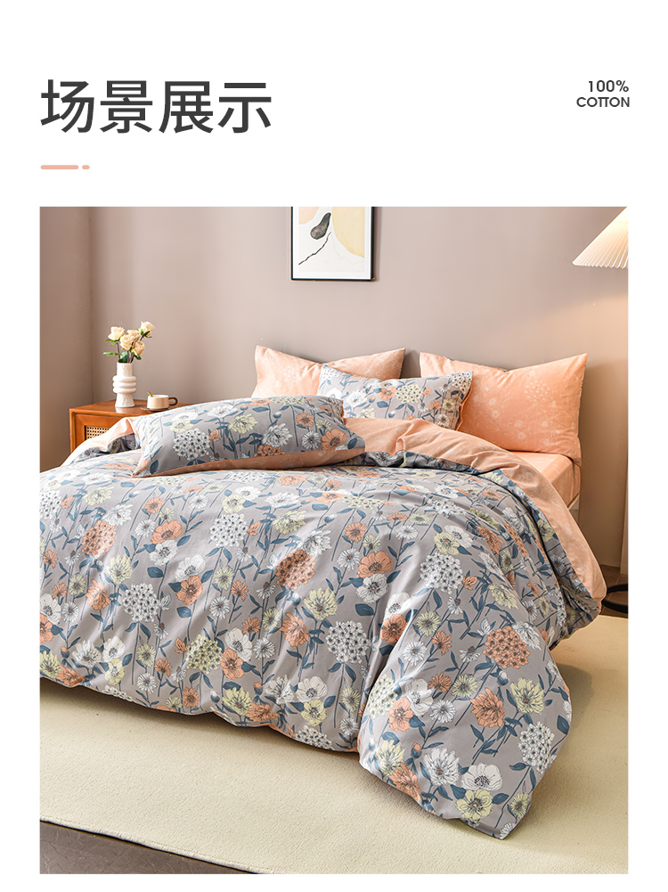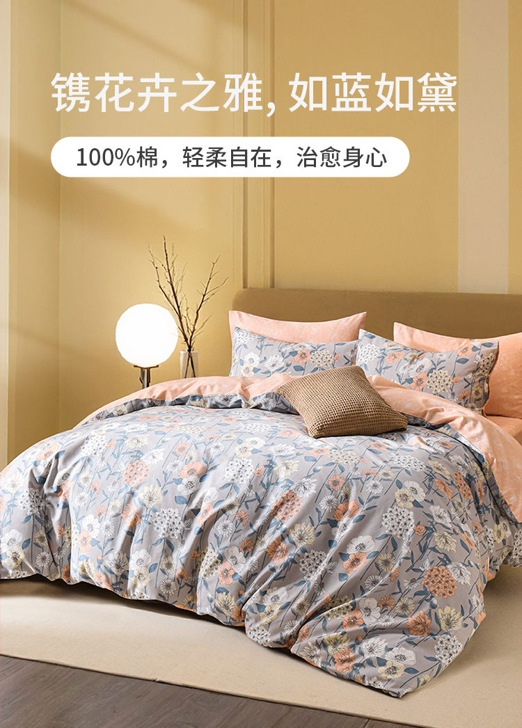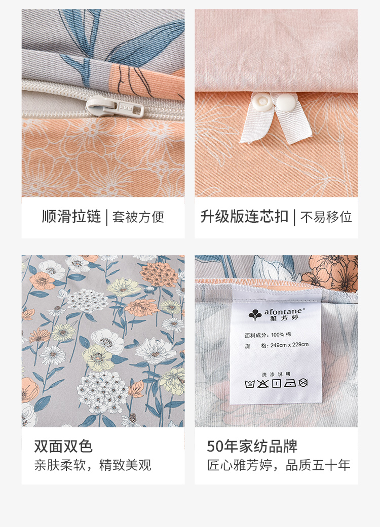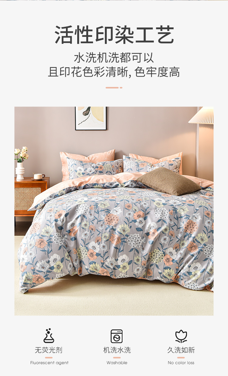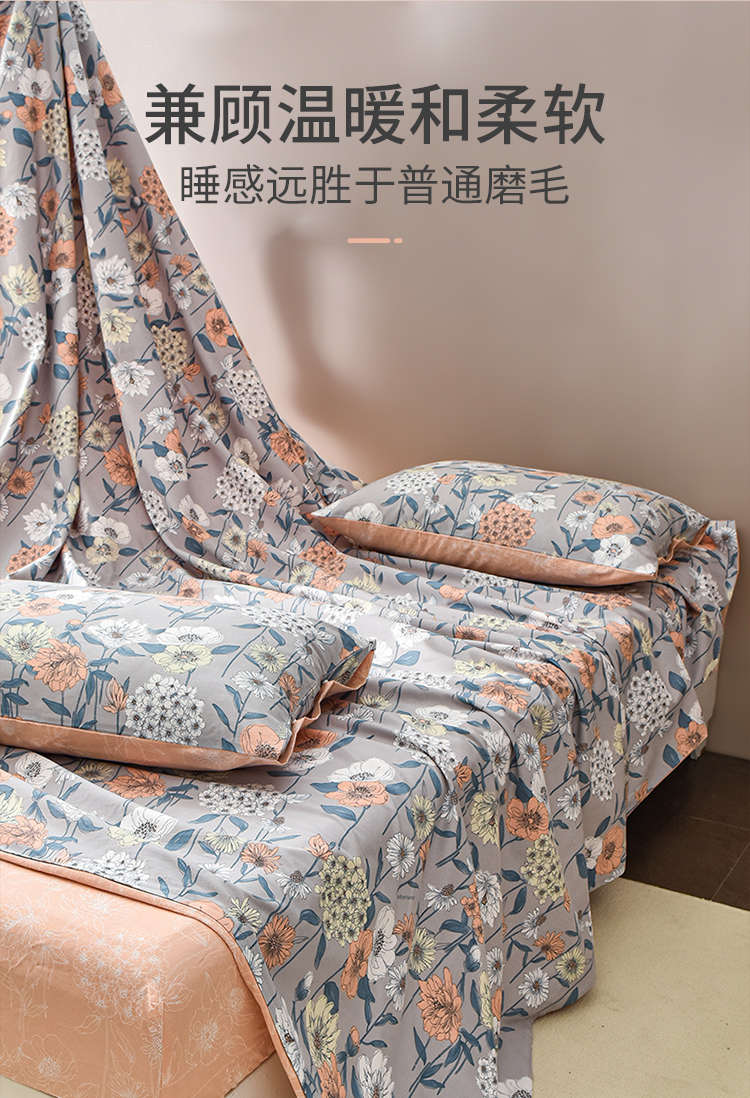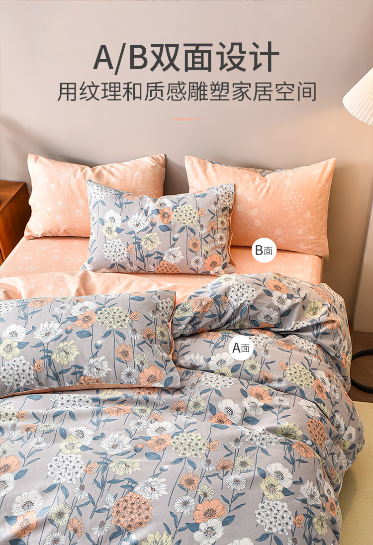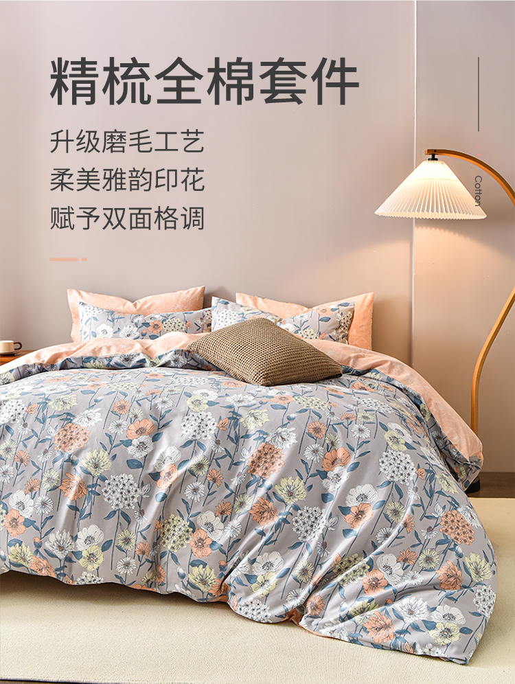 2024年秋冬新款雅芳婷床笠款磨毛四件套田园花卉AB面被套纯棉套件