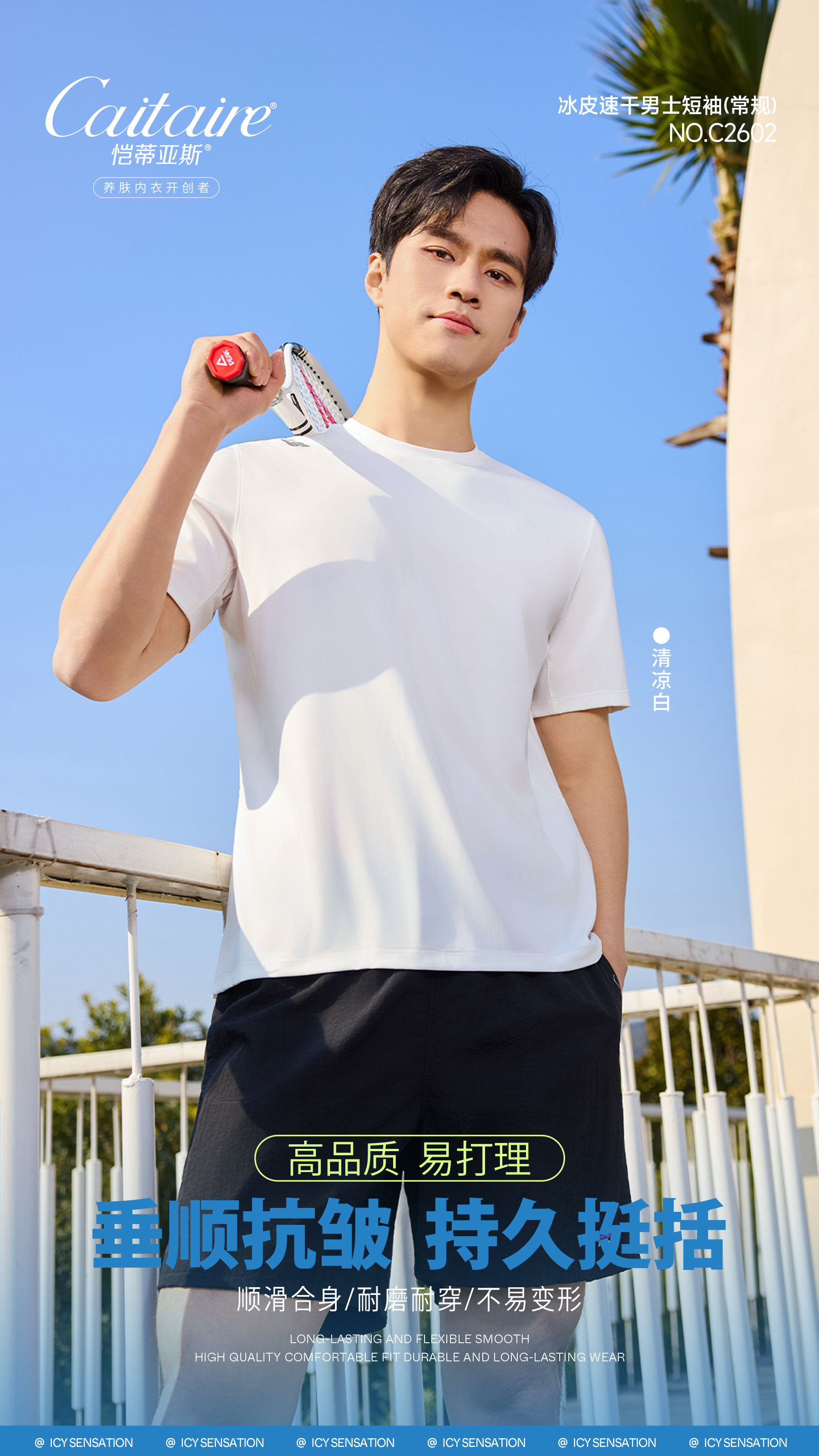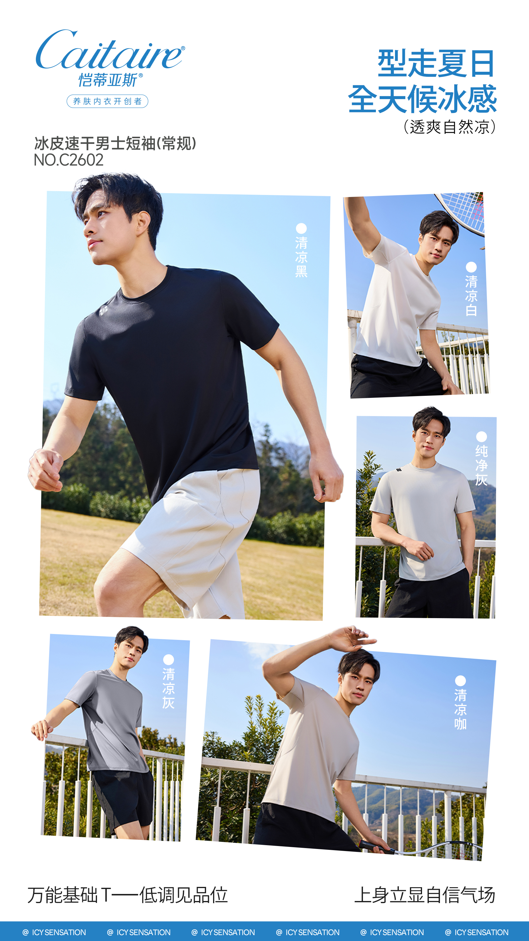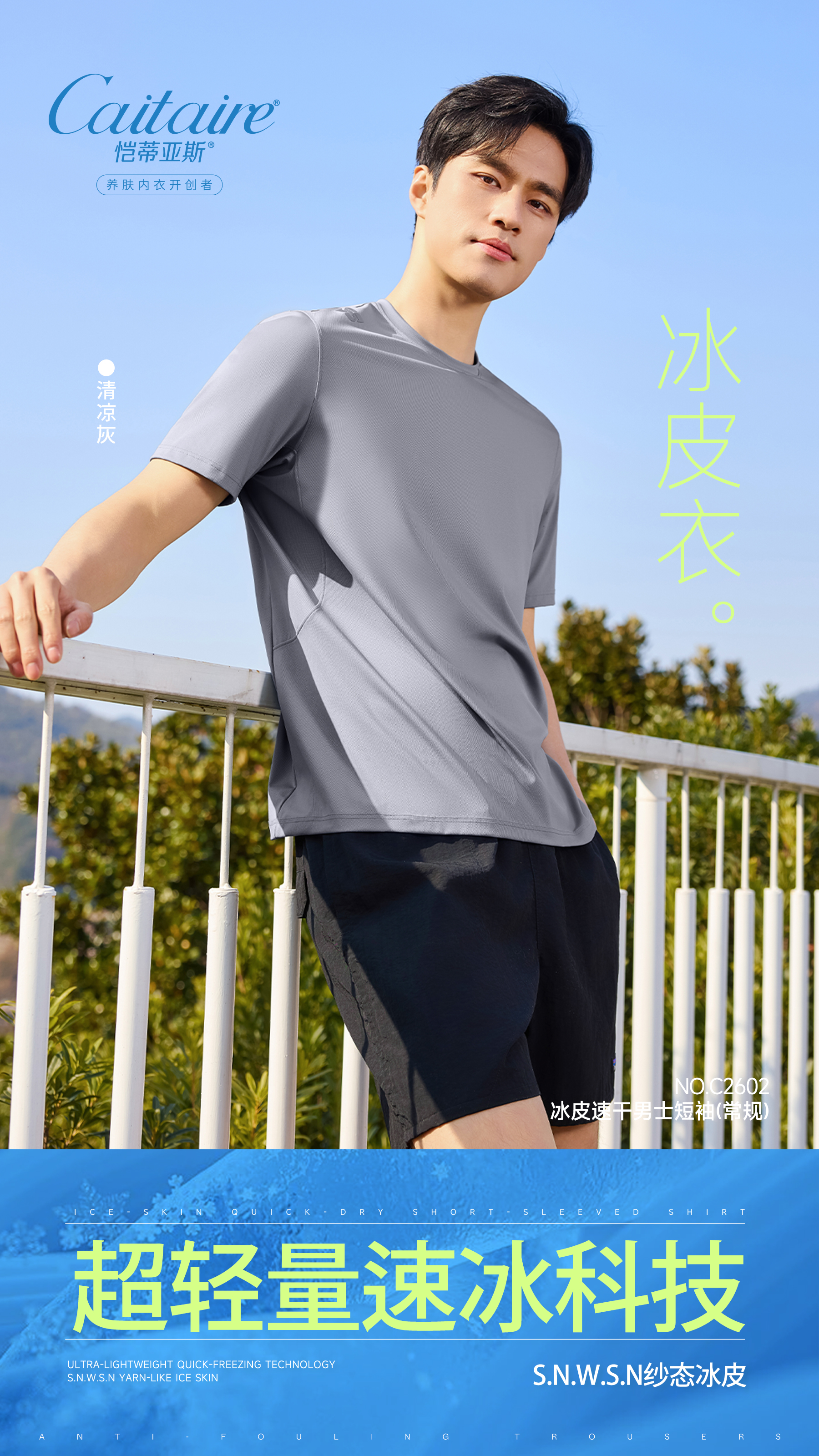 正品恺蒂亚斯冰皮速干男士运动衫凉感短袖T恤 C2602
