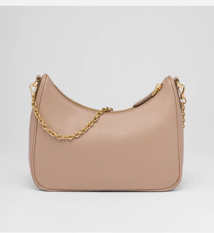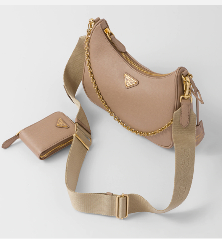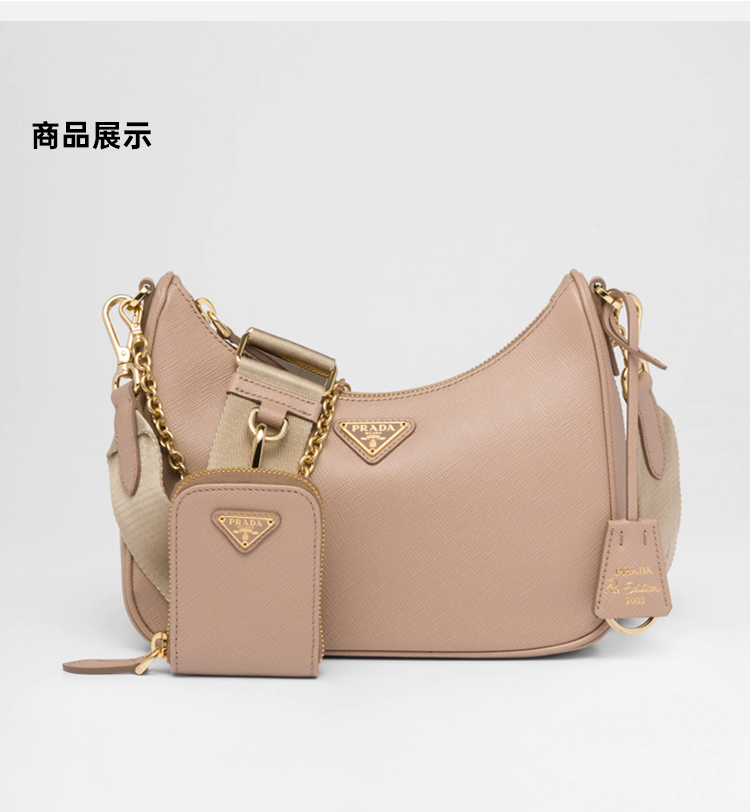 PRADA 普拉达 女士 2005年再版 Saffiano 皮革珐琅金属三角形徽标三合一子母单肩包 粉色 1BH204 NZV F0MUH V2M