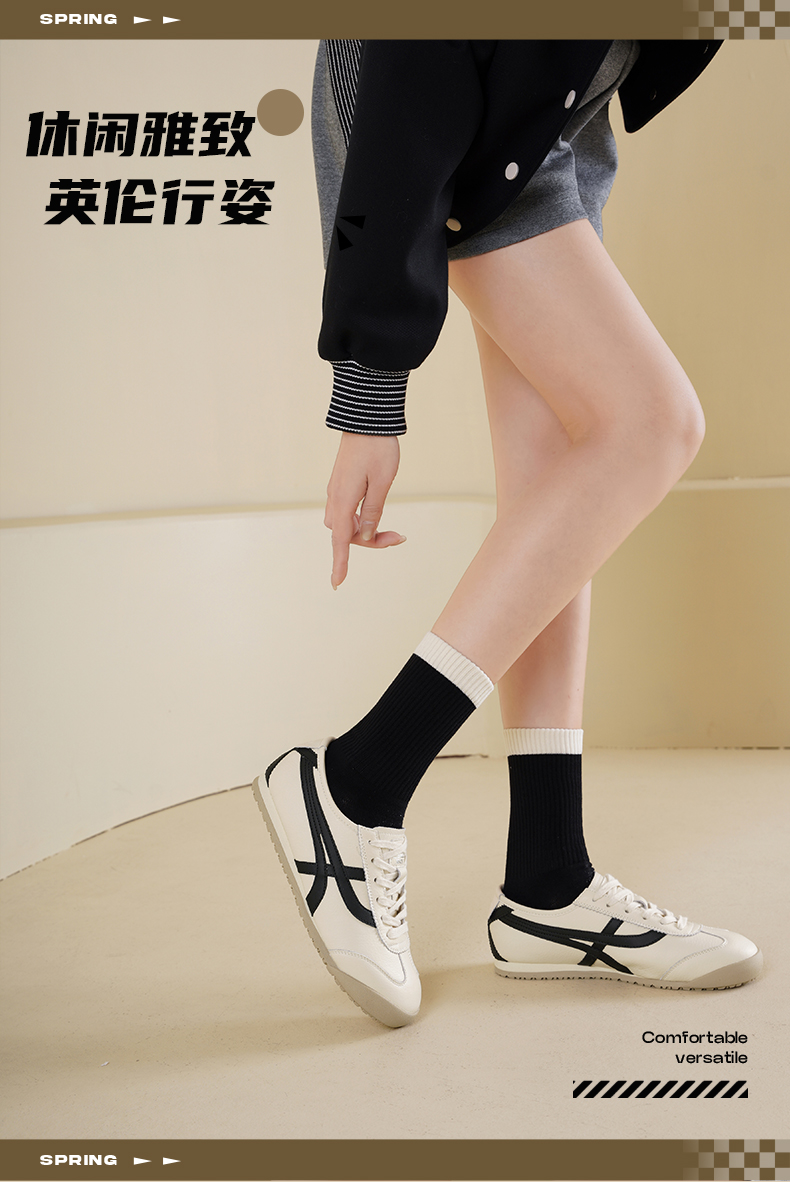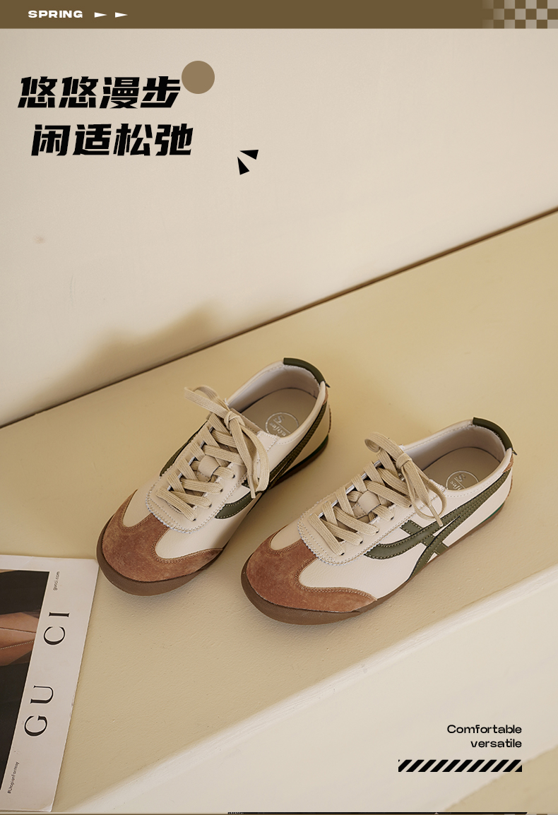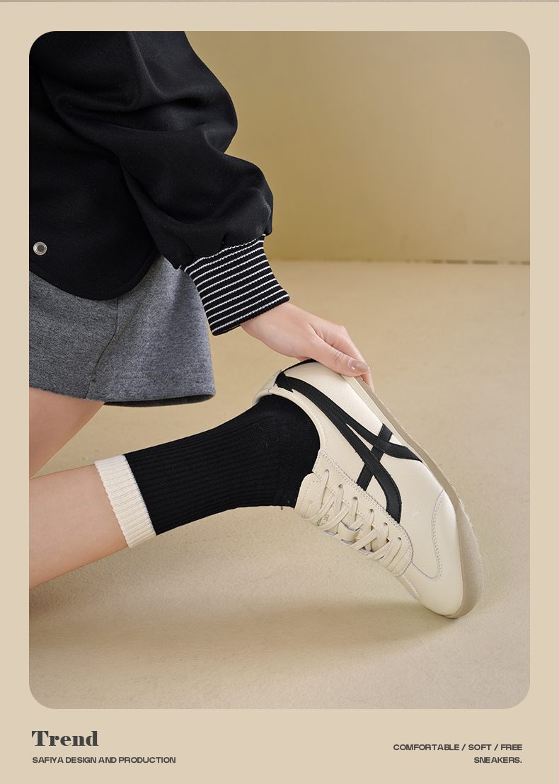 Safiya/索菲娅2025春季轻便透气休闲复古百搭拼色平底阿甘鞋SFD1112097