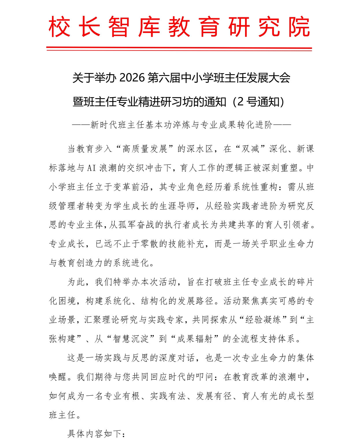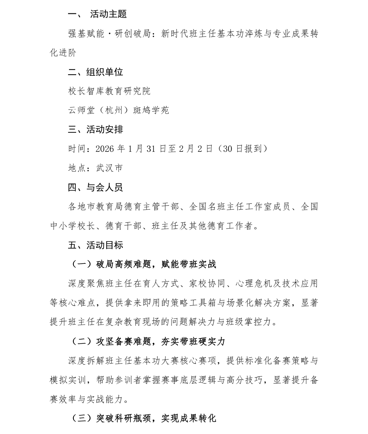 [参会通道开启] 2026 第六届中小学班主任发展大会暨班主任专业精进研习坊 1月31-2月2日 武汉 新时代班主任基本功淬炼与专业成果转化进阶