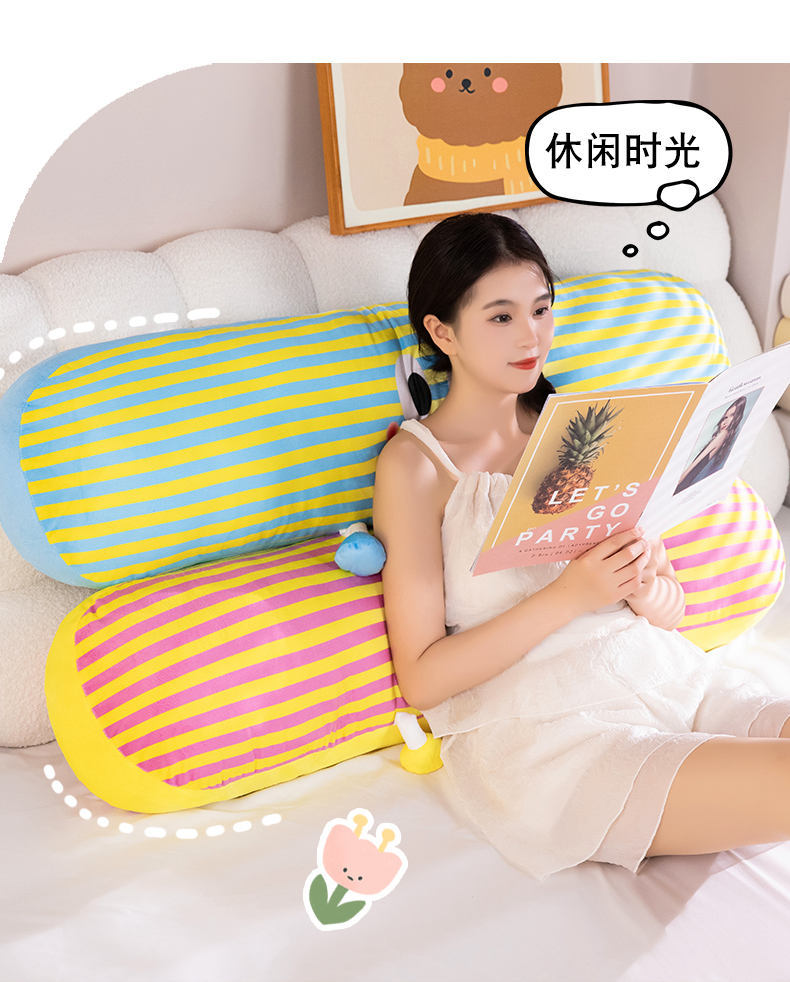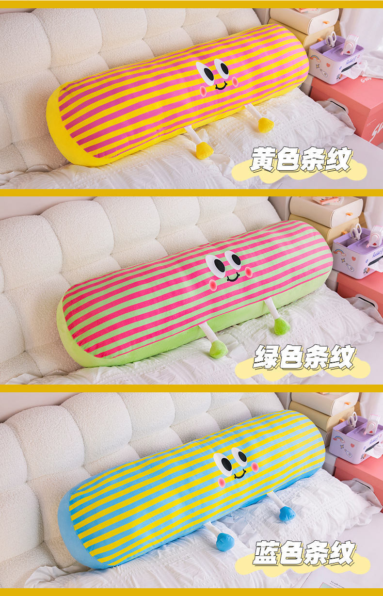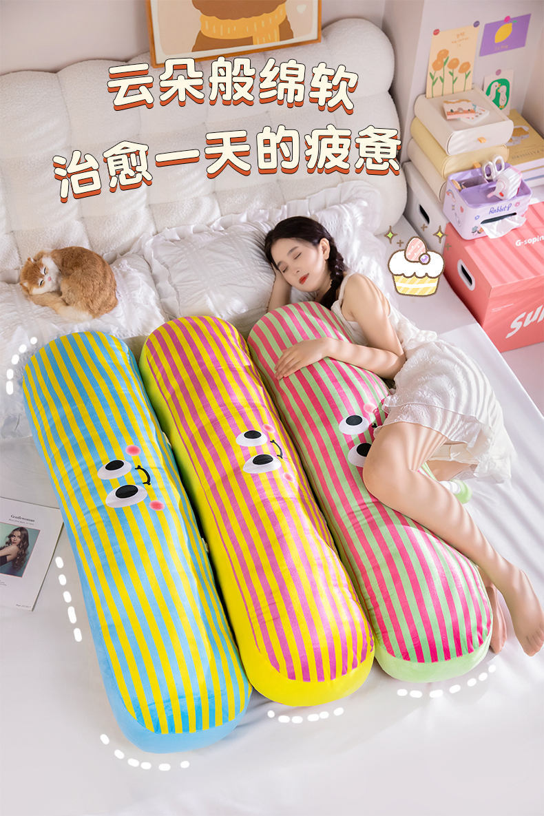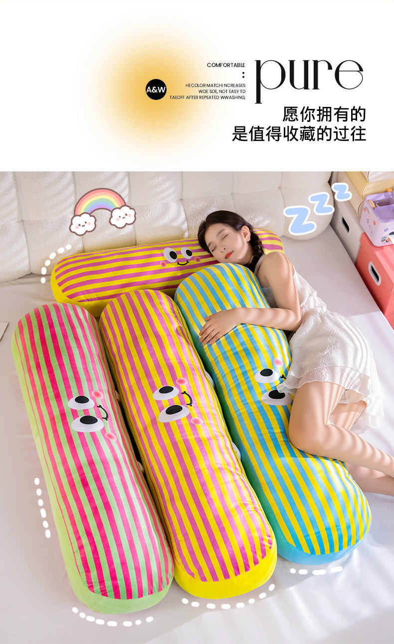 【59元秒120cm长条抱枕】可爱多巴胺条纹长条抱枕 女生大号毛绒玩具 抱着睡靠枕床头枕头 可拆洗可机洗