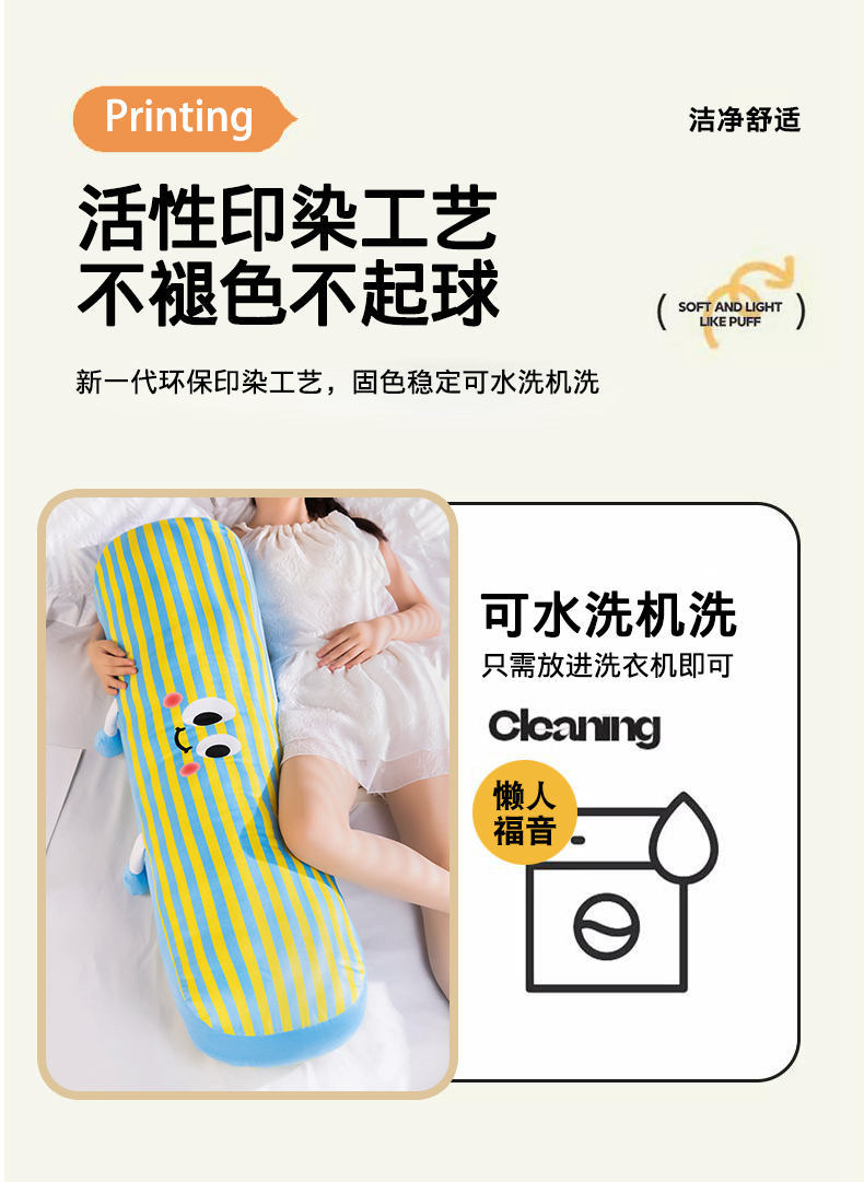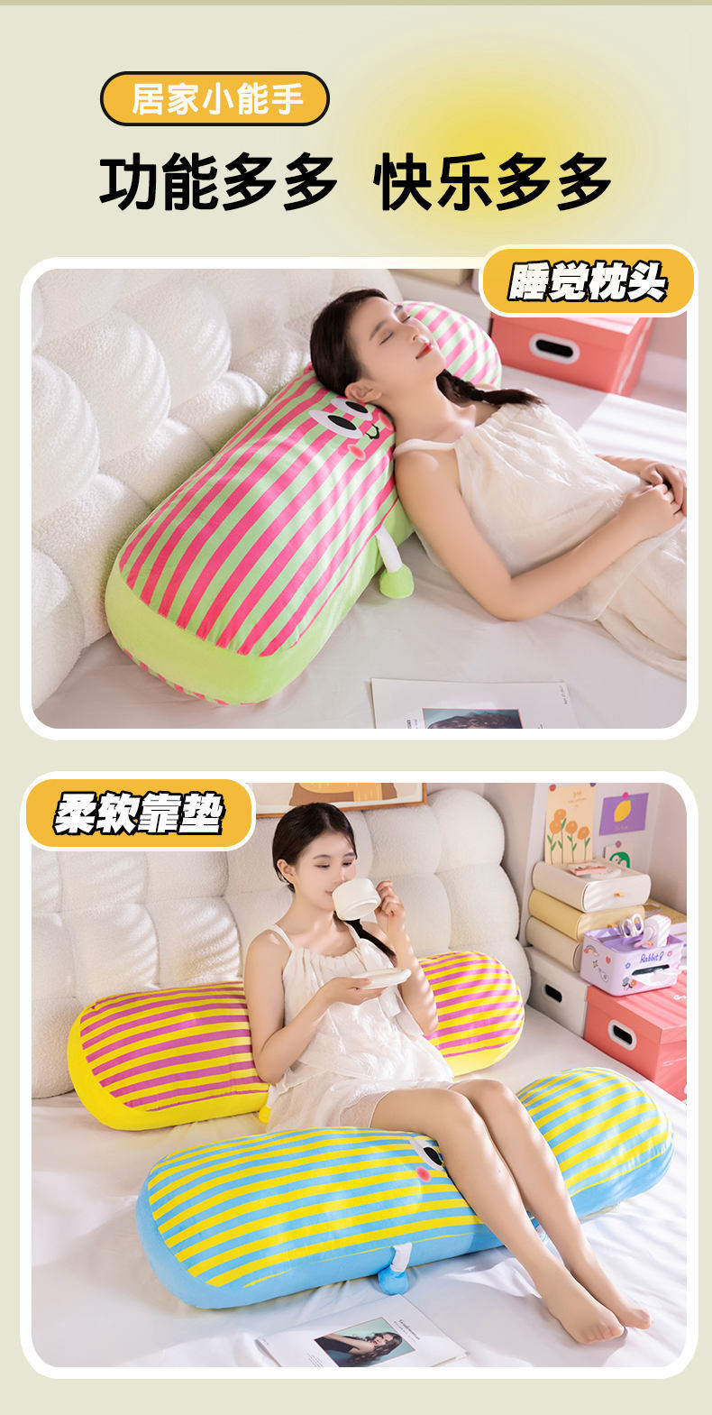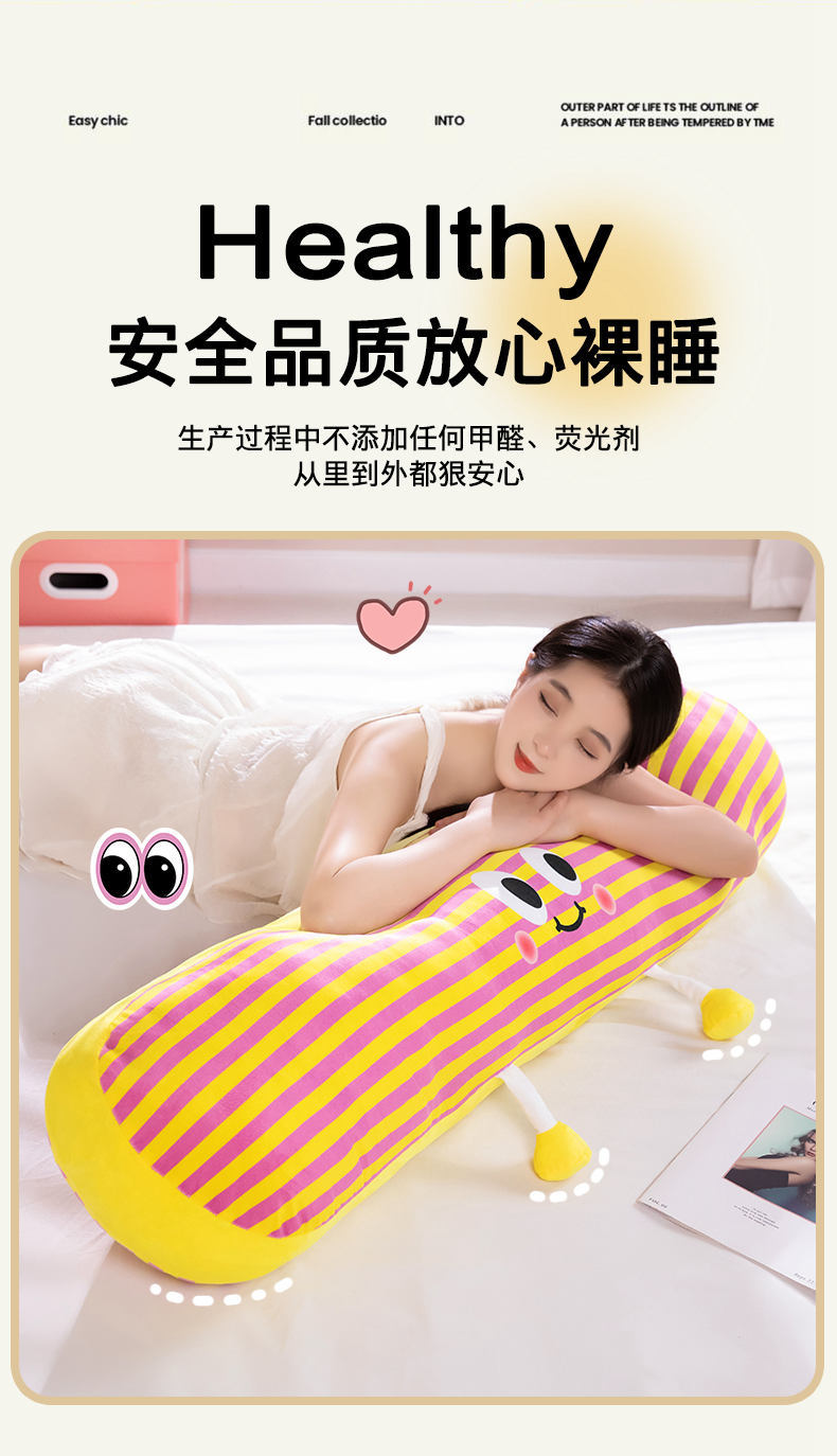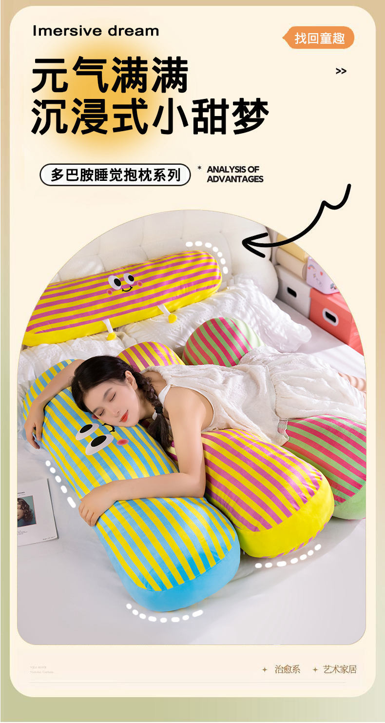 【59元秒120cm长条抱枕】可爱多巴胺条纹长条抱枕 女生大号毛绒玩具 抱着睡靠枕床头枕头 可拆洗可机洗
