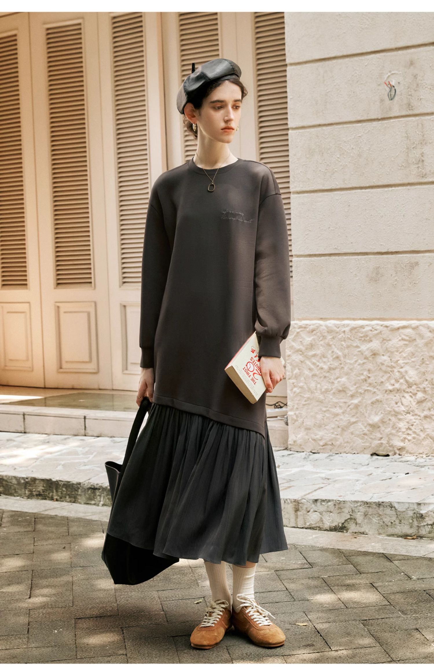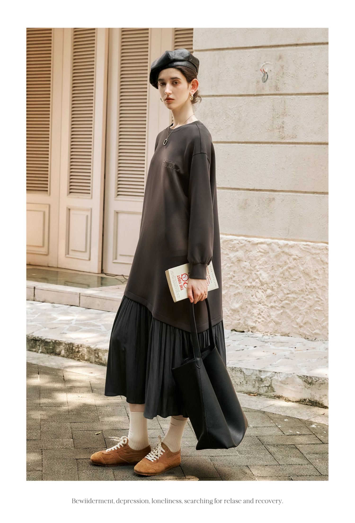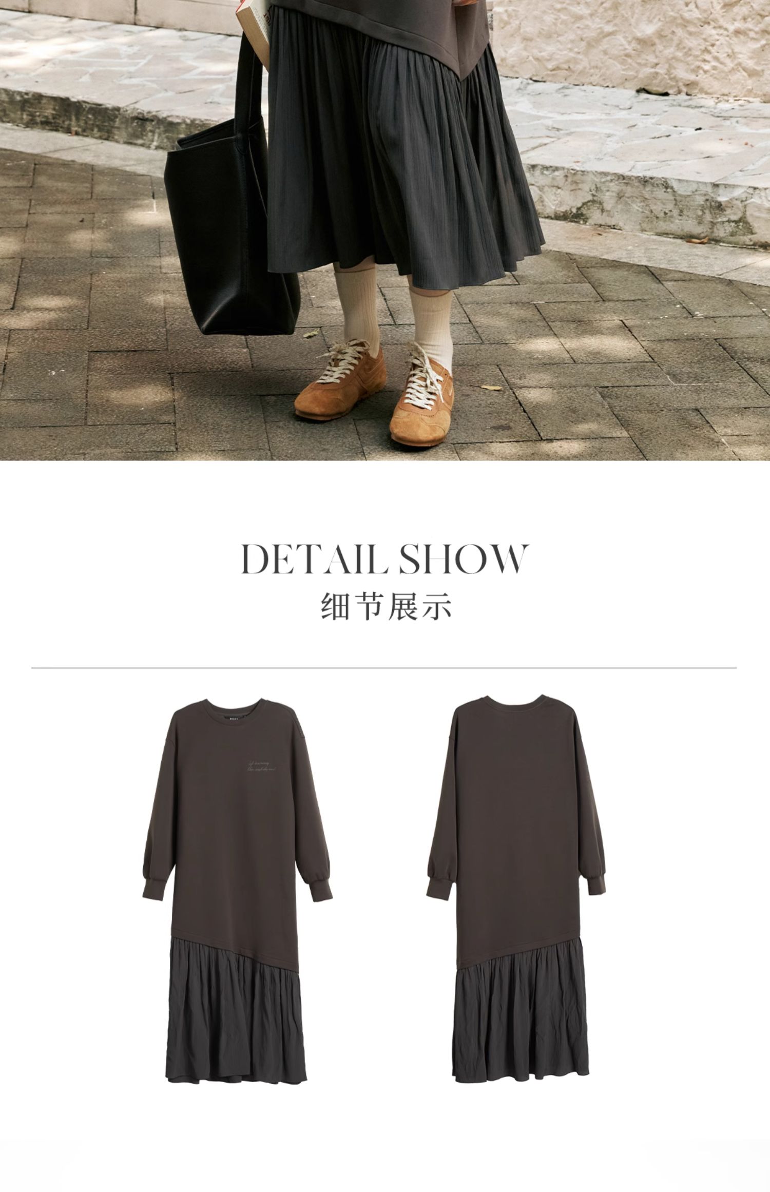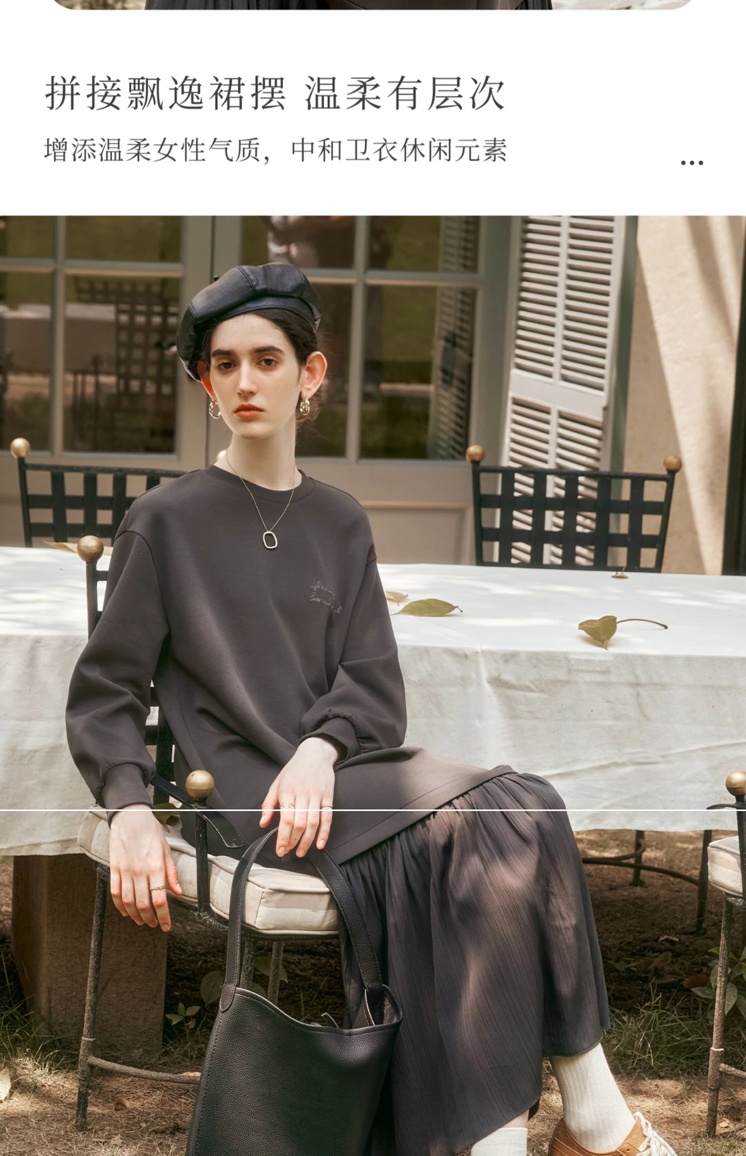 OLrain欧芮儿休闲卫衣连衣裙女秋季2025年新款设计感拼接下摆长裙