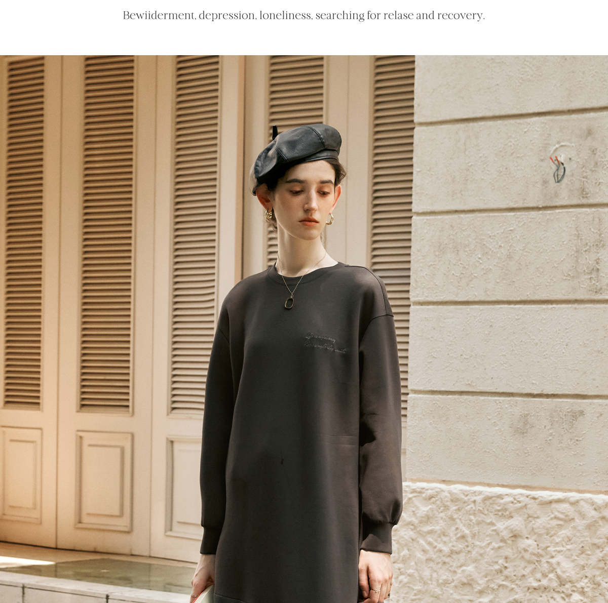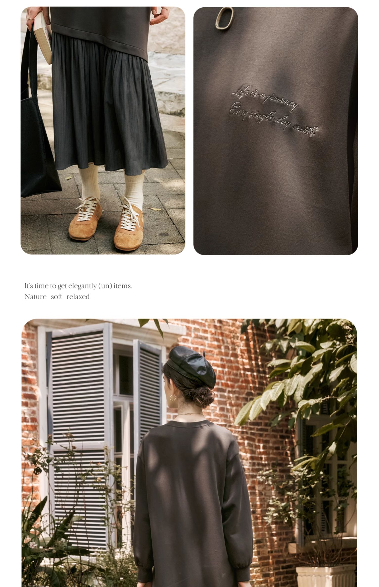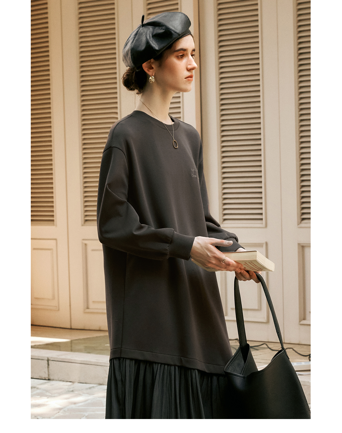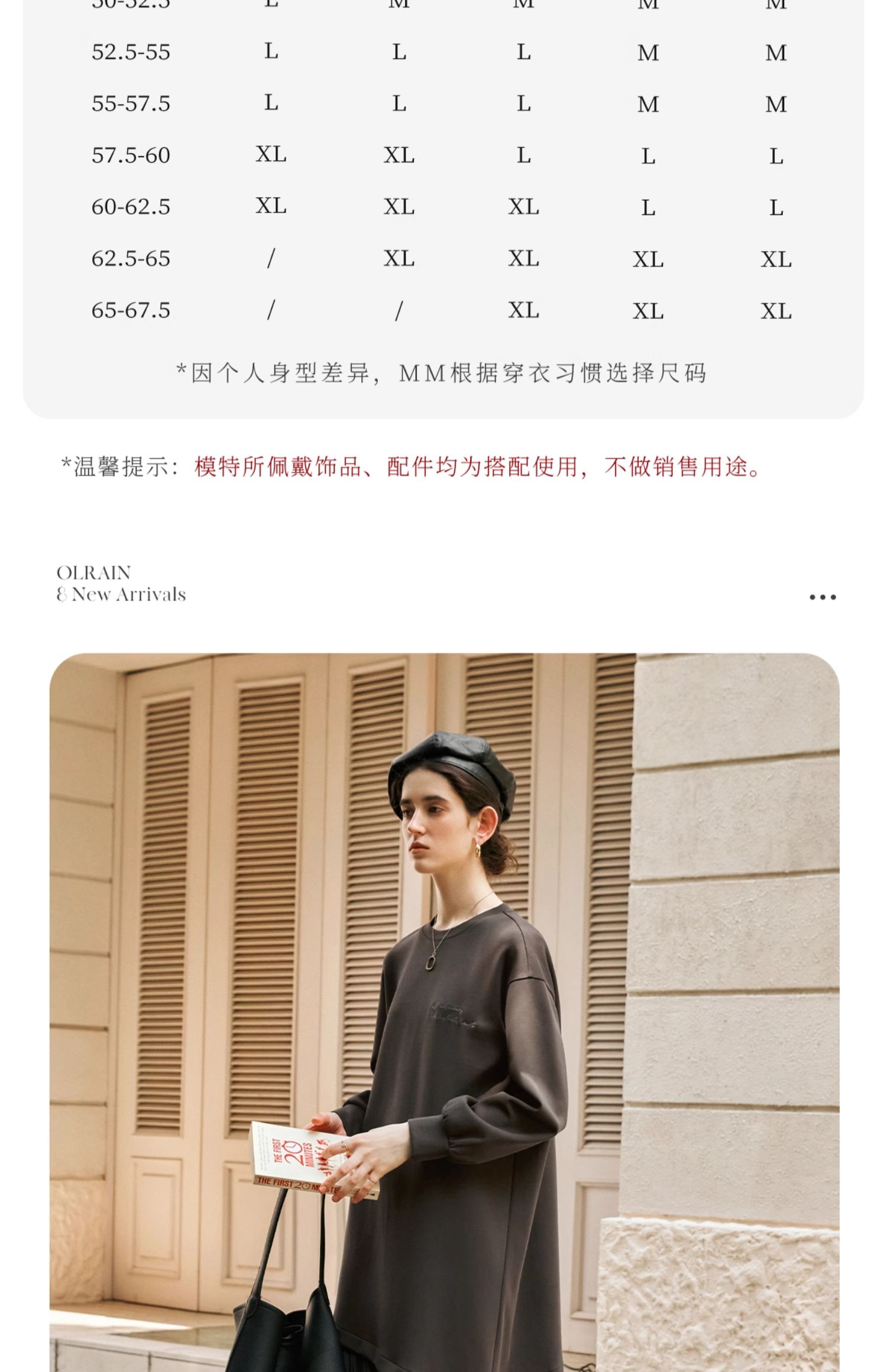 OLrain欧芮儿休闲卫衣连衣裙女秋季2025年新款设计感拼接下摆长裙