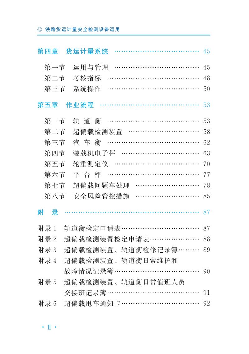 本书坚持继承与创新相结合,充分体现了新技术、新设备、新业务的发展与运用;坚持科学性与规范性,依据铁路行业标准的基本要求编写,准确体现了国家职业标准、铁路行业标准、规章制度的要求。主要内容包括概述,设备配置、安装、检定和期间核查,设备管理与养护,货运计量系统,作业流程,台账记录等。