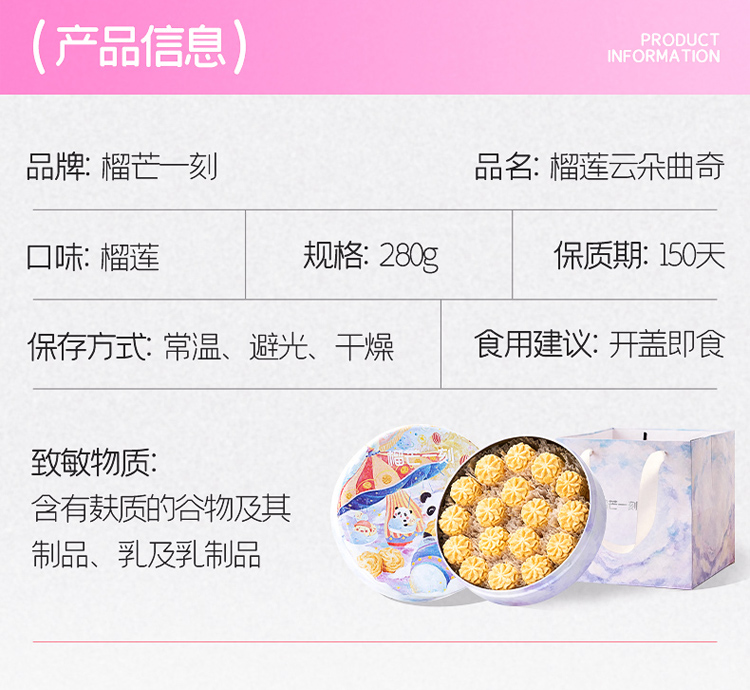 【送礼袋】榴芒一刻 榴莲云朵曲奇饼干进口黄油多口味零食送礼必备伴手礼