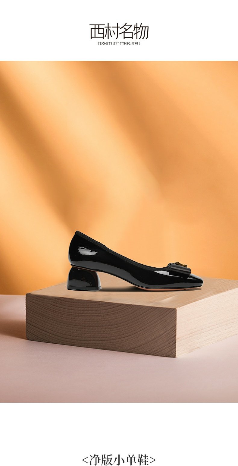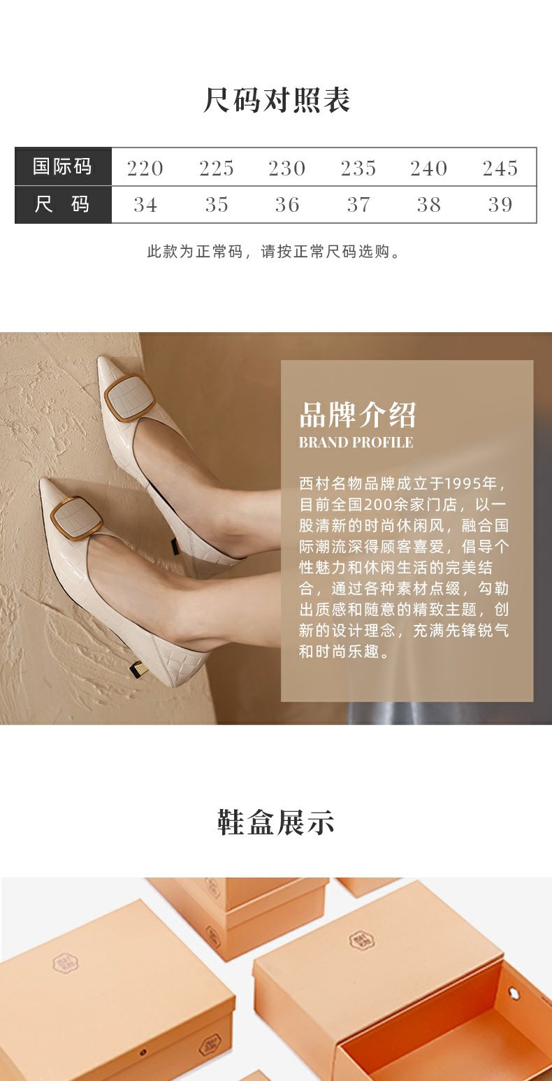 西村名物2021秋季新款晚晚风温柔粗跟方头中跟商场同款单鞋X21CE32851