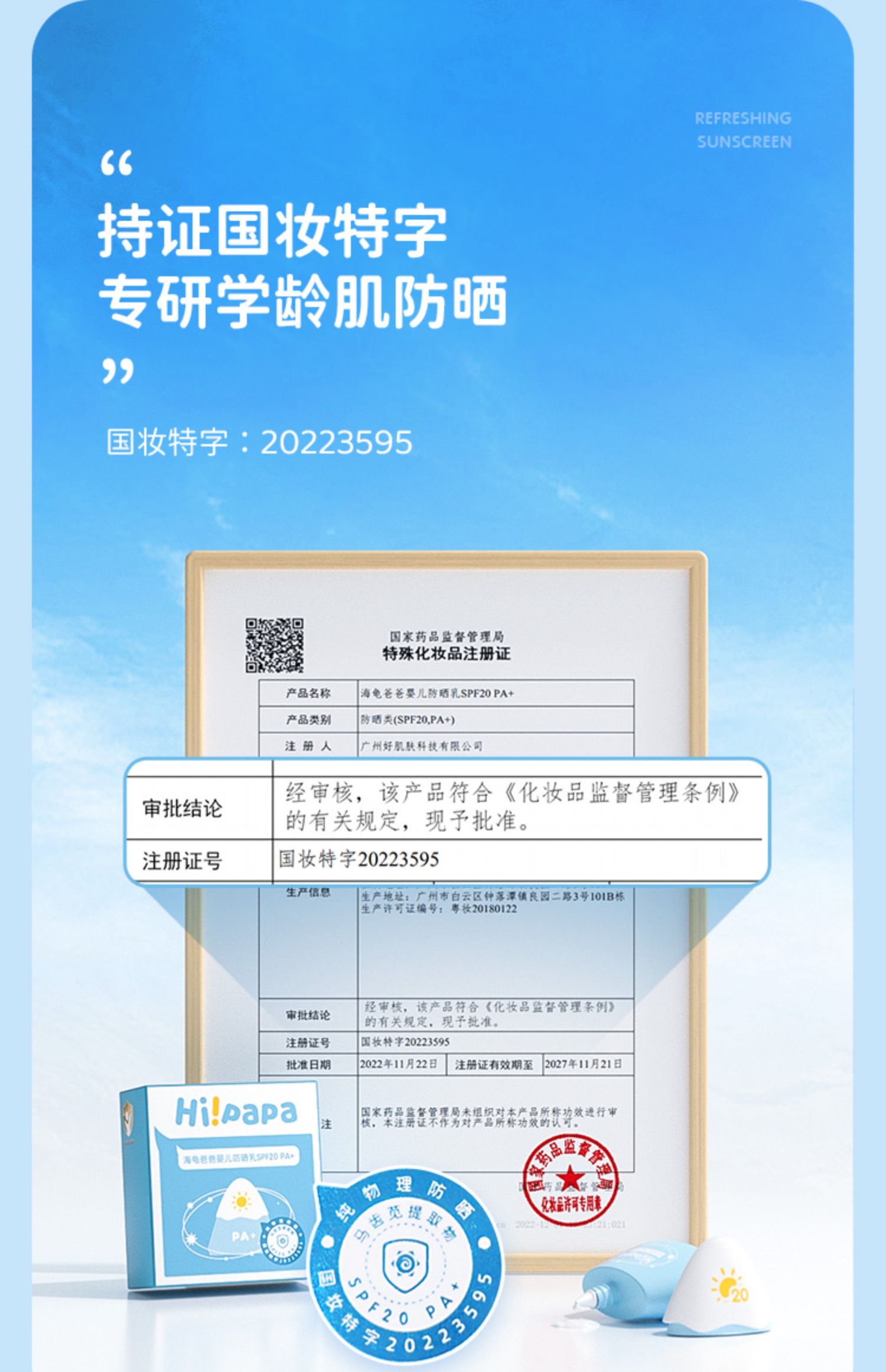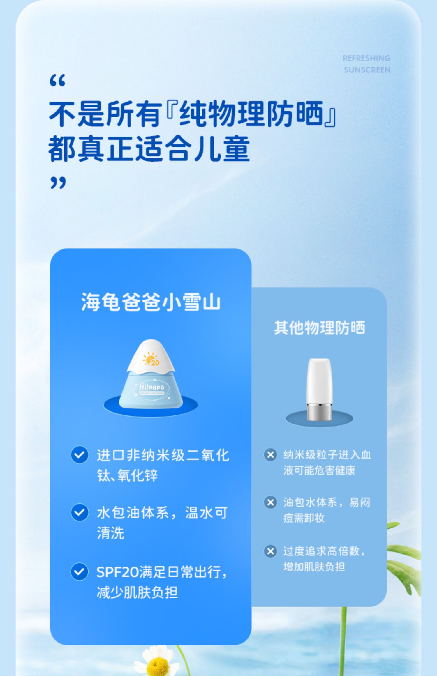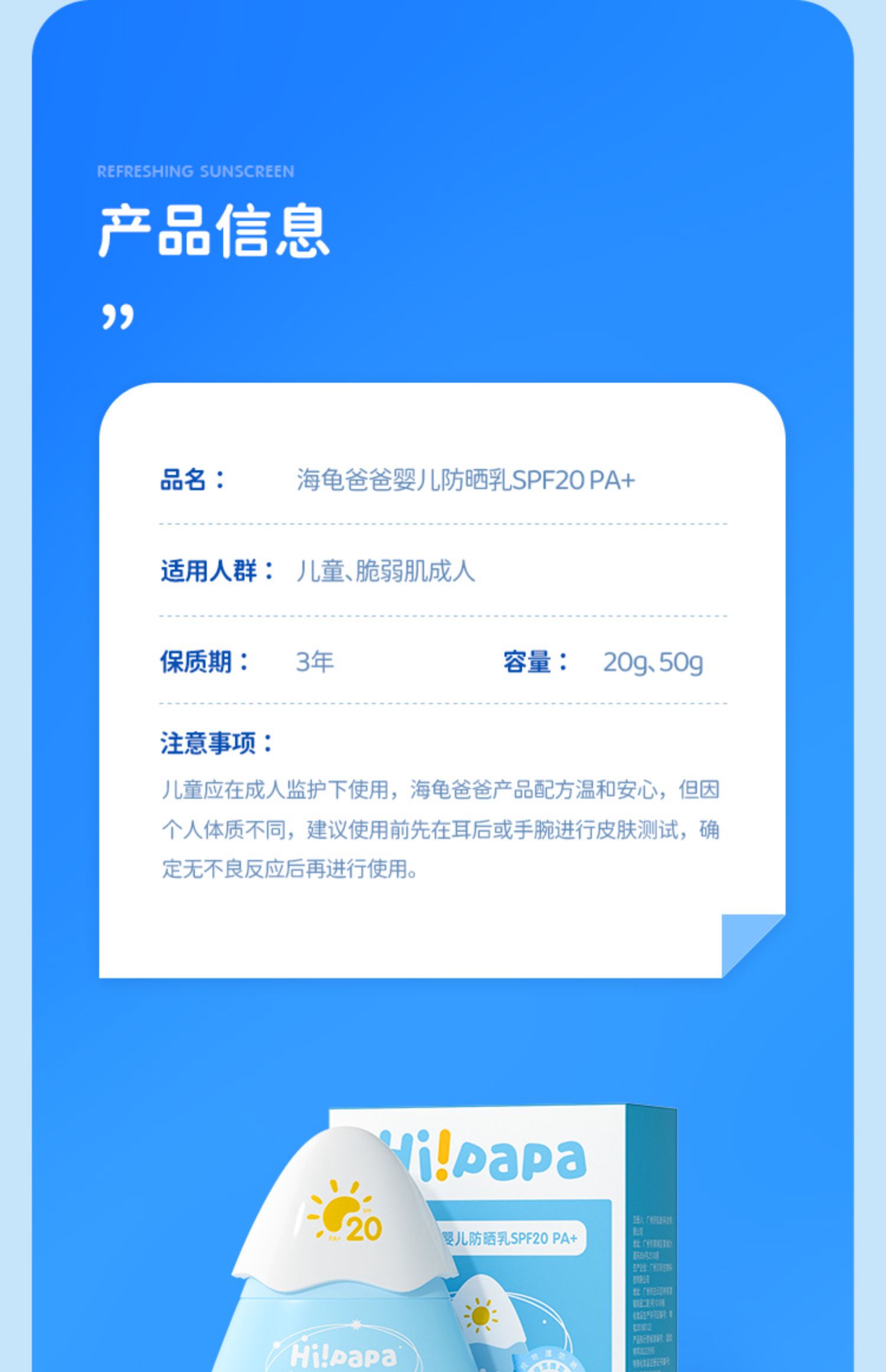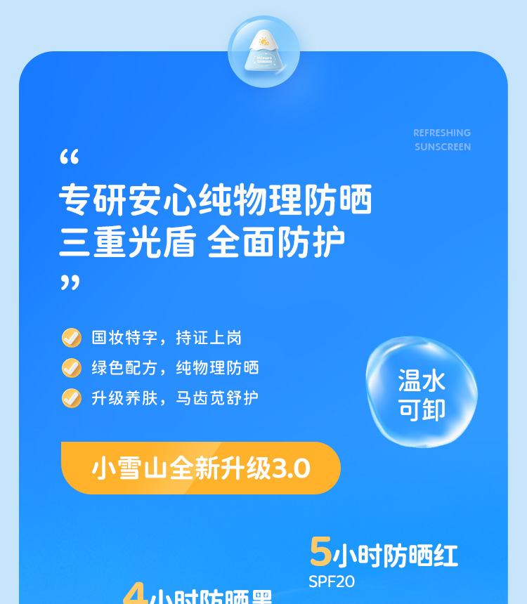 新款海龟爸爸儿童防晒霜小雪山防晒乳SPF20 PA+ 小雪山防晒3.0新款