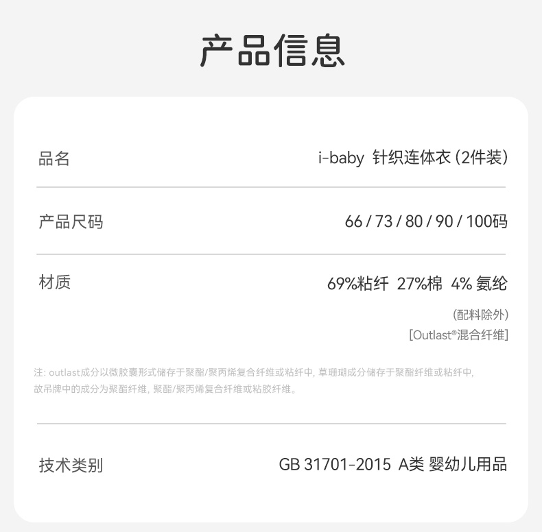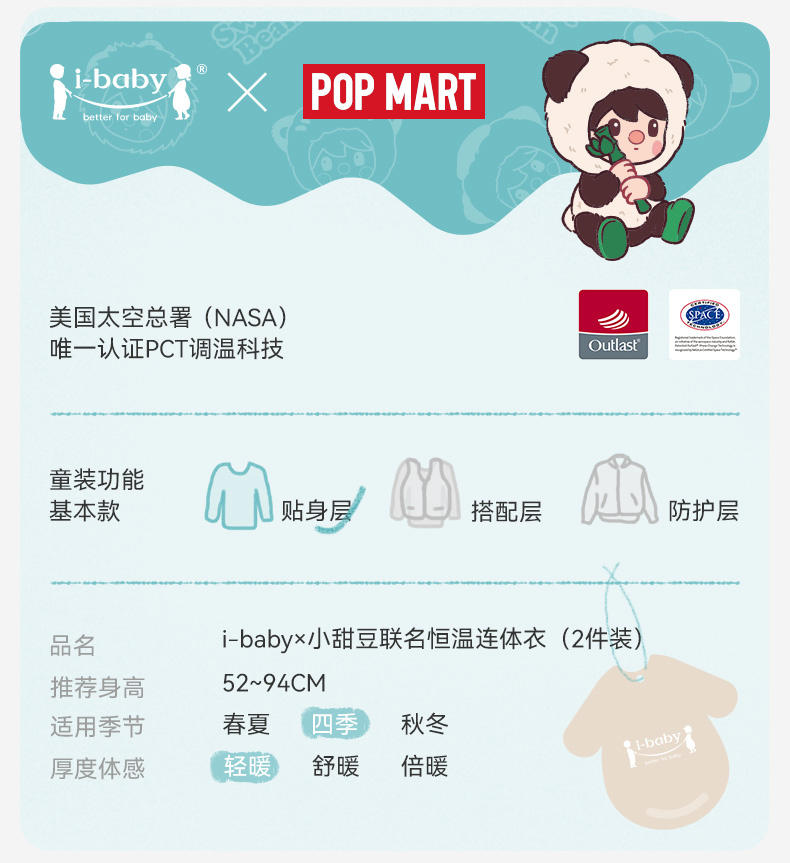 *i-baby×Outlast泡泡玛特联名针织抑菌恒温男童女童连体衣(2件装)