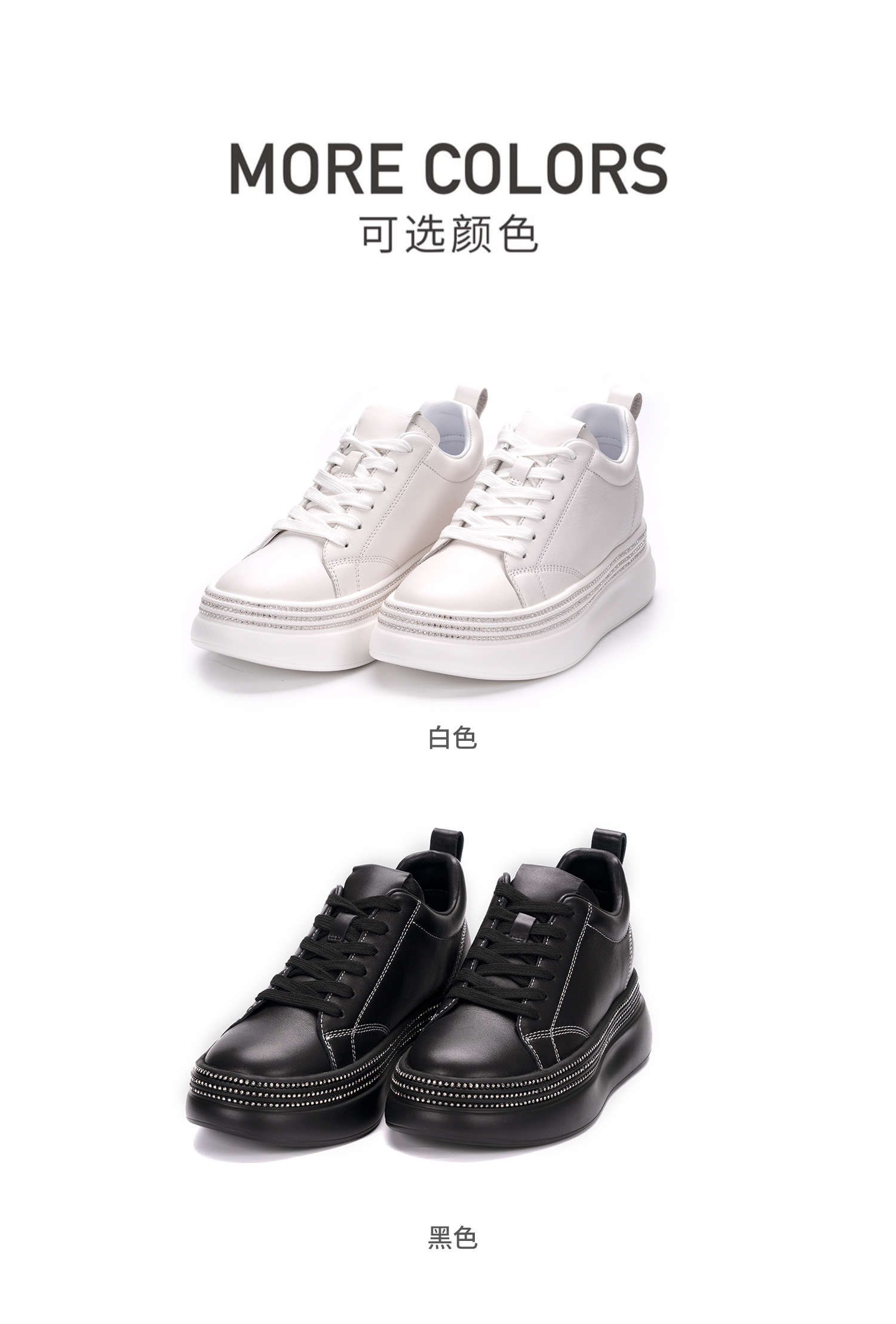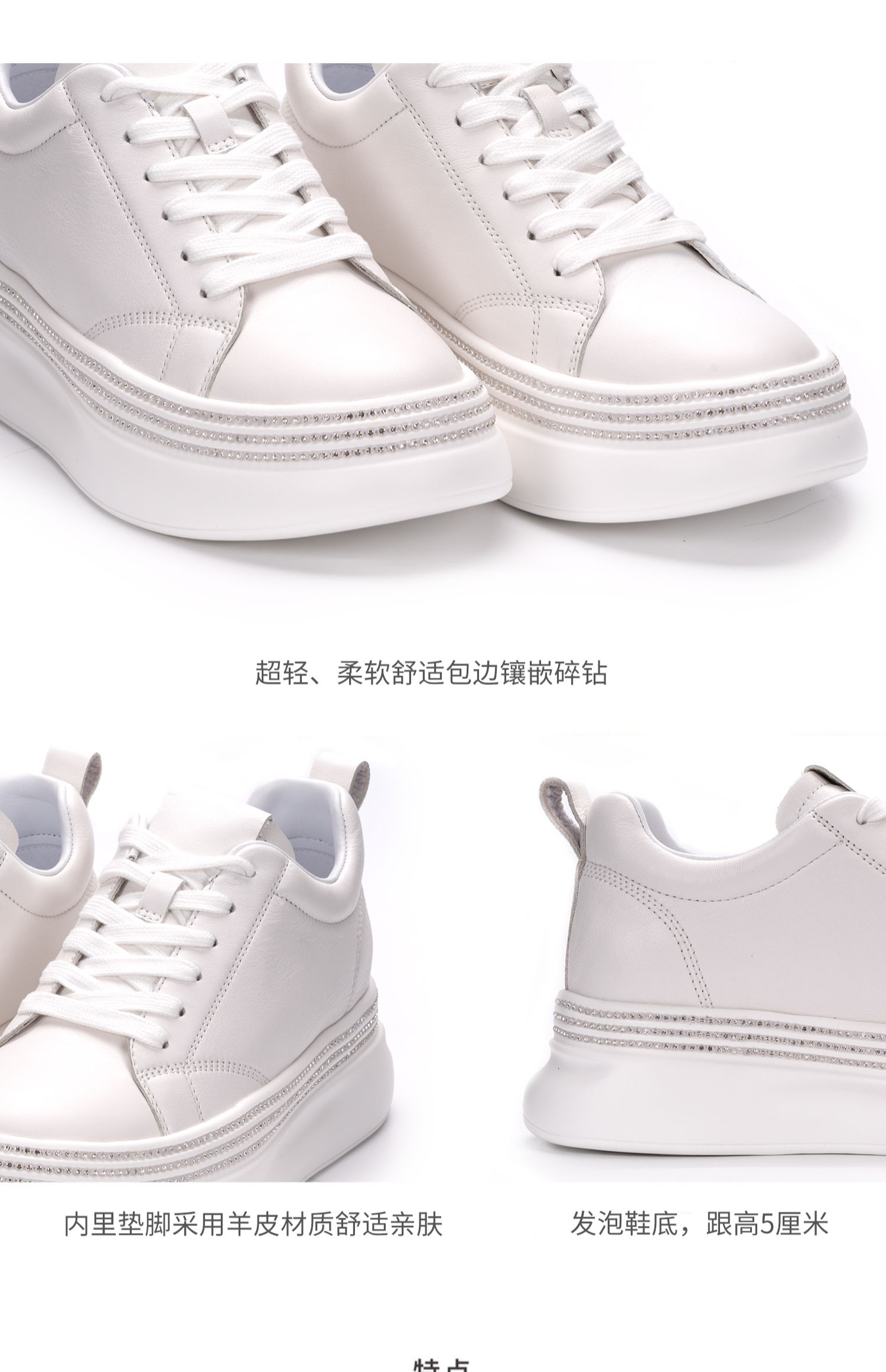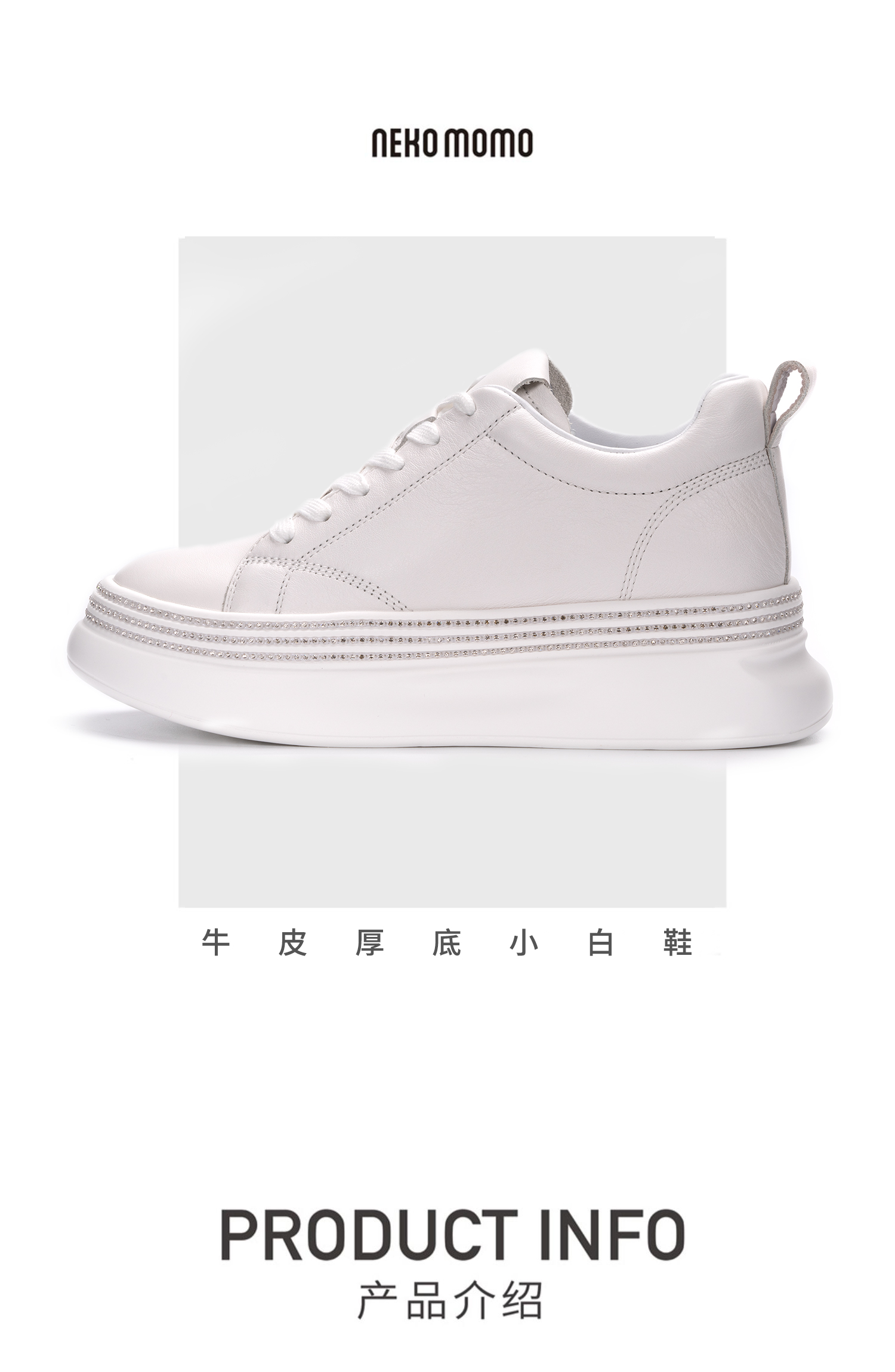 nekomomo厚底白色板鞋女2023新款头层牛皮镶钻超轻平底休闲运动鞋M22AM19151