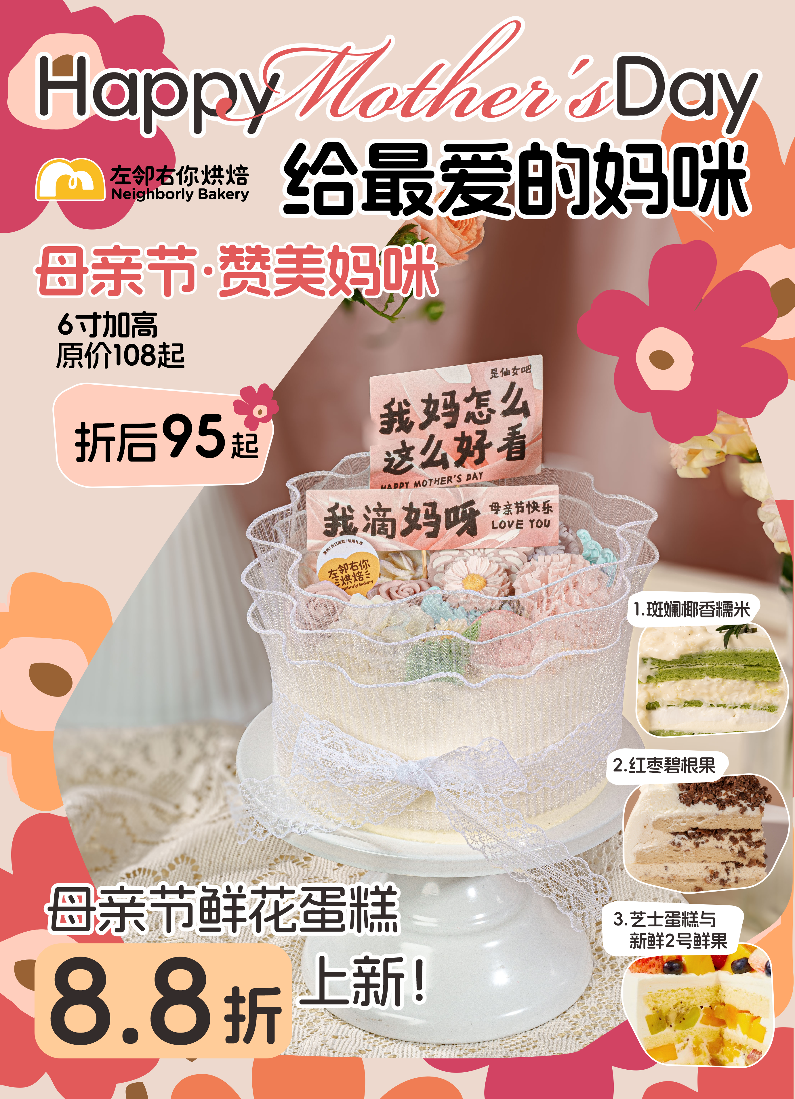 【下架勿动】母亲节·赞美妈咪 3种口味 鲜花蛋糕