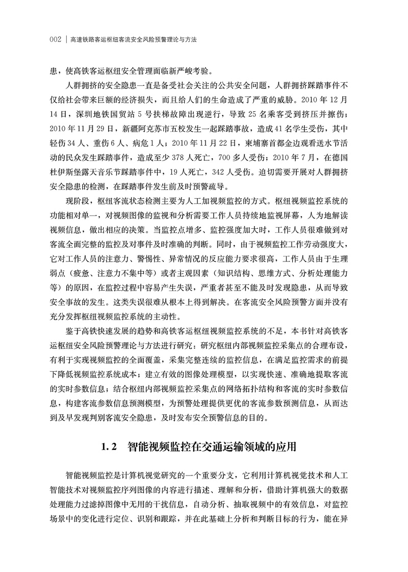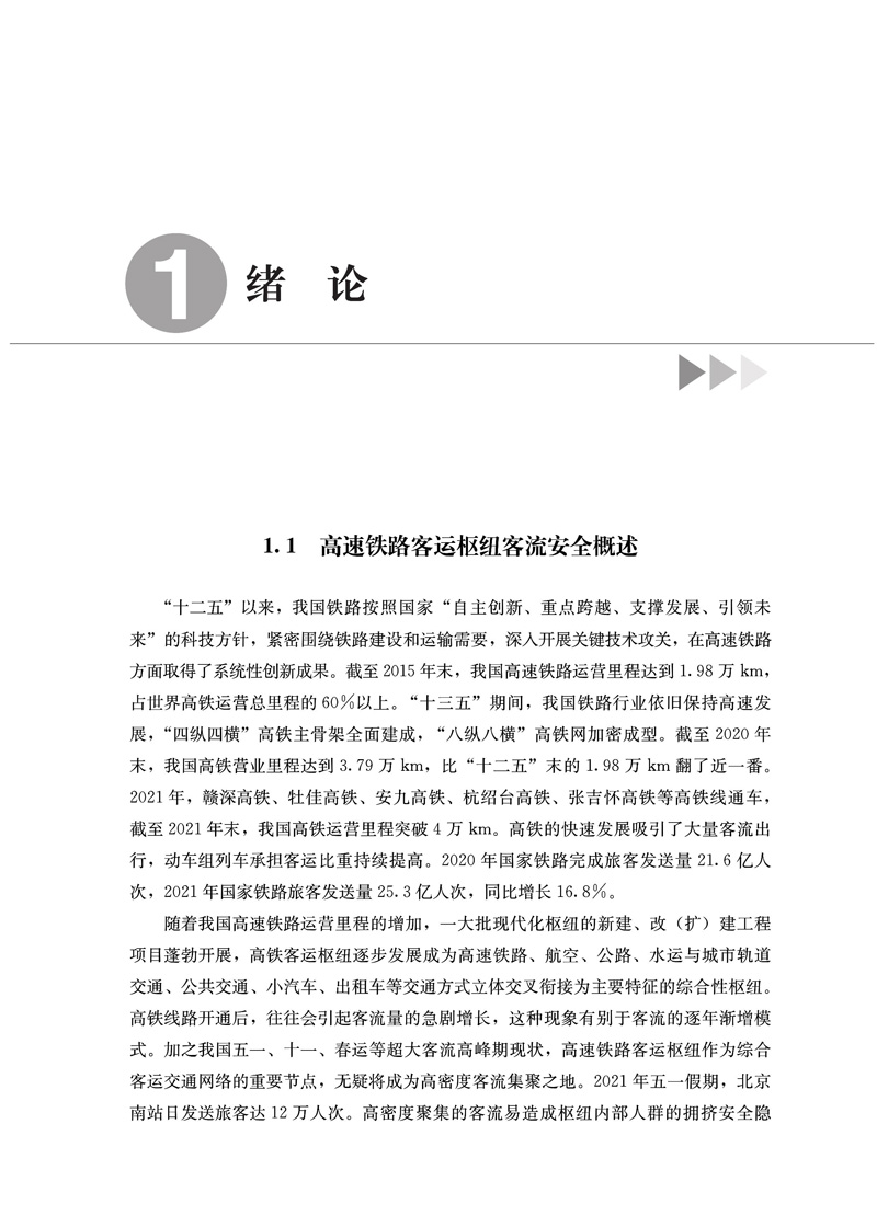 本书为国家重点研发计划“京张高铁智能化服务关键技术与示范”项目研究成果之一,对高速铁路客运枢纽客流安全风险预警理论与方法的研究,能够为枢纽客流风险预警提供可靠的客流安全信息,提高枢纽客流安全风险预警的速度、准度和精度,确保高速铁路综合客运枢纽的客流高效安全集散,提高枢纽的客流安全管理水平,对提升高速铁路客运安全保障能力具有指导意义和参考价值。