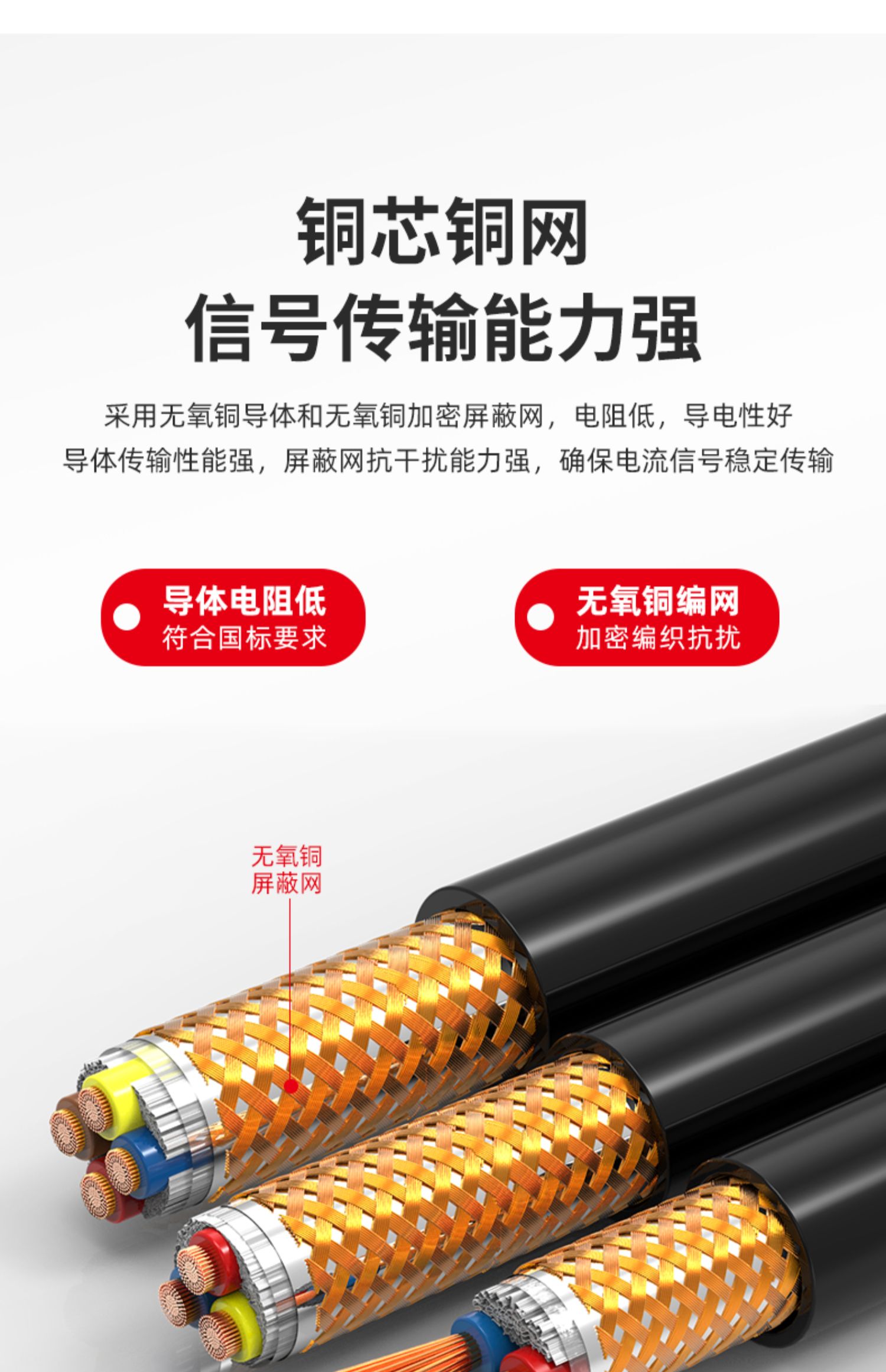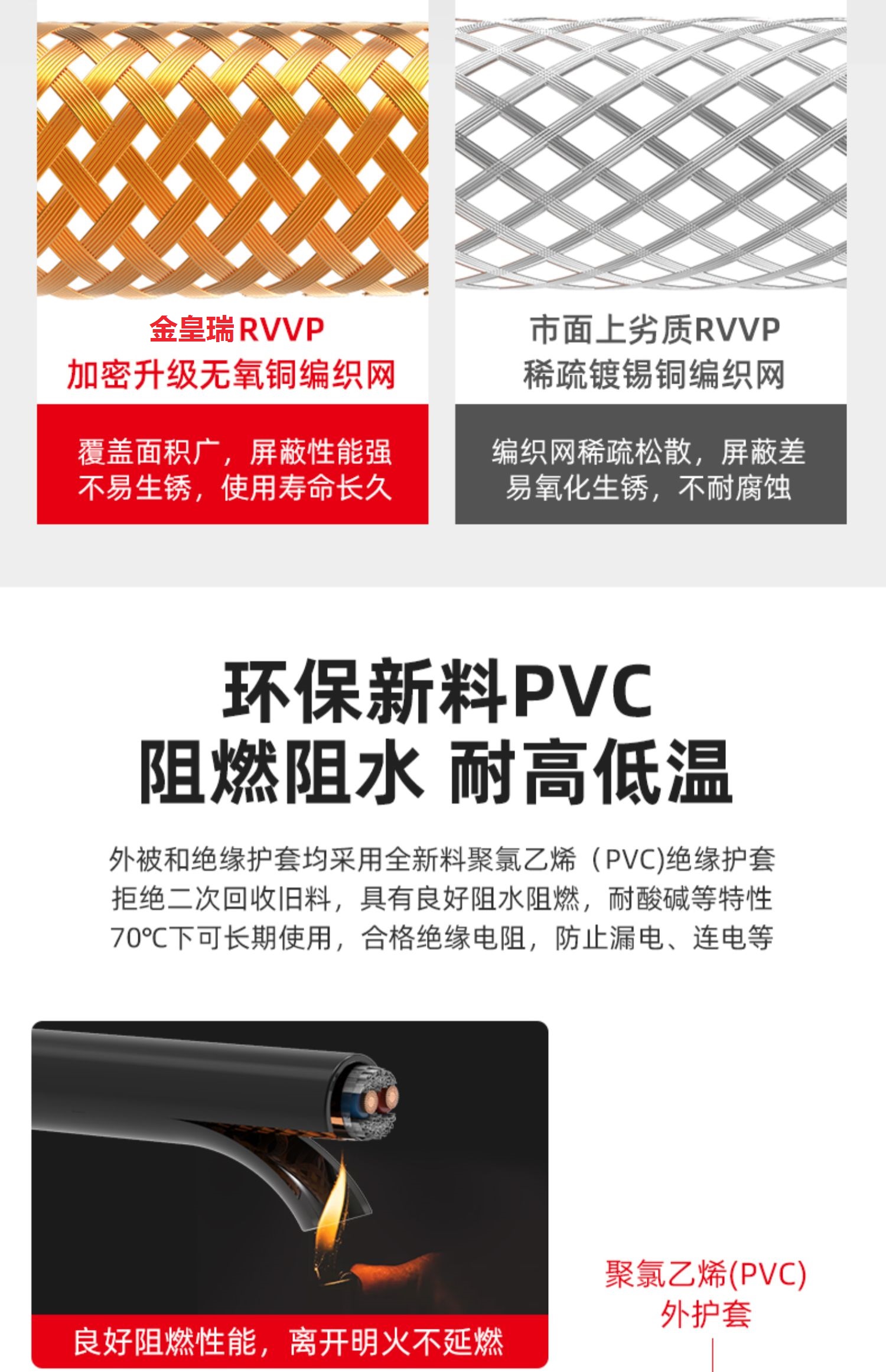 爆款热销【 国标线芯包检@双屏蔽】RVVP加密屏蔽信号控制线2/3/4/5/6/8芯0.30.50.751.01.5 2.5 平方铜芯铜网抄表消防电气连接音频控制线仪表信号线( 线芯包检屏蔽网除外)