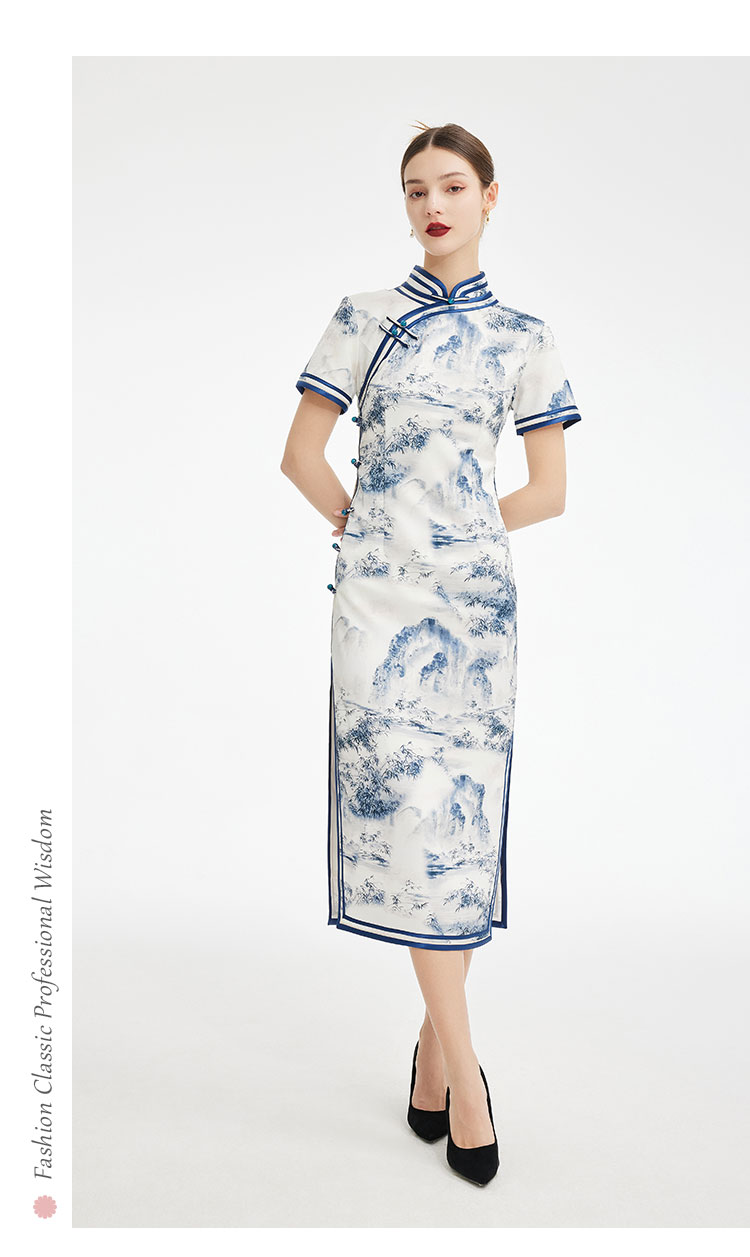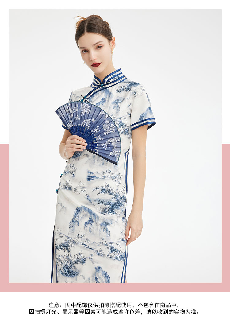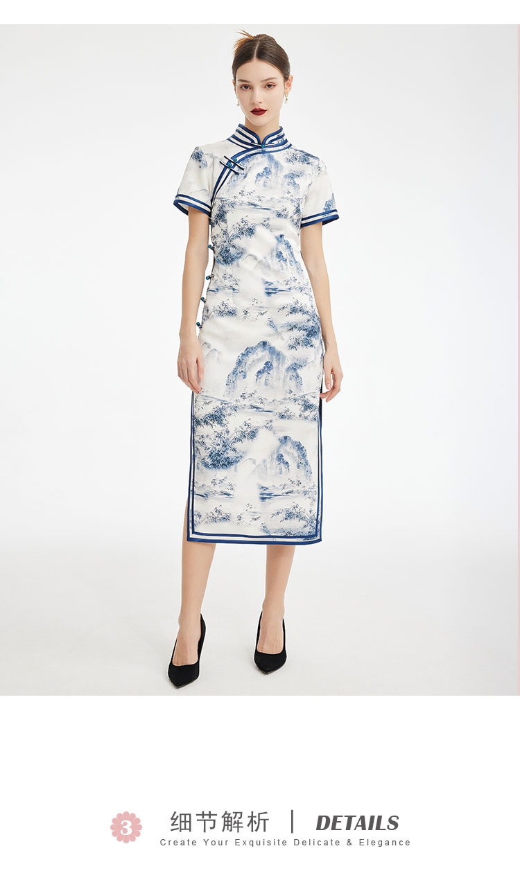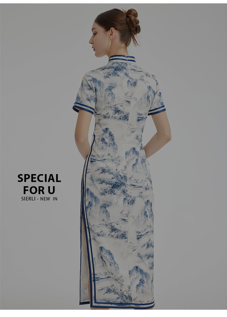 PF849斯尔丽2024新款新国风旗袍水墨写意画诗意立体裁剪显瘦连衣裙
