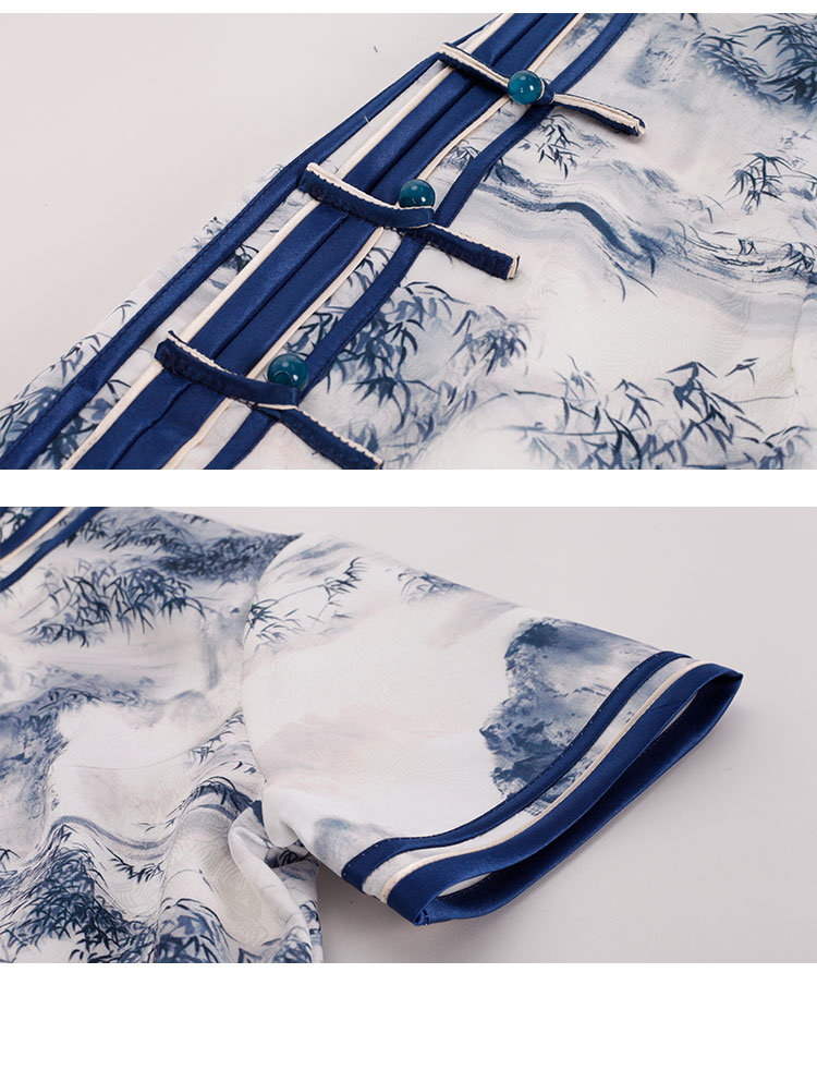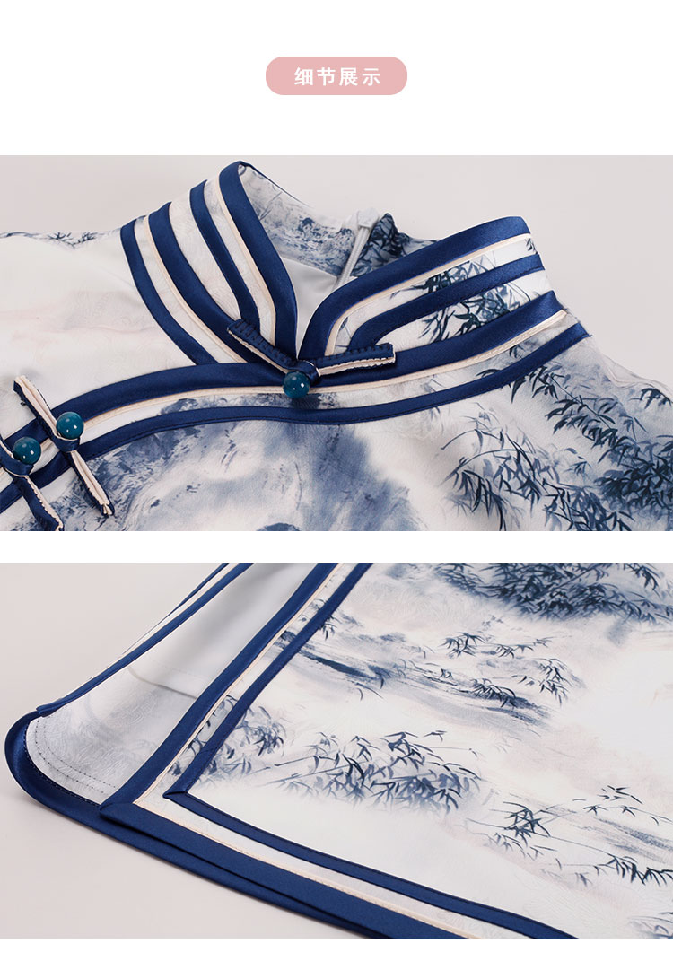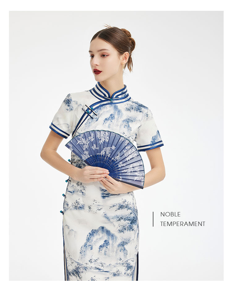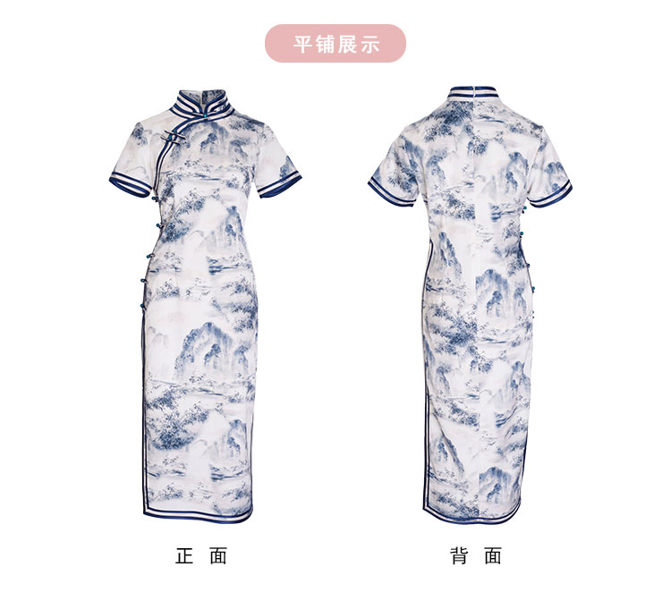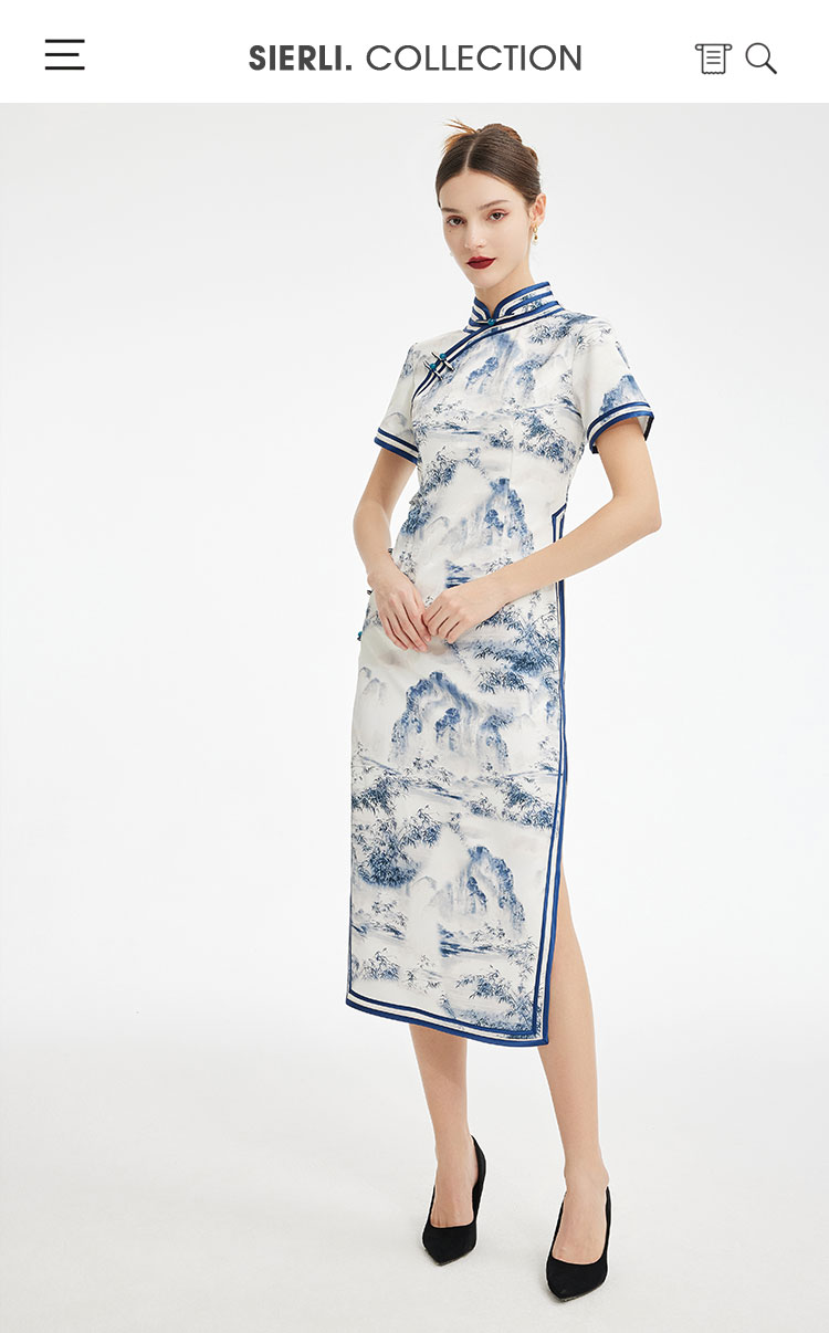 PF849斯尔丽2024新款新国风旗袍水墨写意画诗意立体裁剪显瘦连衣裙