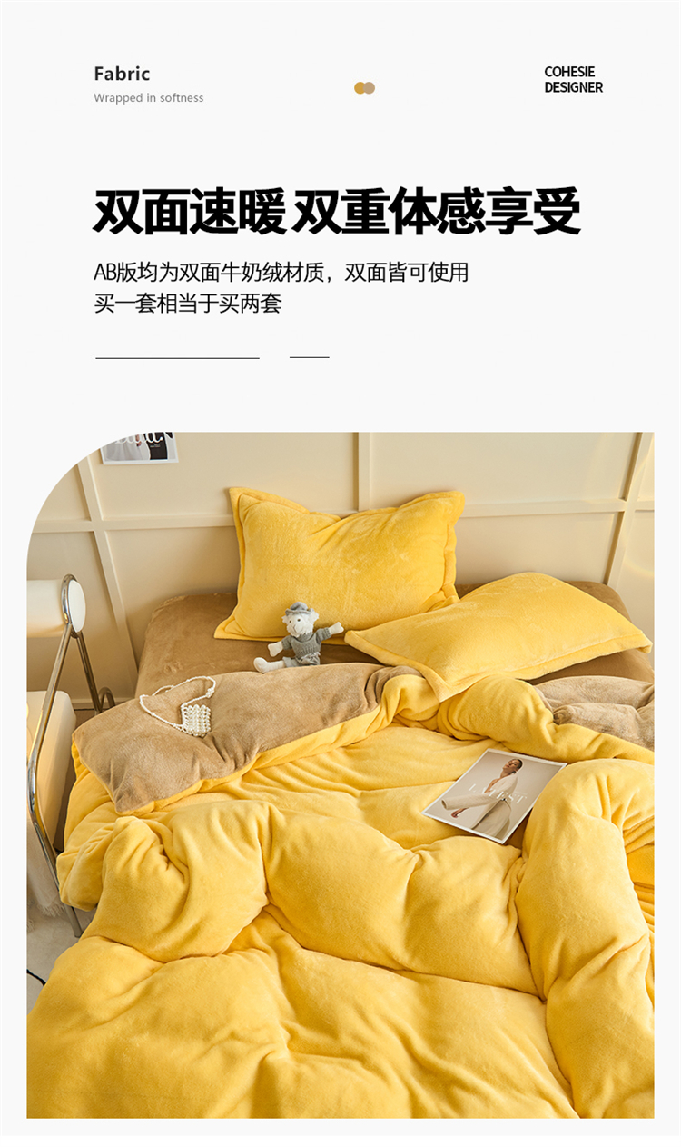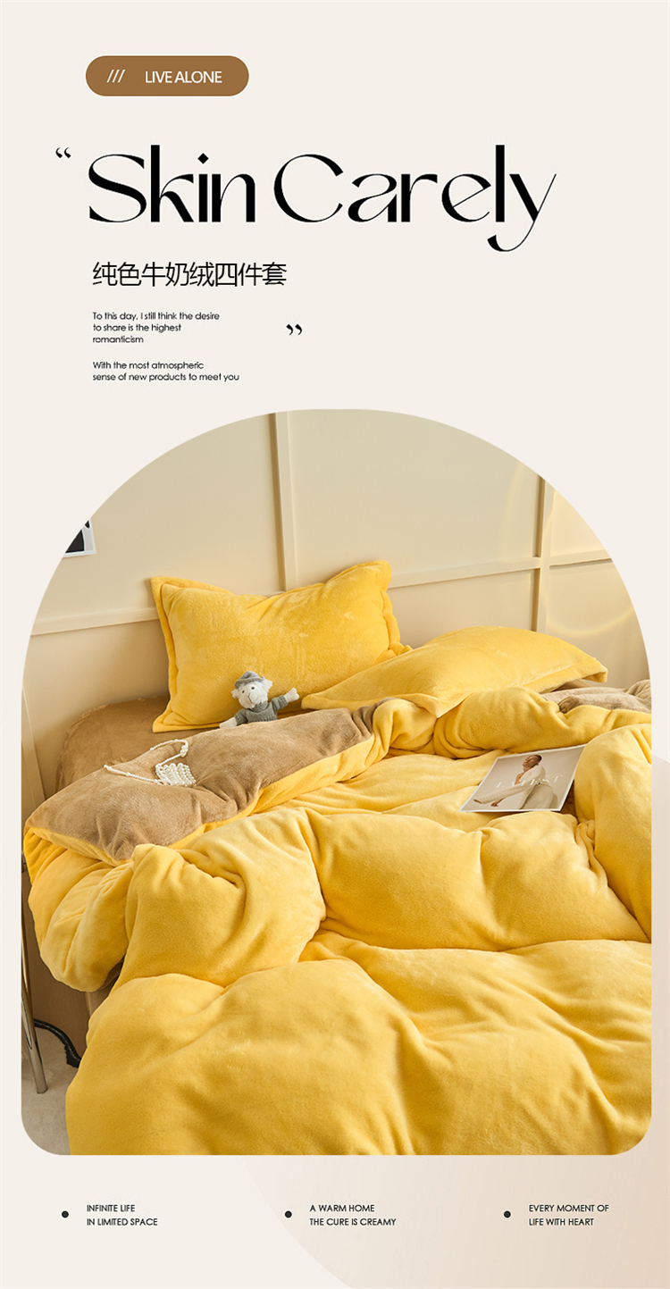 纯色简约牛奶绒加厚床上四件套家用床品冬季加绒保暖床单被套罩子
