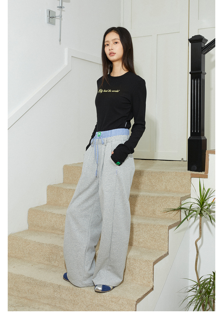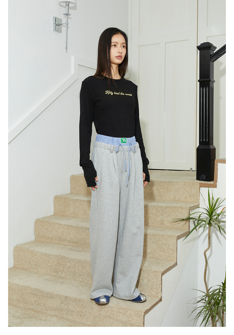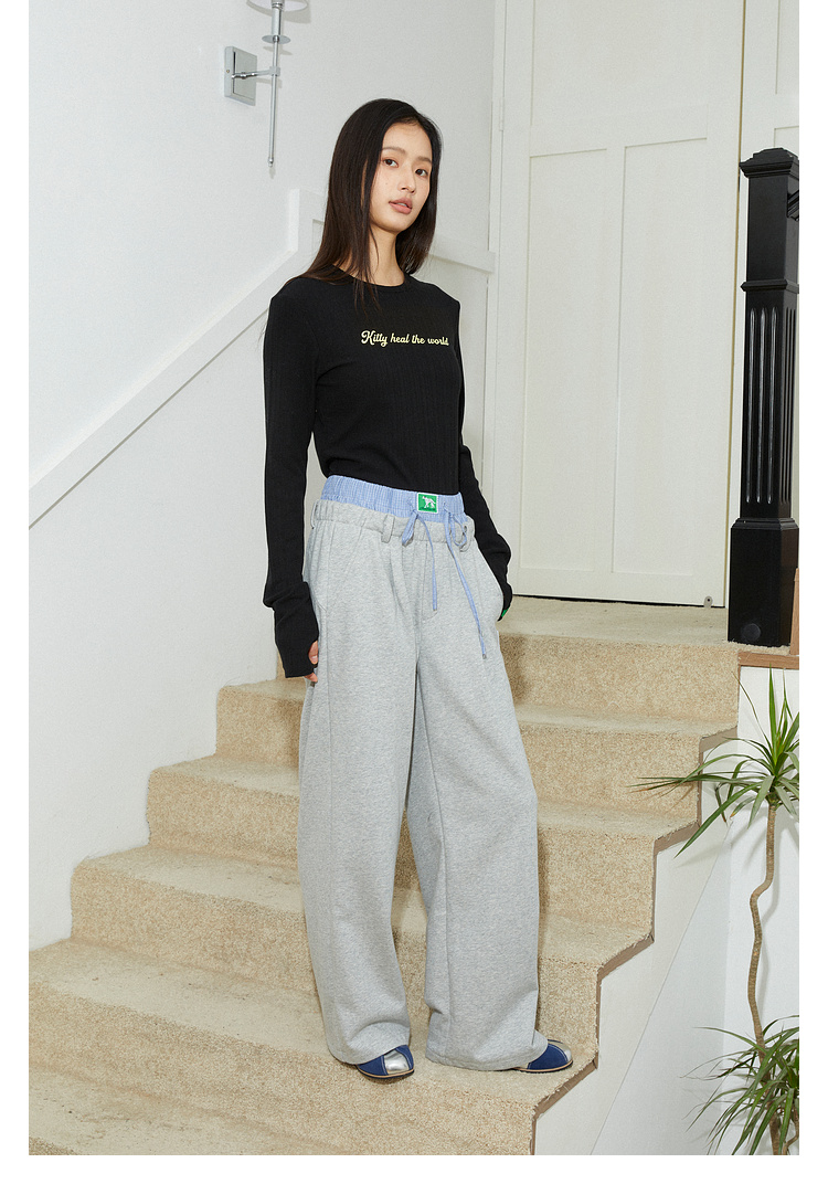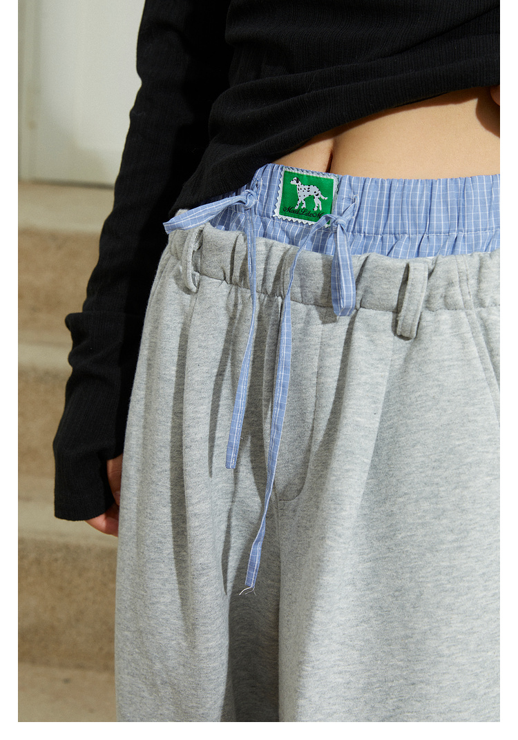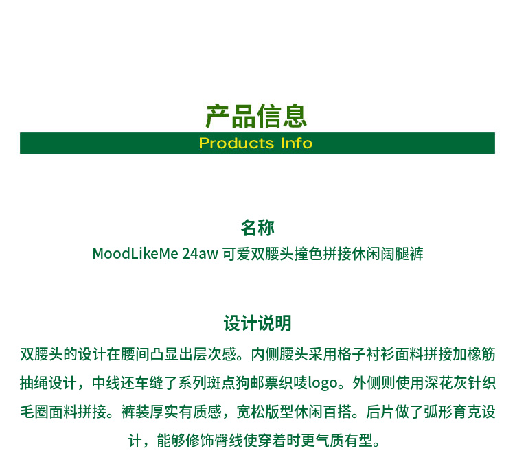Mood Like Me/MCK2410/可爱双腰头撞色拼接休闲阔腿裤