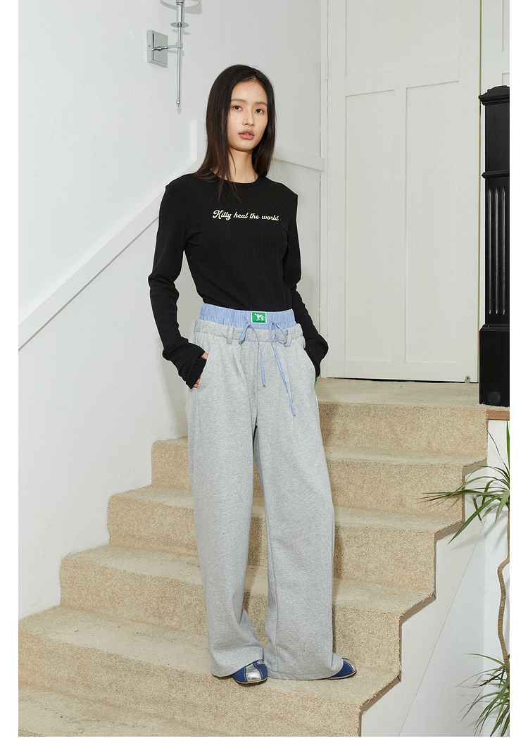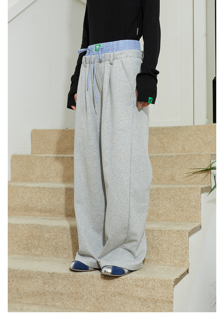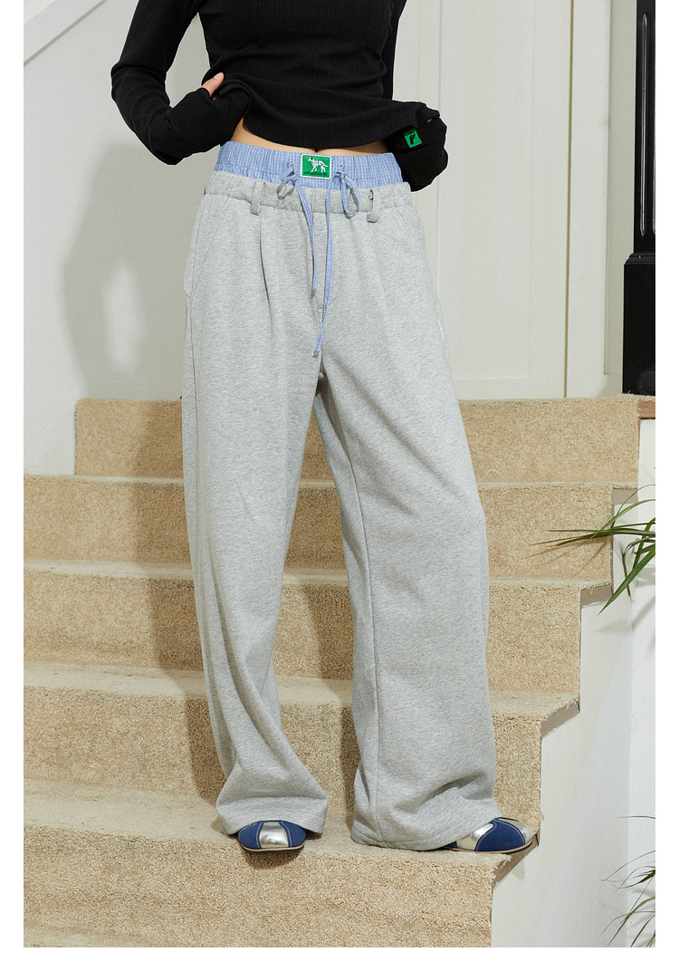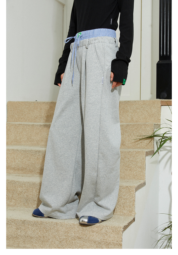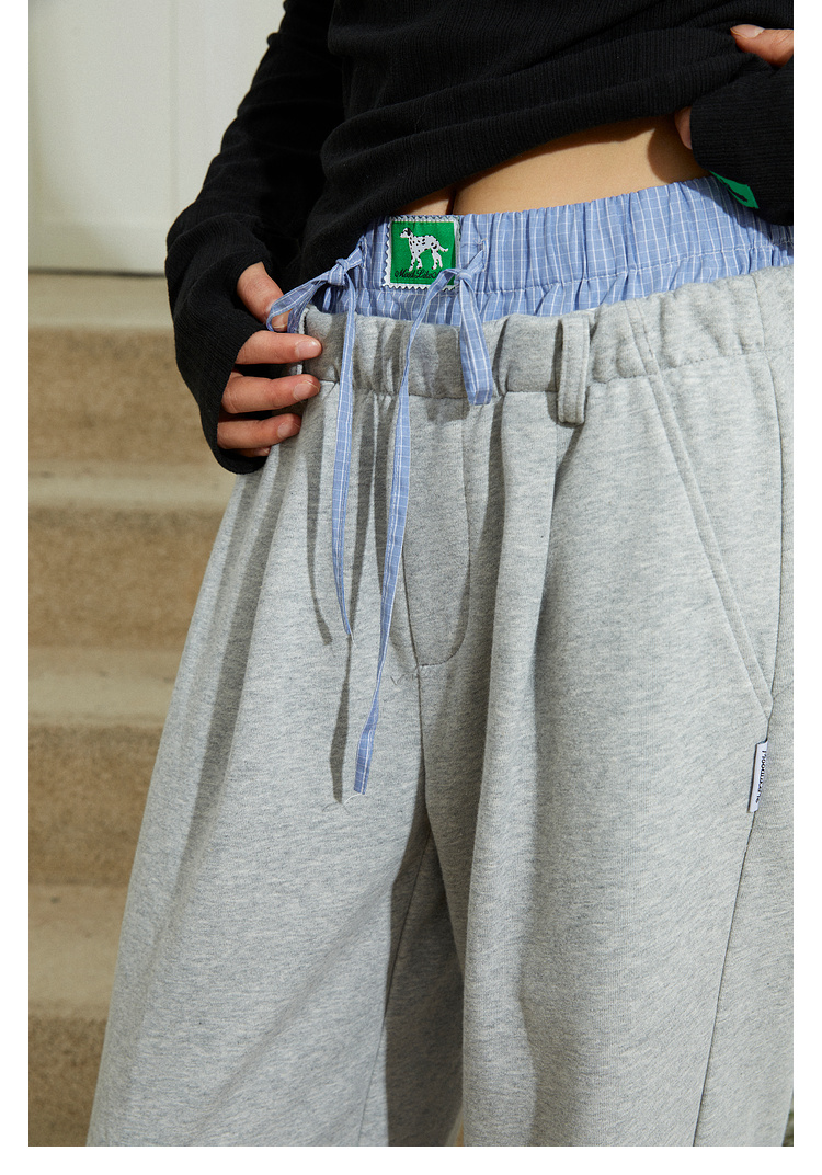 Mood Like Me/MCK2410/可爱双腰头撞色拼接休闲阔腿裤