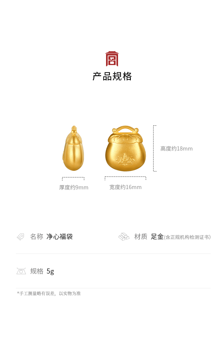 宫匠造办 宫廷净心福袋黄金吊坠