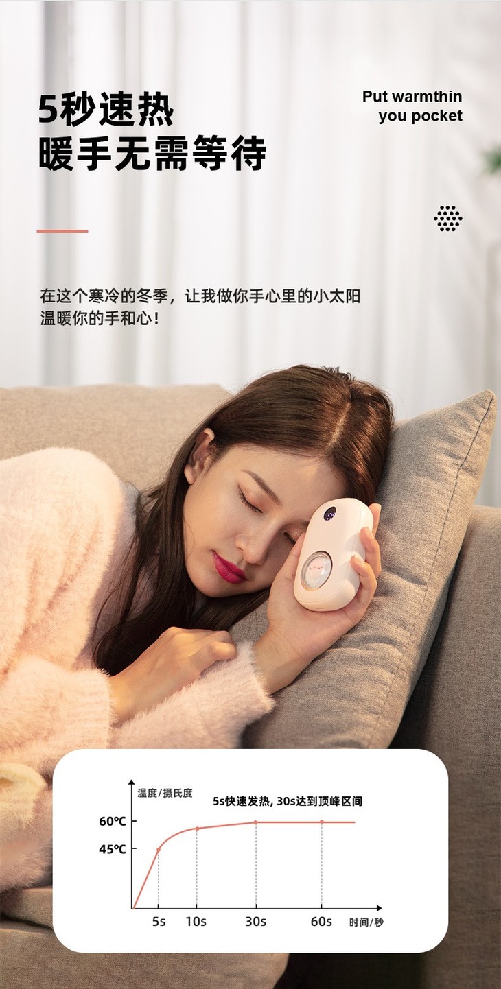 熊兔暖手宝充电宝usb两用二合一充电式迷你便携随身自发热冬季取暖神器成人学生暖宝宝JJ20928